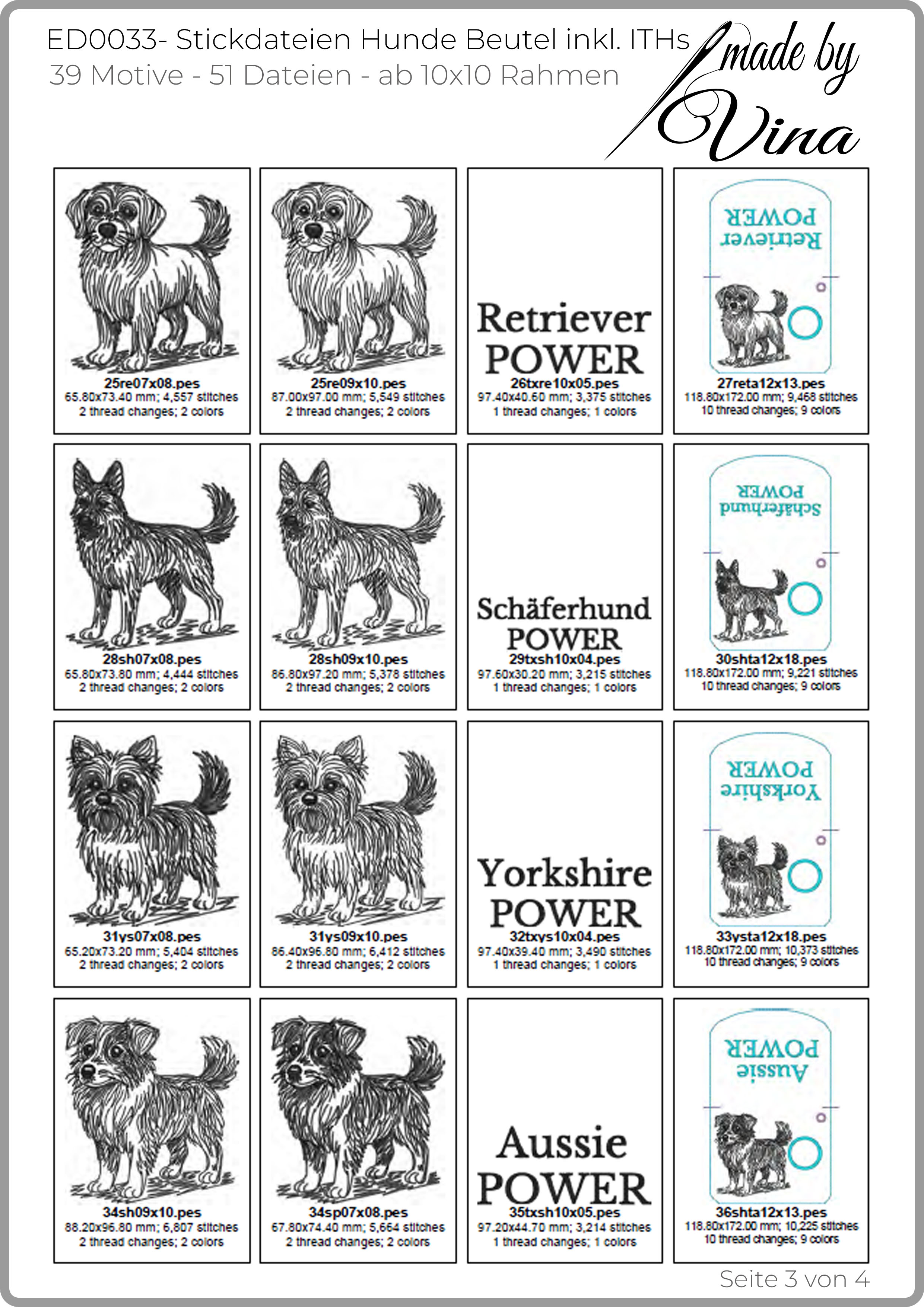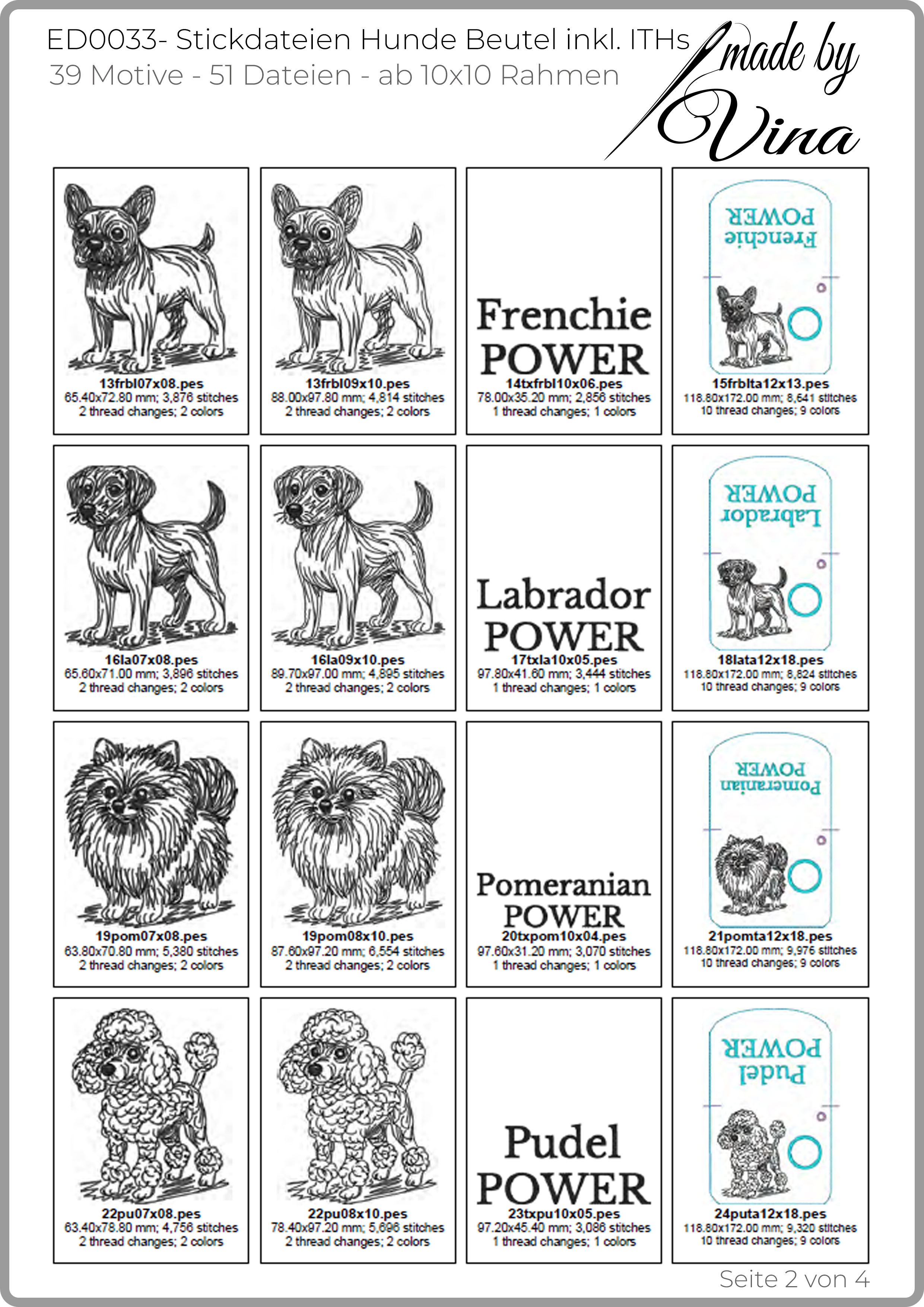 Die vollständigen Übersichten aller enthaltenen Stickdateien findest du in den Produktbildern auf mehreren Seiten.