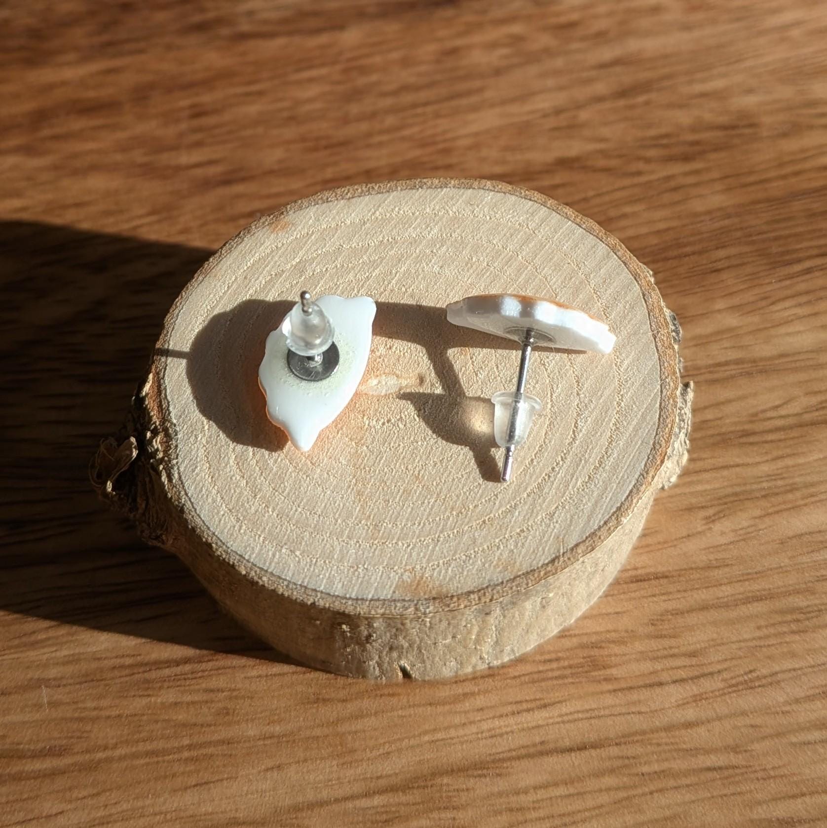 Maße: ca. 1,4x0,8 cm Das Hauptmaterial der Ohrringe (wo das Design drauf ist) ist Plastik. Die Vorder- und Rückseite sind zur besseren Haltbarkeit mit Harz versiegelt. Das Metallteil ist aus Edelstahl. Sie haben die Wahl zwischen Silikon- und Edelstahlverschlüssen. Wählen Sie einfach die von Ihnen bevorzugte Variante.