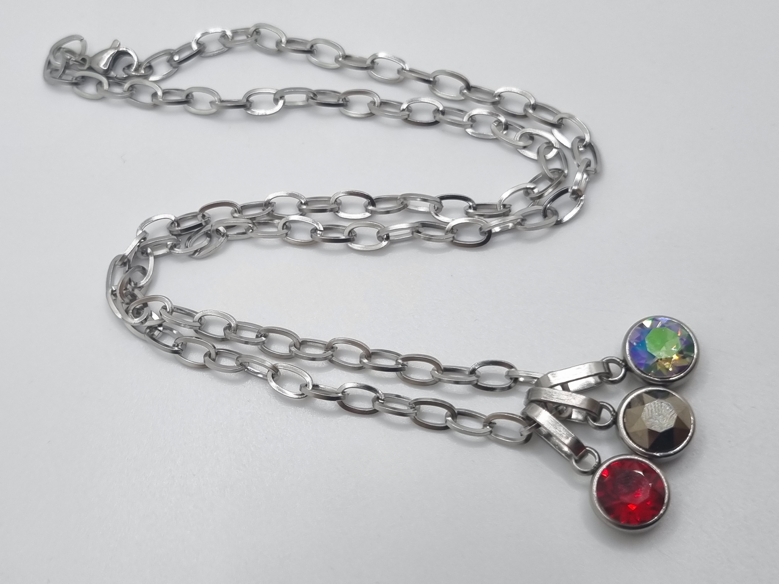 Dank des edelstahlfarbenen Materials ist die Kette besonders pflegeleicht, rostfrei und hautverträglich. Zudem kannst du die Anhänger nach Lust und Laune austauschen und so immer wieder neue Farbakzente setzen. Erlebe stilvolle Vielseitigkeit und einzigartigen Glanz mit dieser Edelstahlkette und bringe deine Persönlichkeit zum Ausdruck.