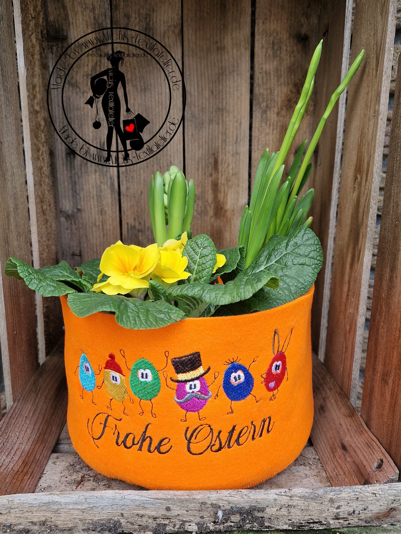 Die fröhliche Ostertruppe bringt Körbchen, gute Laune und ganz viel Frühlingszauber mit. Ob auf Shirts, Taschen, Kissen, Handtüchern oder Osterkörbchen – dieses Motiv sorgt garantiert für strahlende Augen.