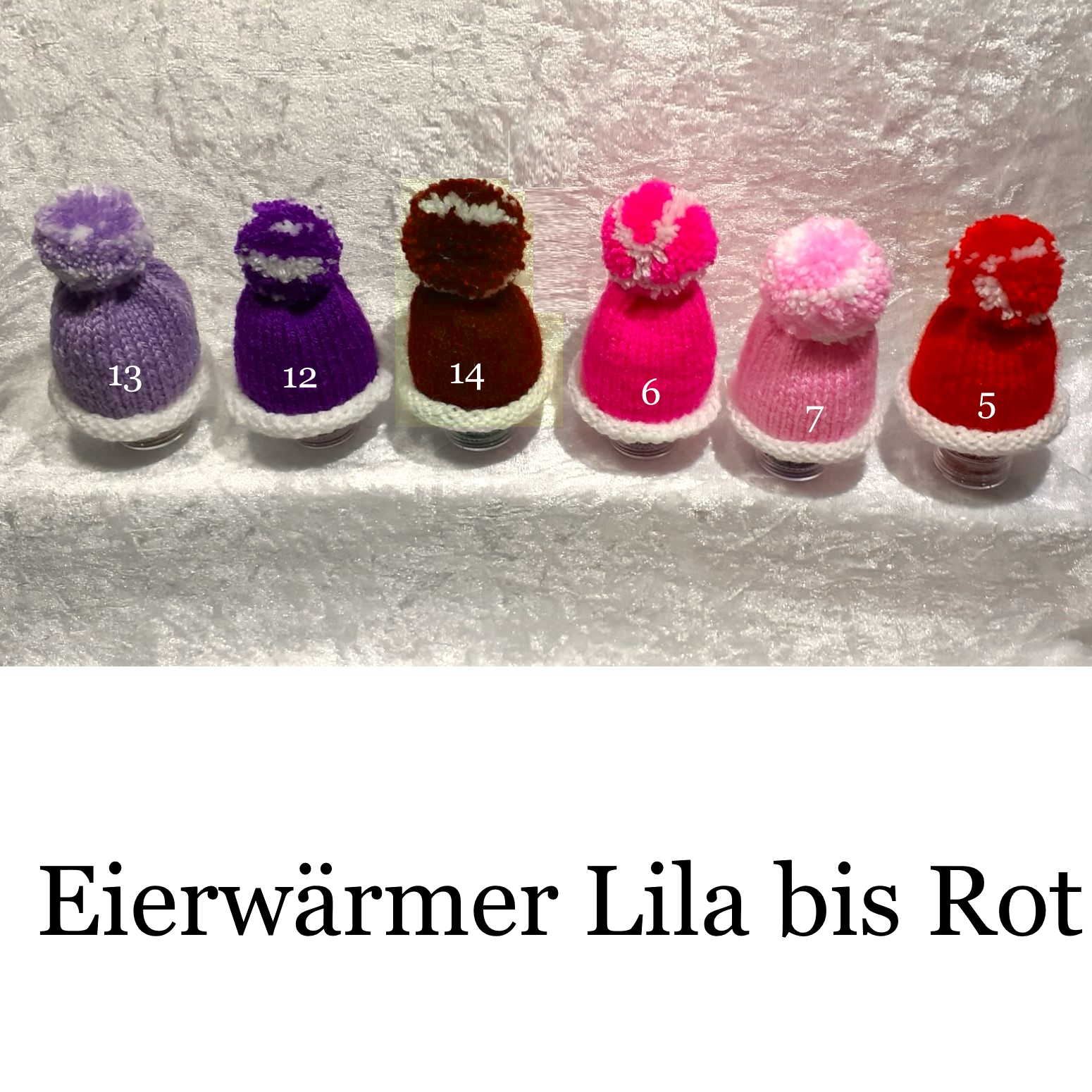 Eiermützen die Ihr auf den Bildern seht hat ihre eigene Farb-Nummer.