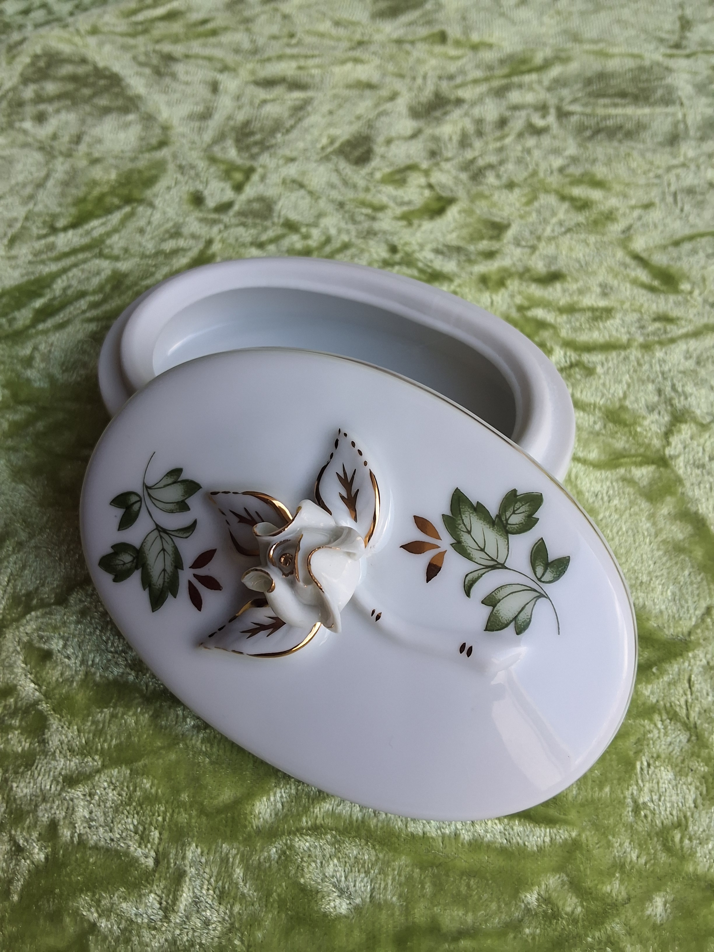 Dieses Porzellandöschen ist vintage. Es hatte ein "früheres Leben". Bitte beachten Sie, dass kleinere Unregelmäßigkeiten und Mängel vorhanden sein können.