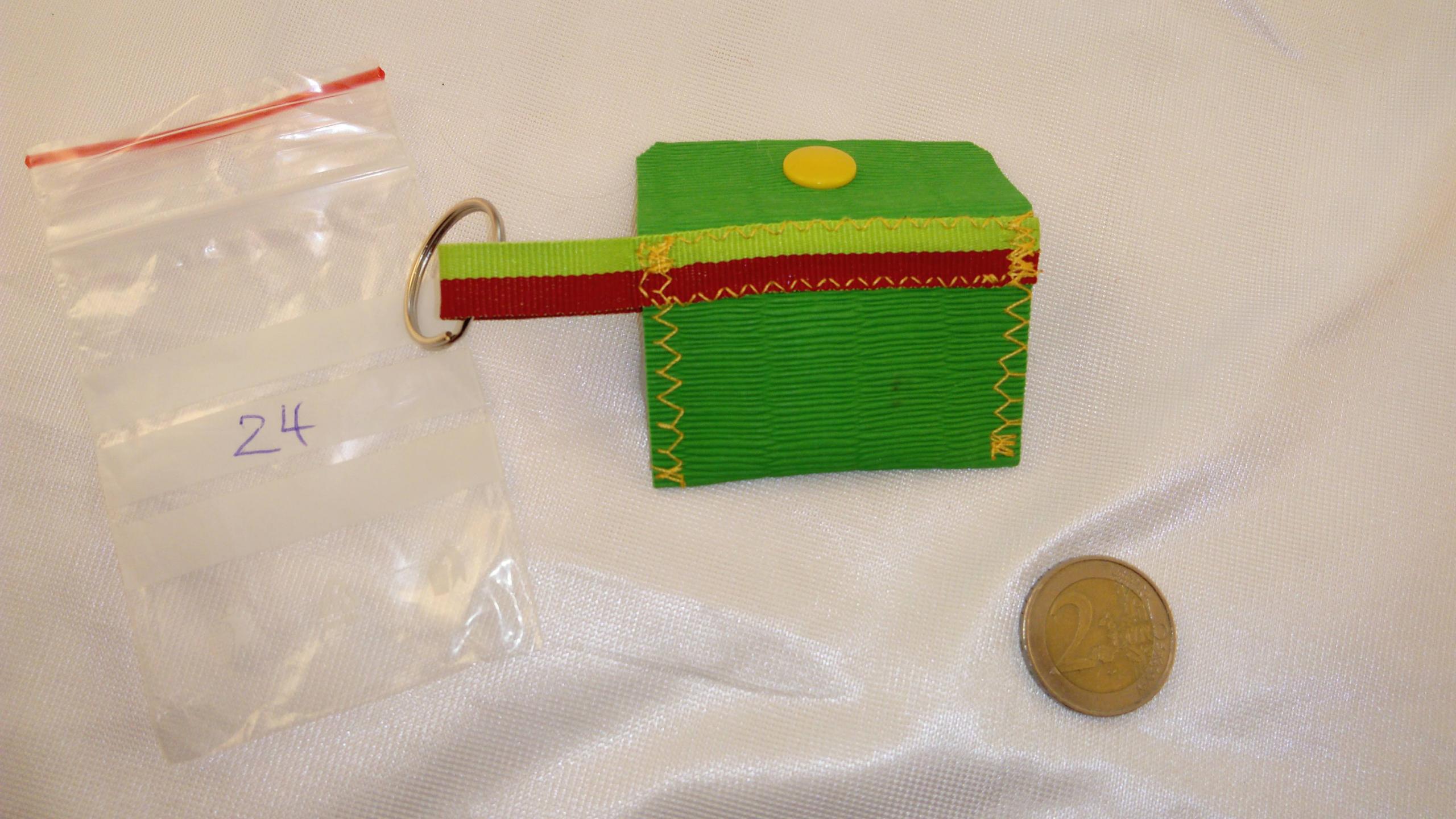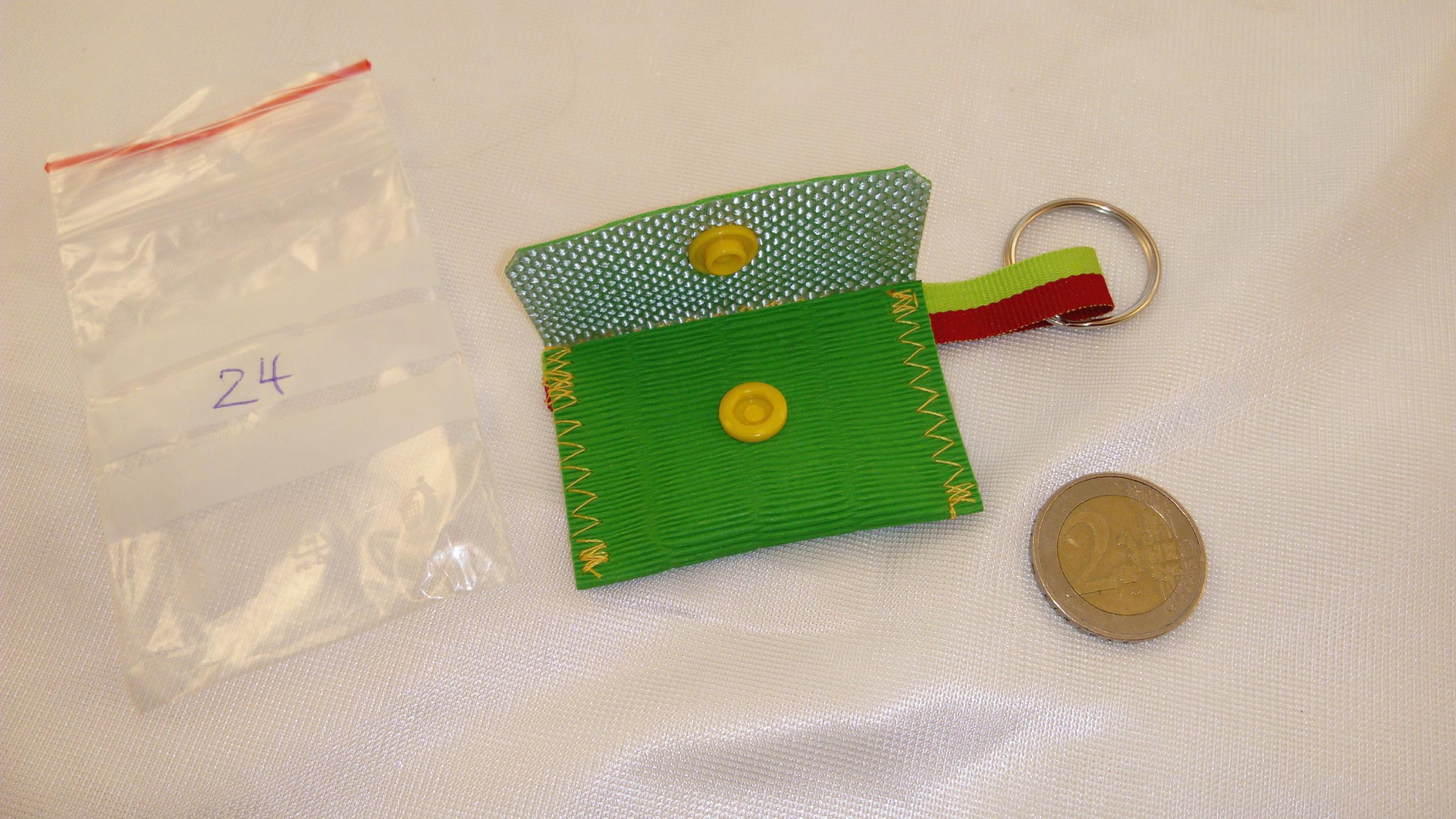 Diese mini kleine Geldbörse kannst du gut als Schlüsselanhänger nutzen und etwas Münzgeld unterbringen.