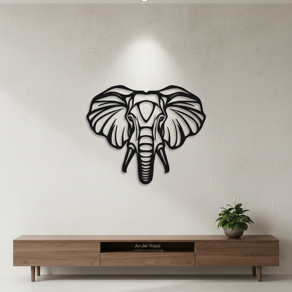 Dieses filigrane Elefanten-Wandbild ist der perfekte Akzent für dein Zuhause oder dein Büro. Handgefertigt und einzigartig
