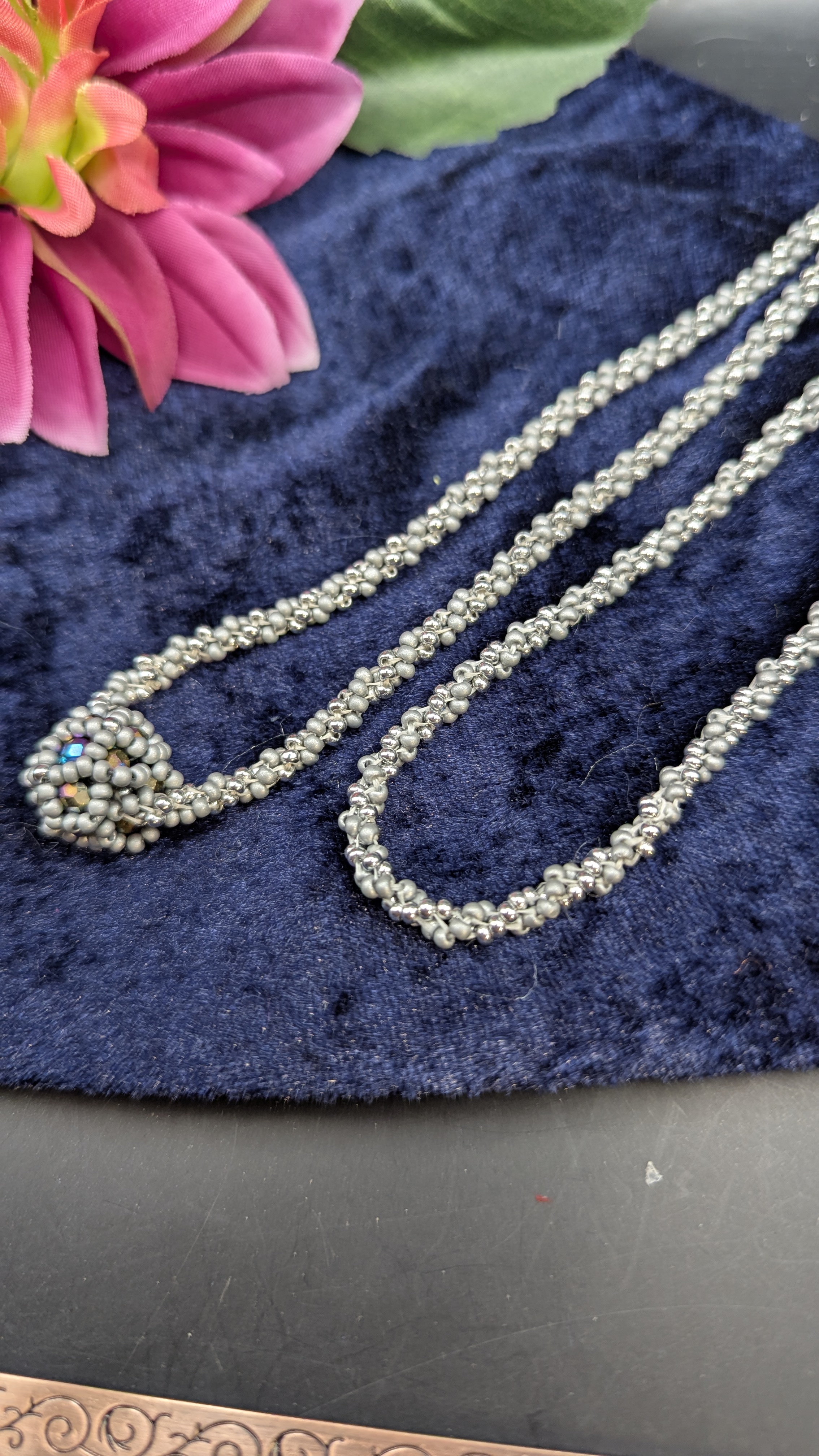 Elegante Glasperlenkette – Silber matt & glänzend mit Spiraldesign