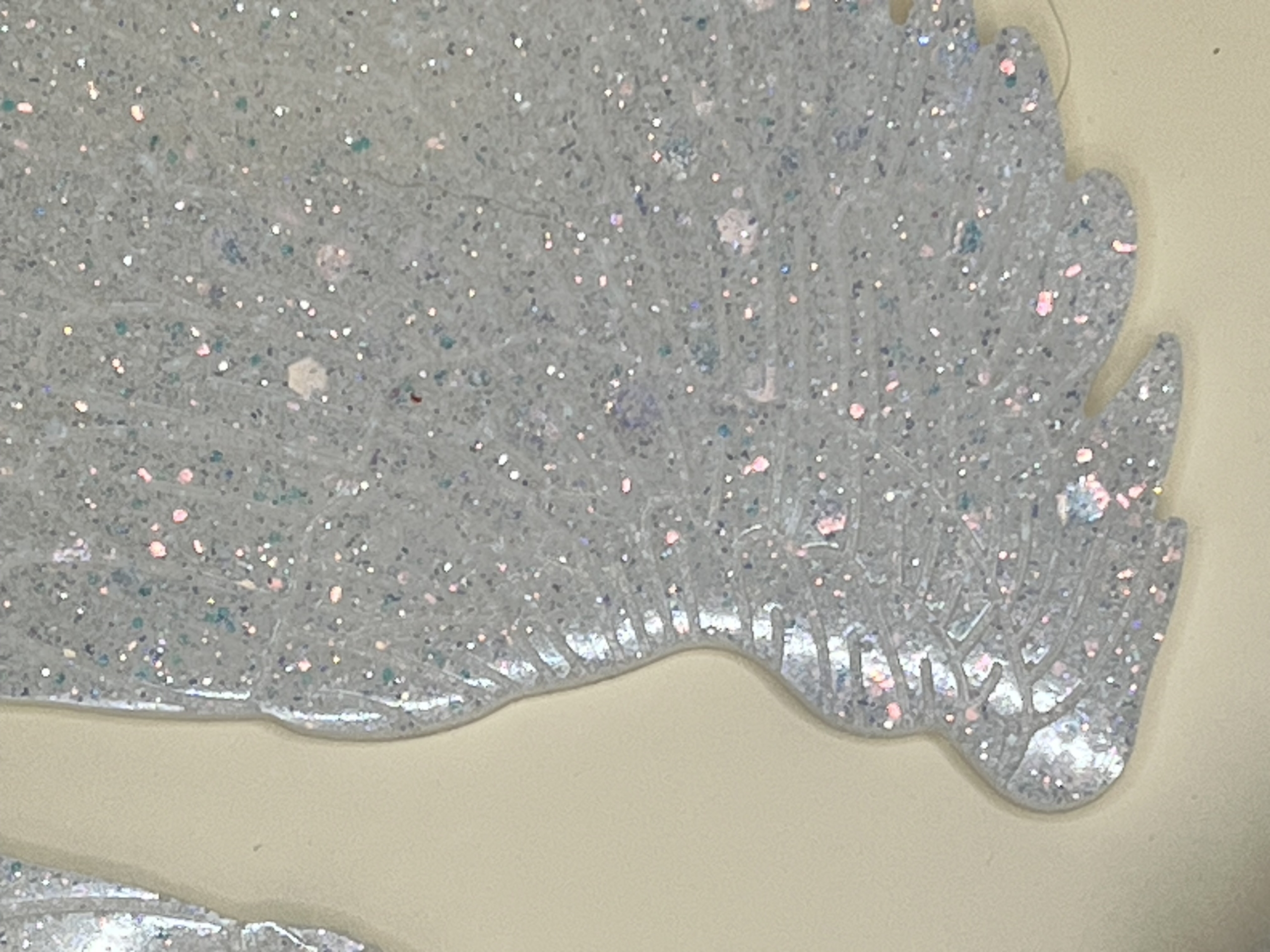 Diese handgefertigten Engelsflügel aus hochwertigem Epoxidharz sind ein einzigartiges Dekoelement für Zuhause, das Büro oder als liebevolles Geschenk. Die Flügel schimmern in elegantem Weiß und feinem Glitzer, wodurch sie besonders edel und harmonisch wirken. Jeder Flügel ist ein Unikat und wird sorgfältig in Handarbeit gefertigt.