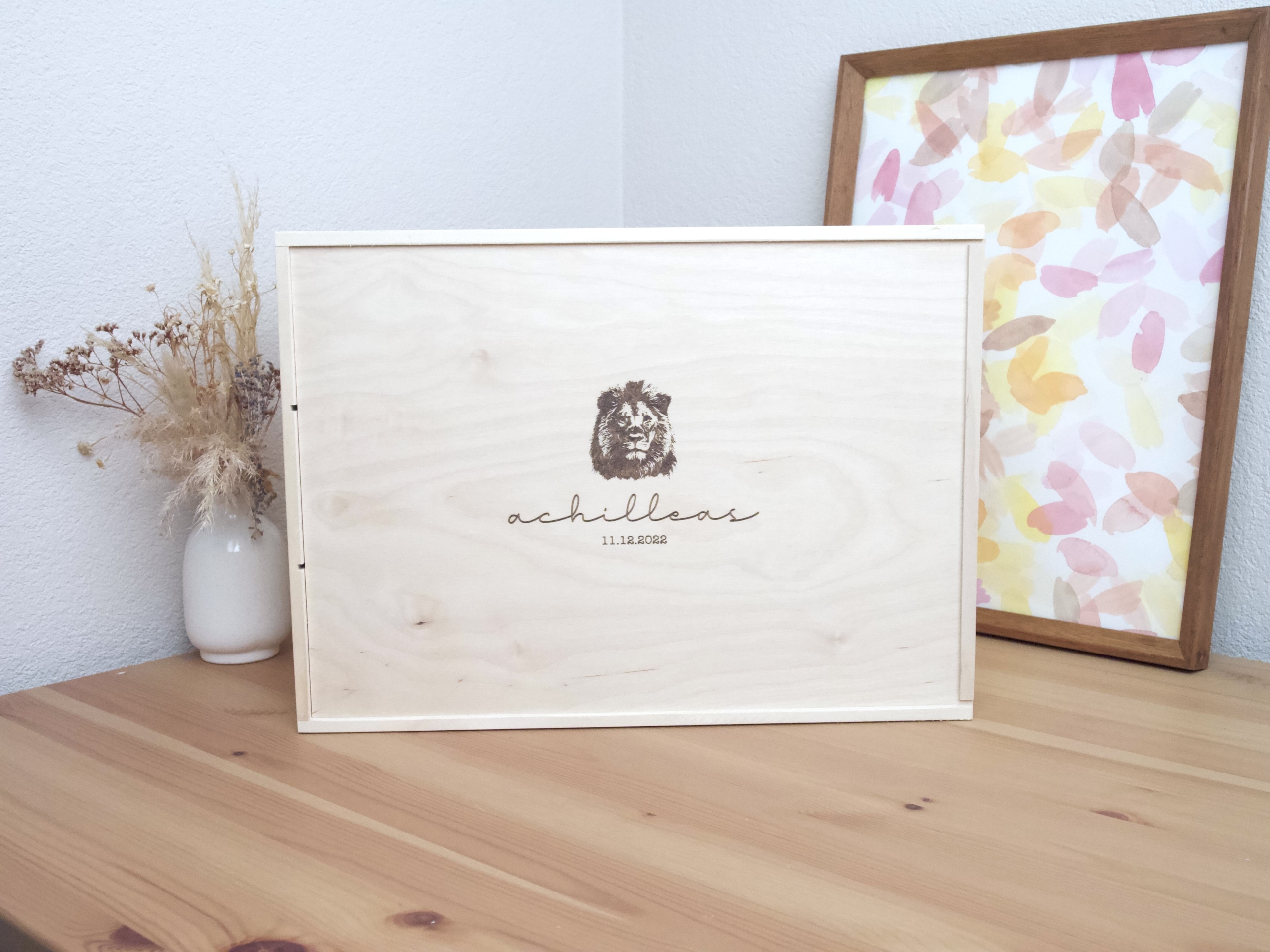 Mit dieser personalisierten Erinnerungskiste schaffst du einen Ort, an dem Erinnerungen und Liebe einen festen Platz finden.