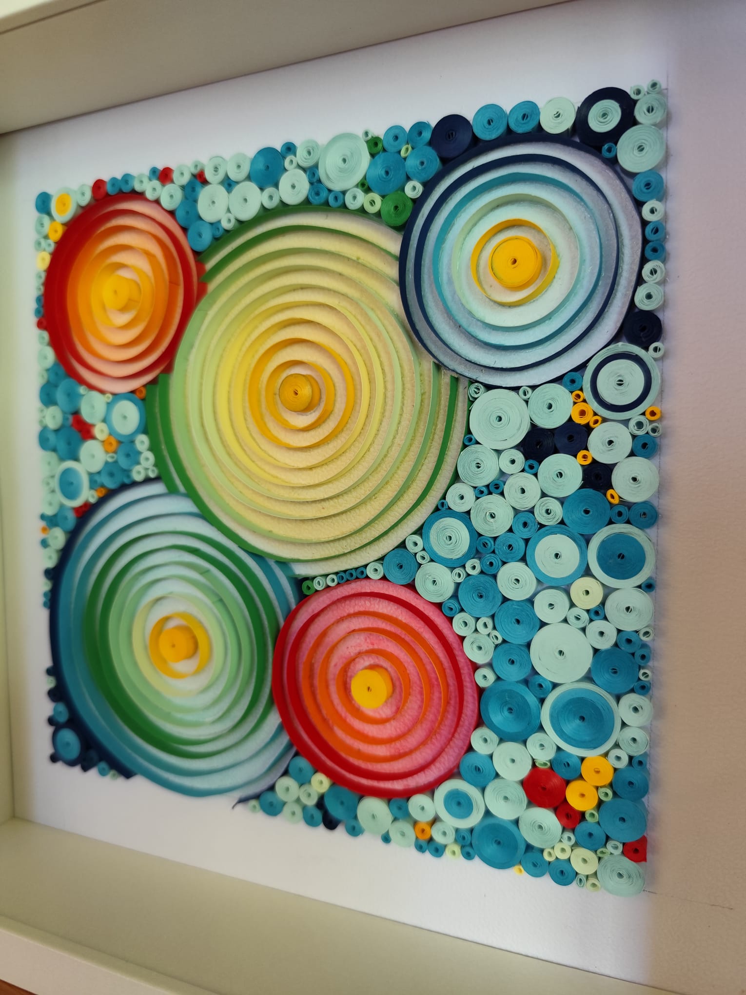 Farbenfrohe Kreise hergestellt in der Quilling Technik.