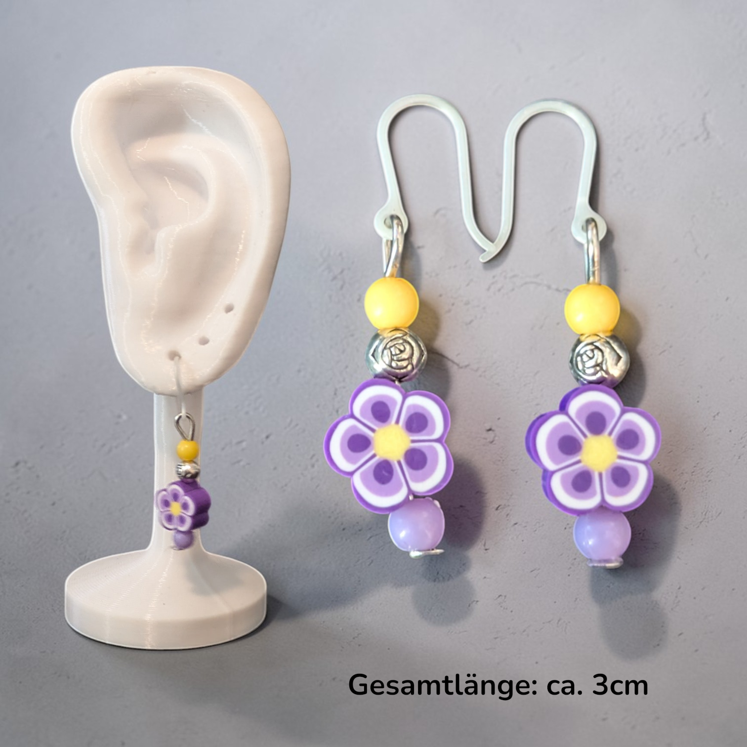 Kreative Ohrringe mit Blumenmuster-Perlen in schönen Farben.