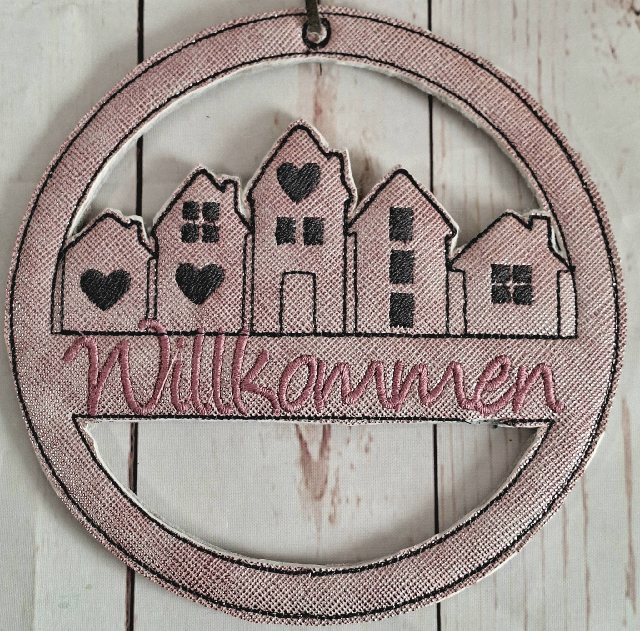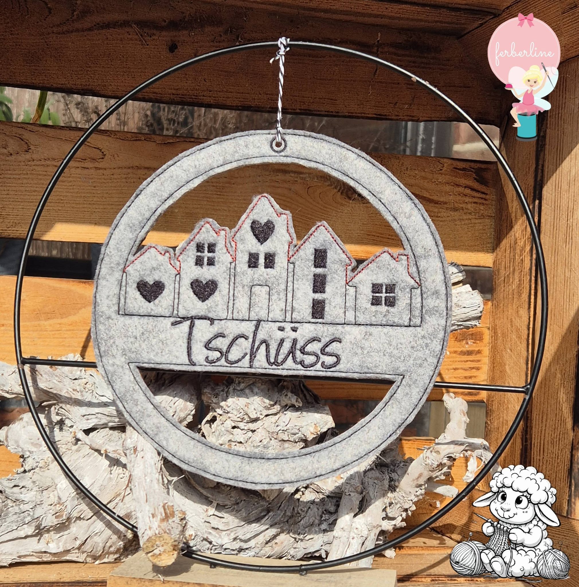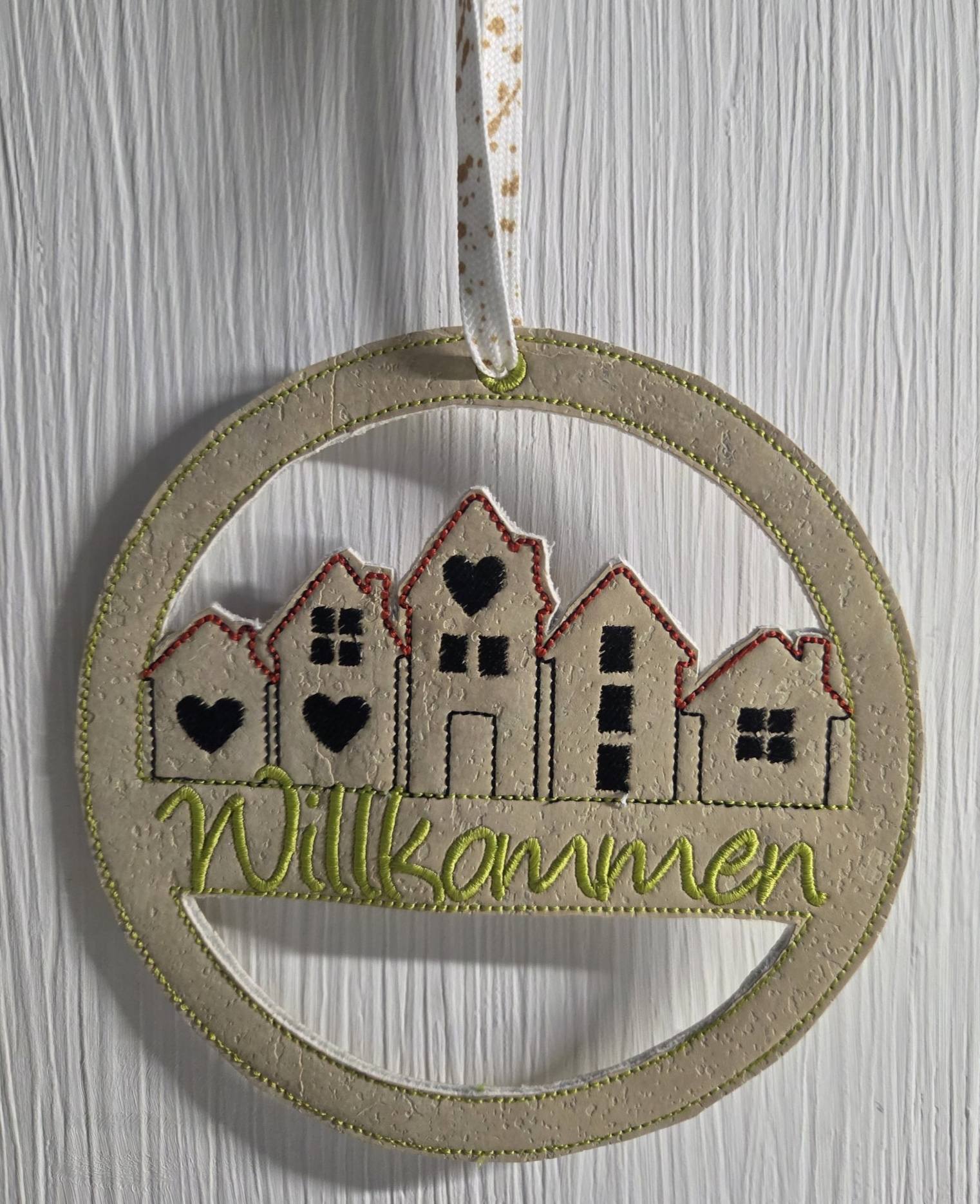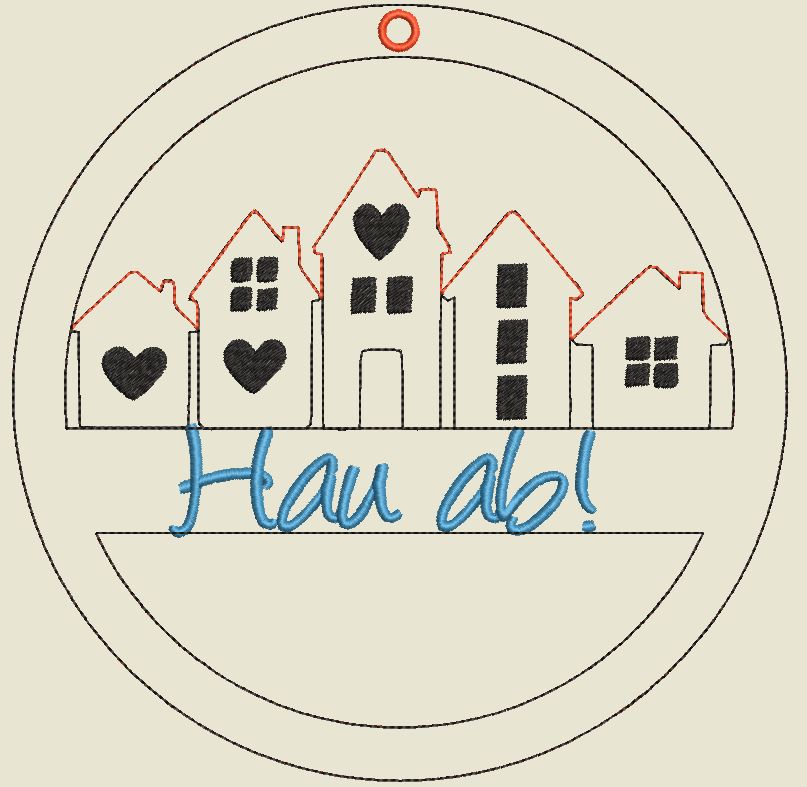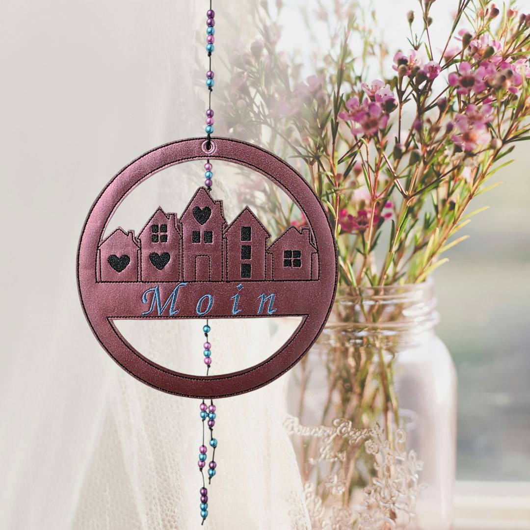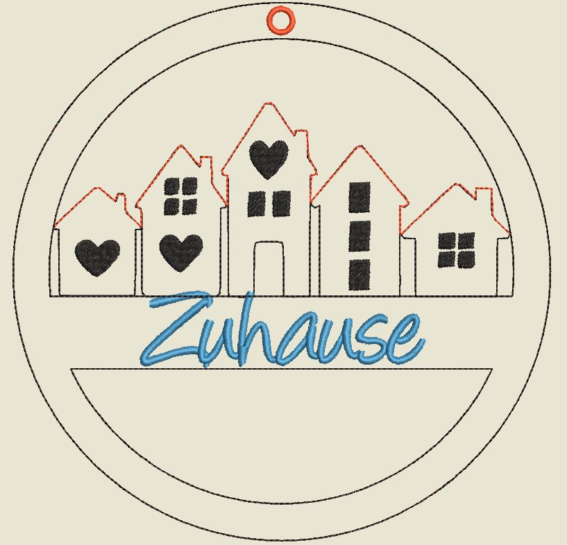 Im Set bekommt ihr je 1 Stickdatei zur Fertigung des Häuserkranzes in der Größe 13x13cm, 15x15cm, 16x16cm, 18x18cm und 20x20cm mit den Schriftzügen: