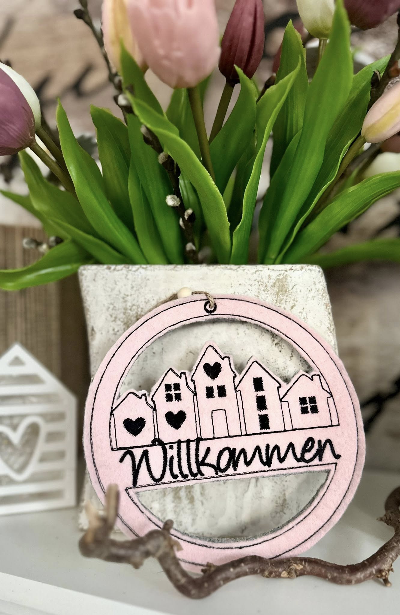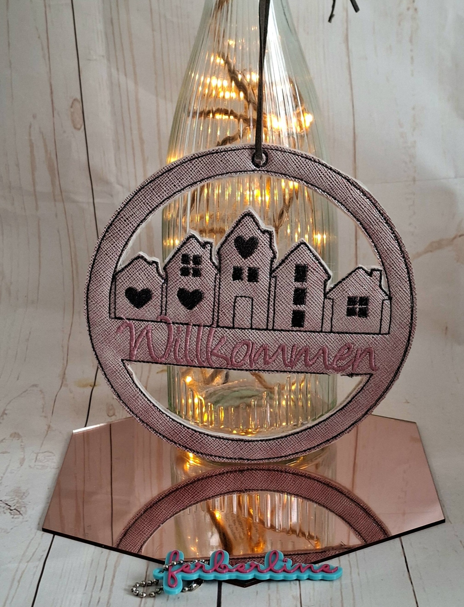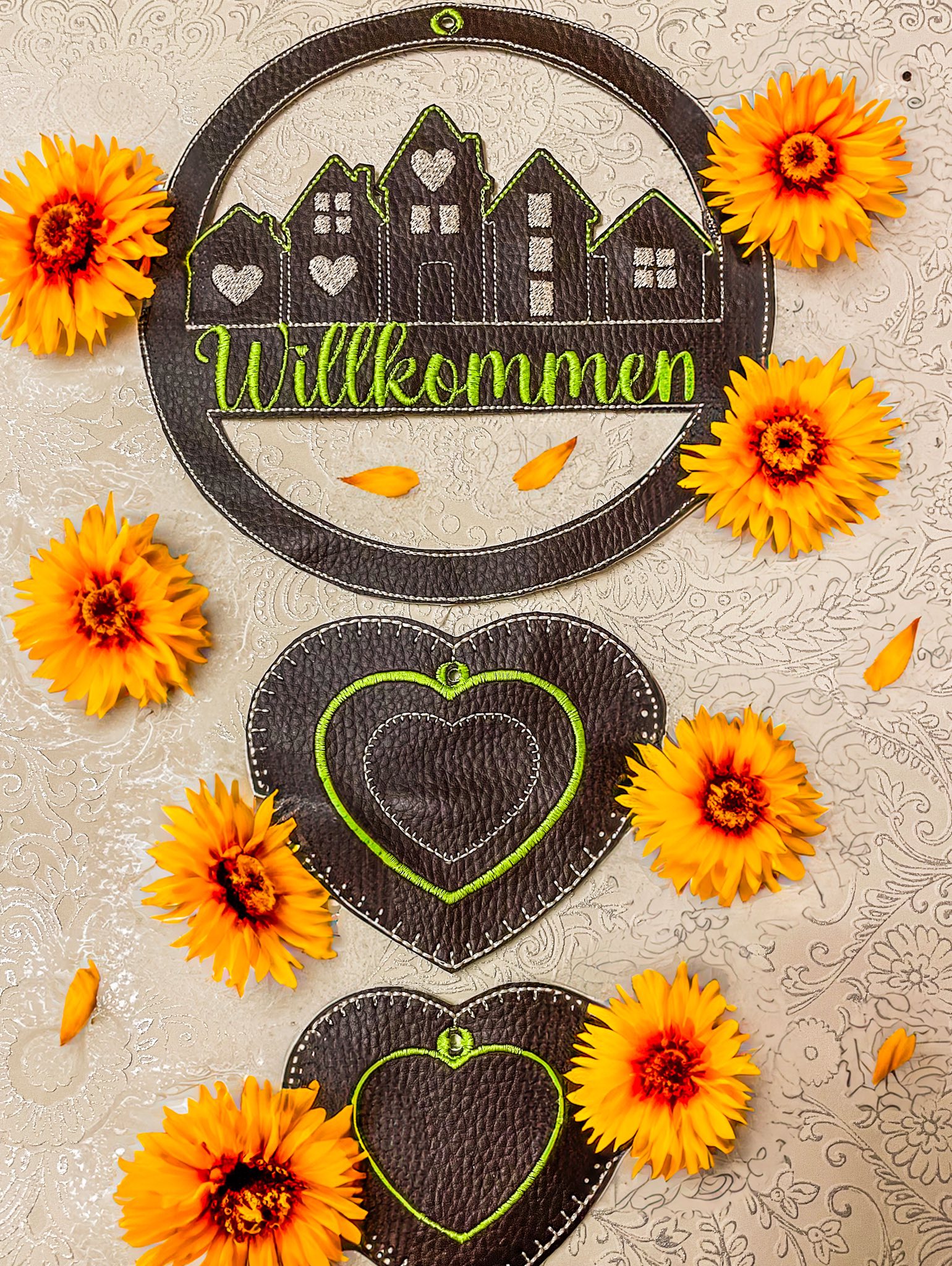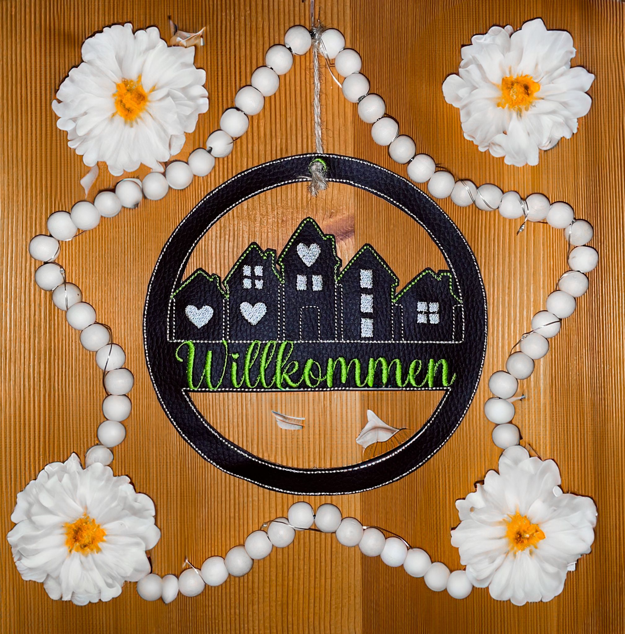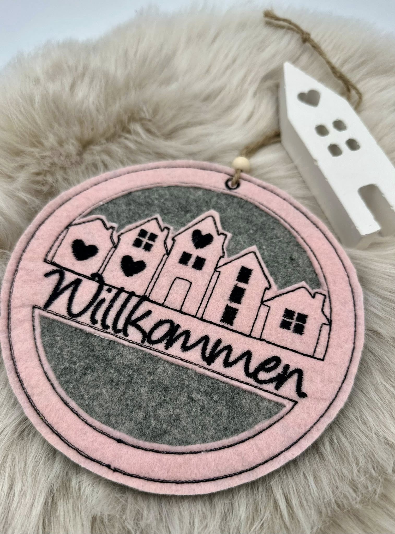 Im Set bekommt ihr je 1 Stickdatei zur Fertigung des Häuserkranzes in der Größe 13x13cm, 15x15cm, 16x16cm, 18x18cm und 20x20cm mit den Schriftzügen: