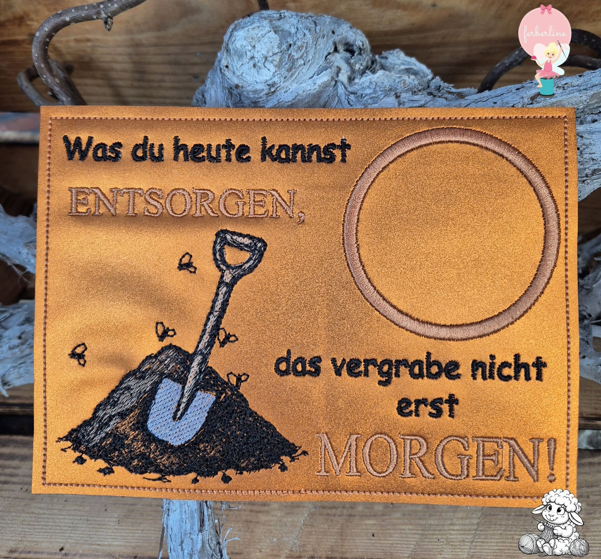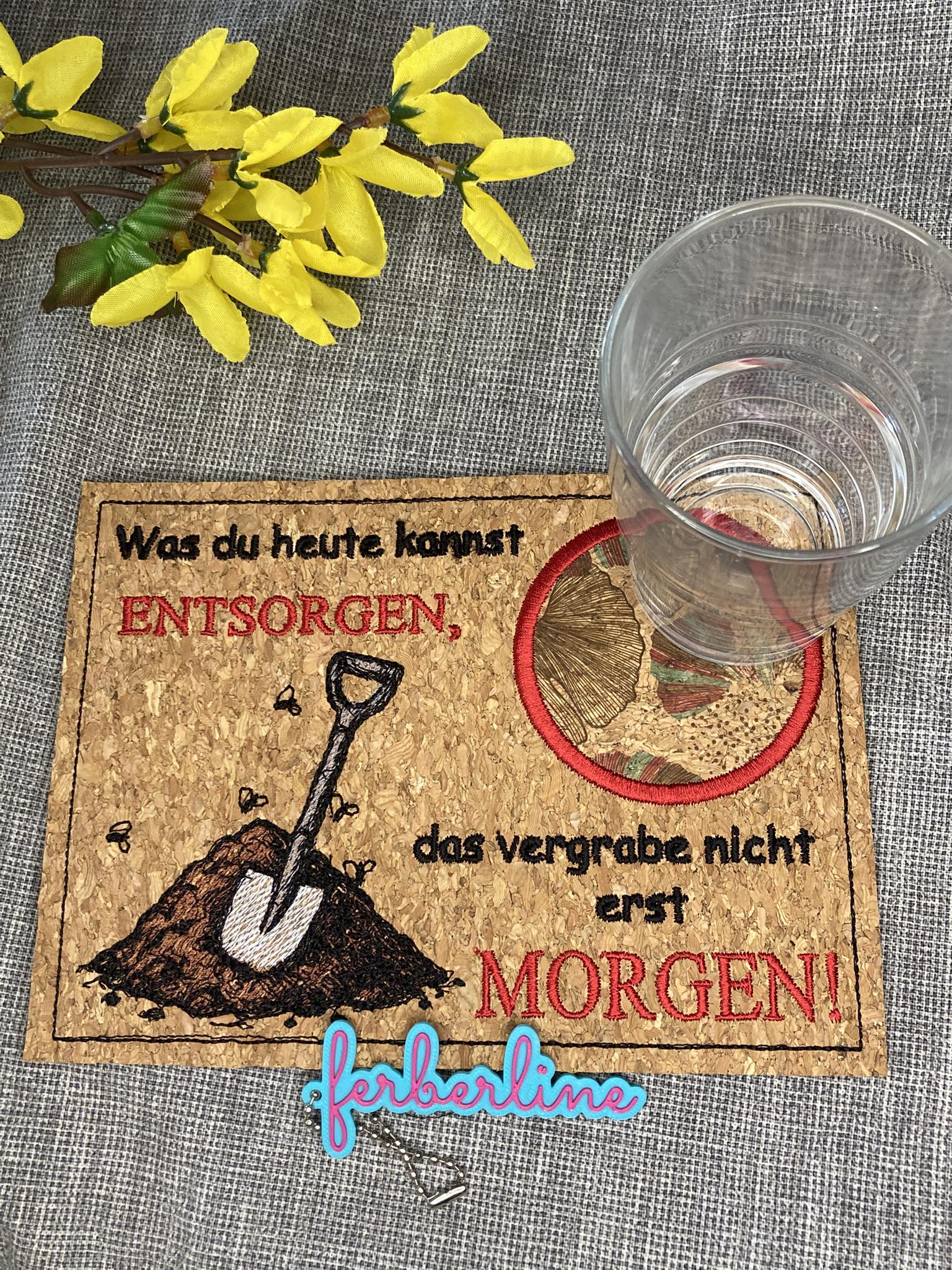 Ferberline Stickdatei Tassenteppich Spruch Egal 13x18
