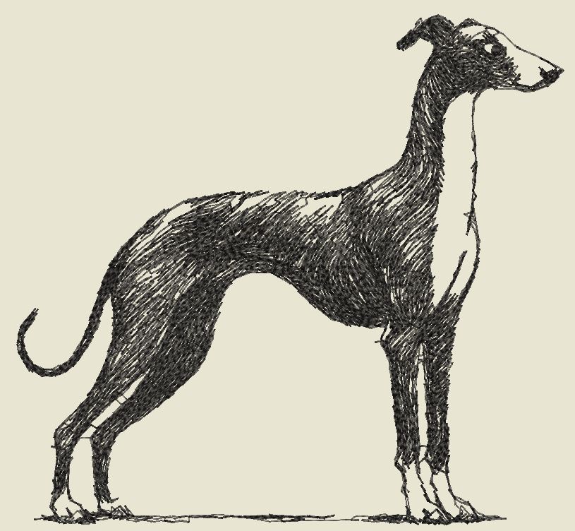 Der hübsche Galgo ist ideal für Taschen und Kleidung.