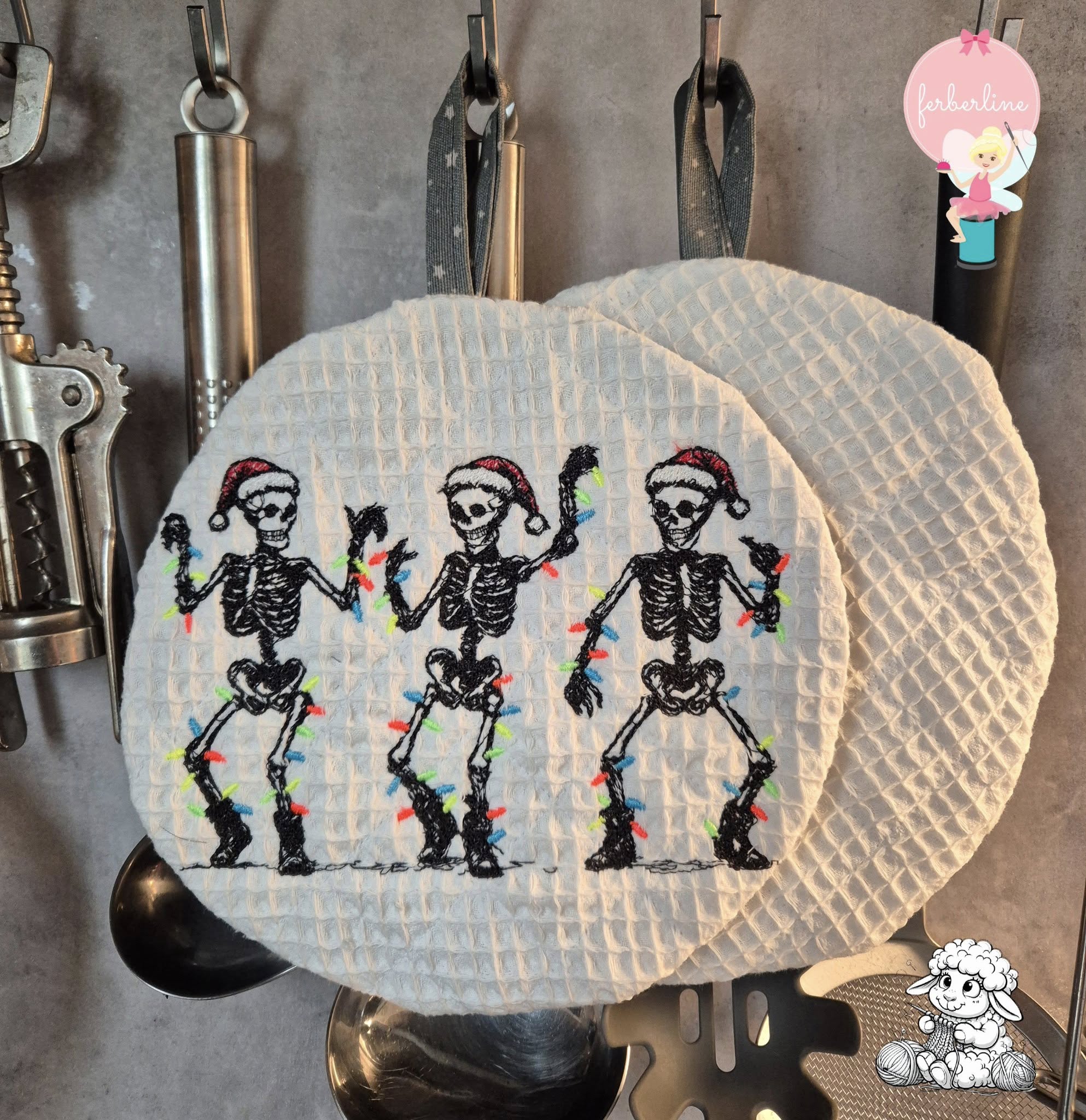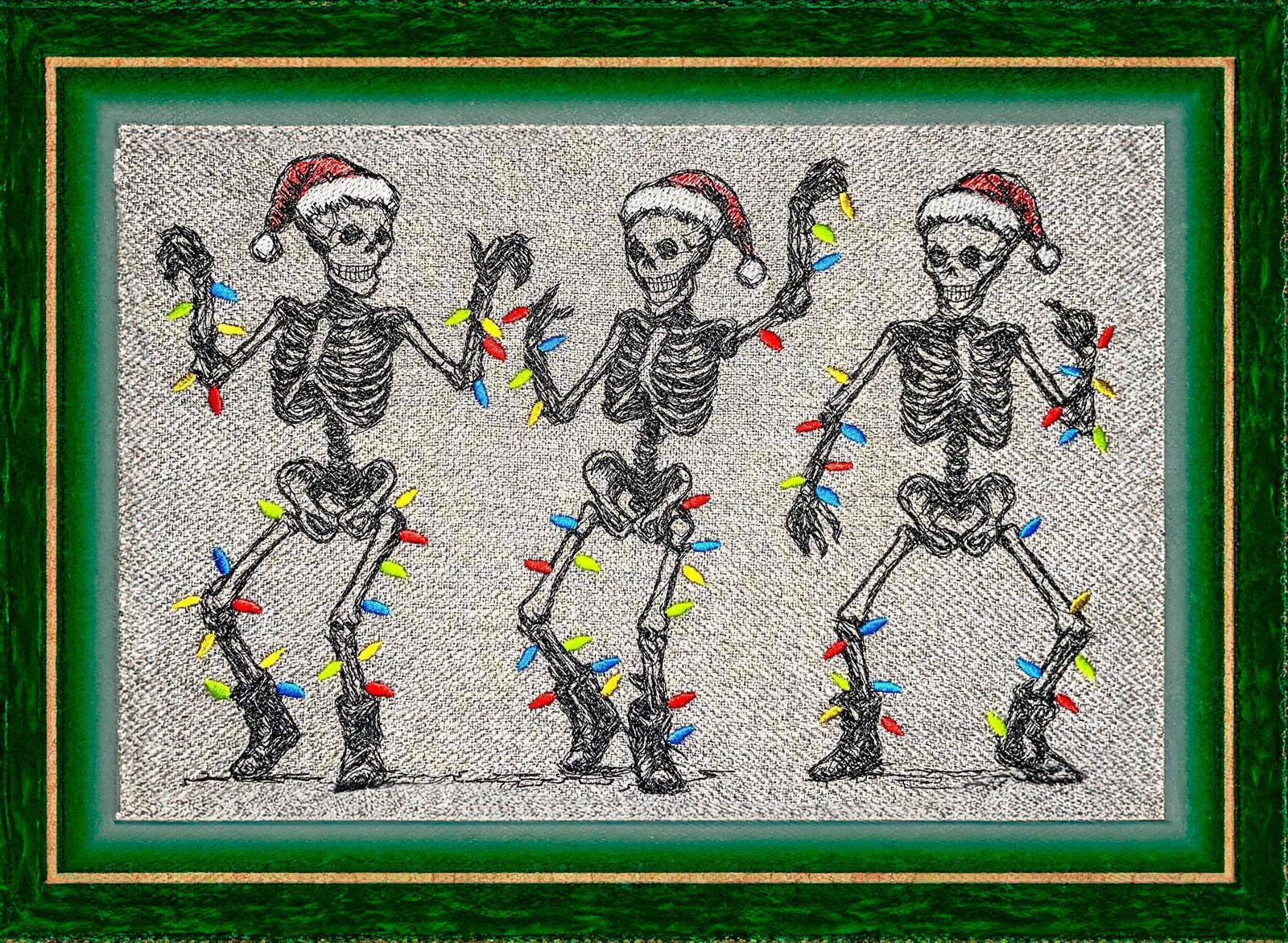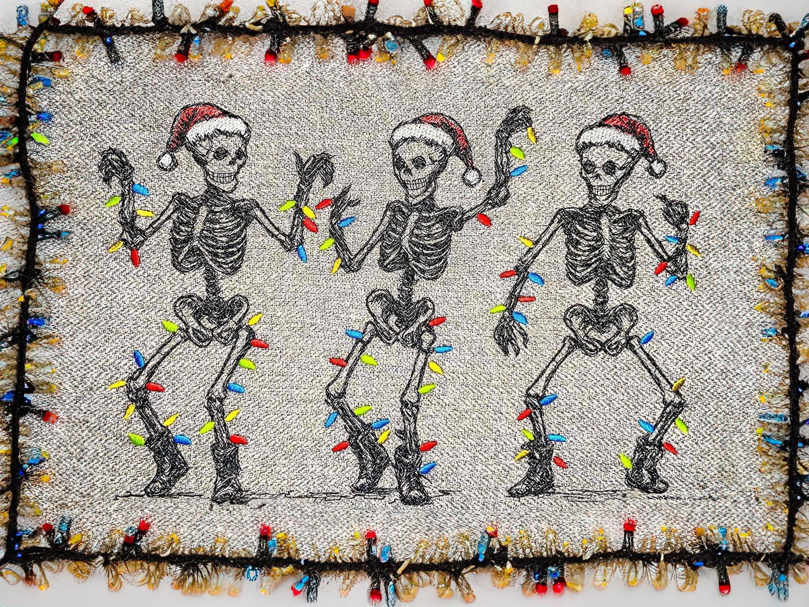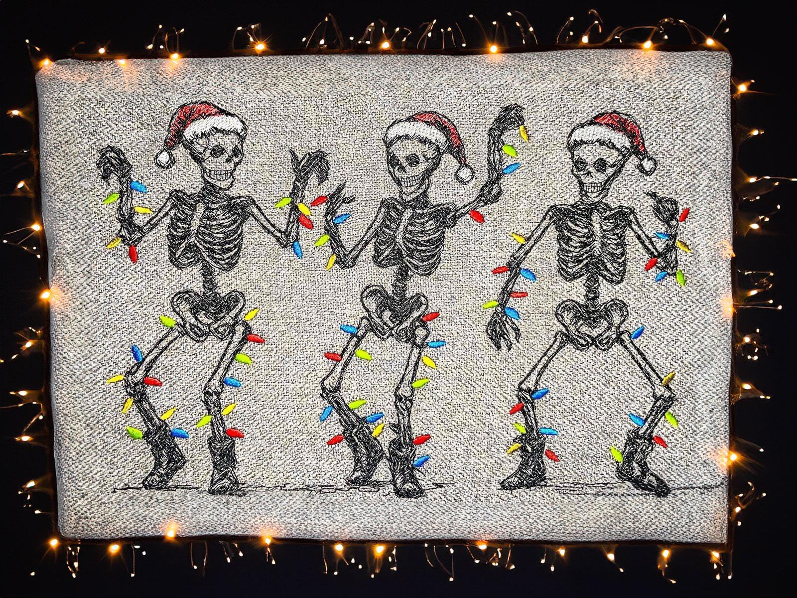 Im ZIP bekommt ihr je eine Stickdatei mit den Skeletten in den Größen 13x18cm, 15x22cm, 16x24cm und 18x27cm in den Dateiformaten DST, PES, JEF, EXP, HUS, VP3, XXX und VIP.