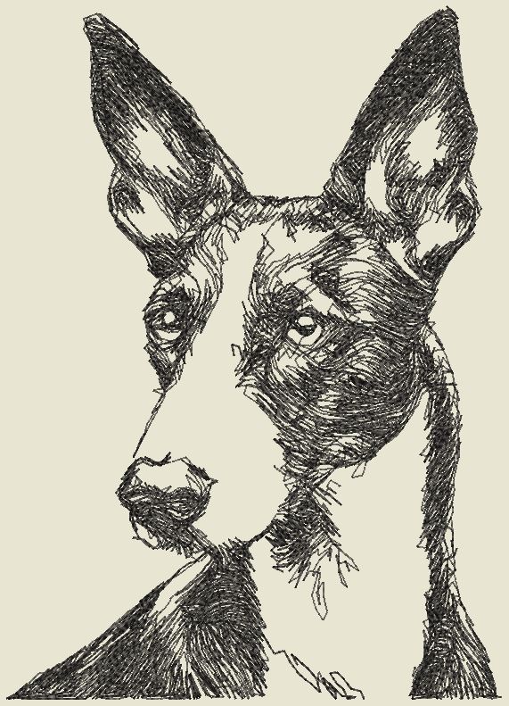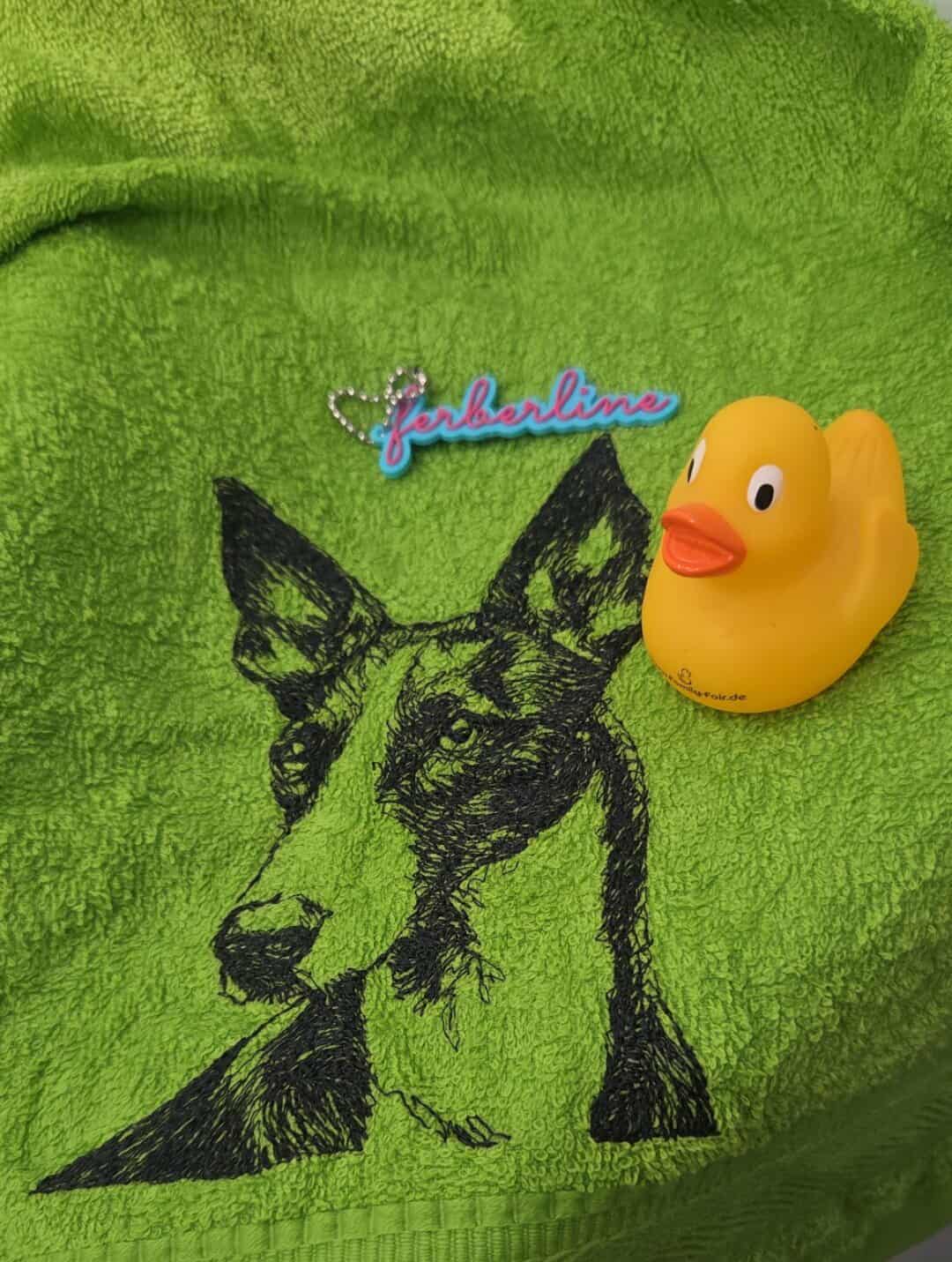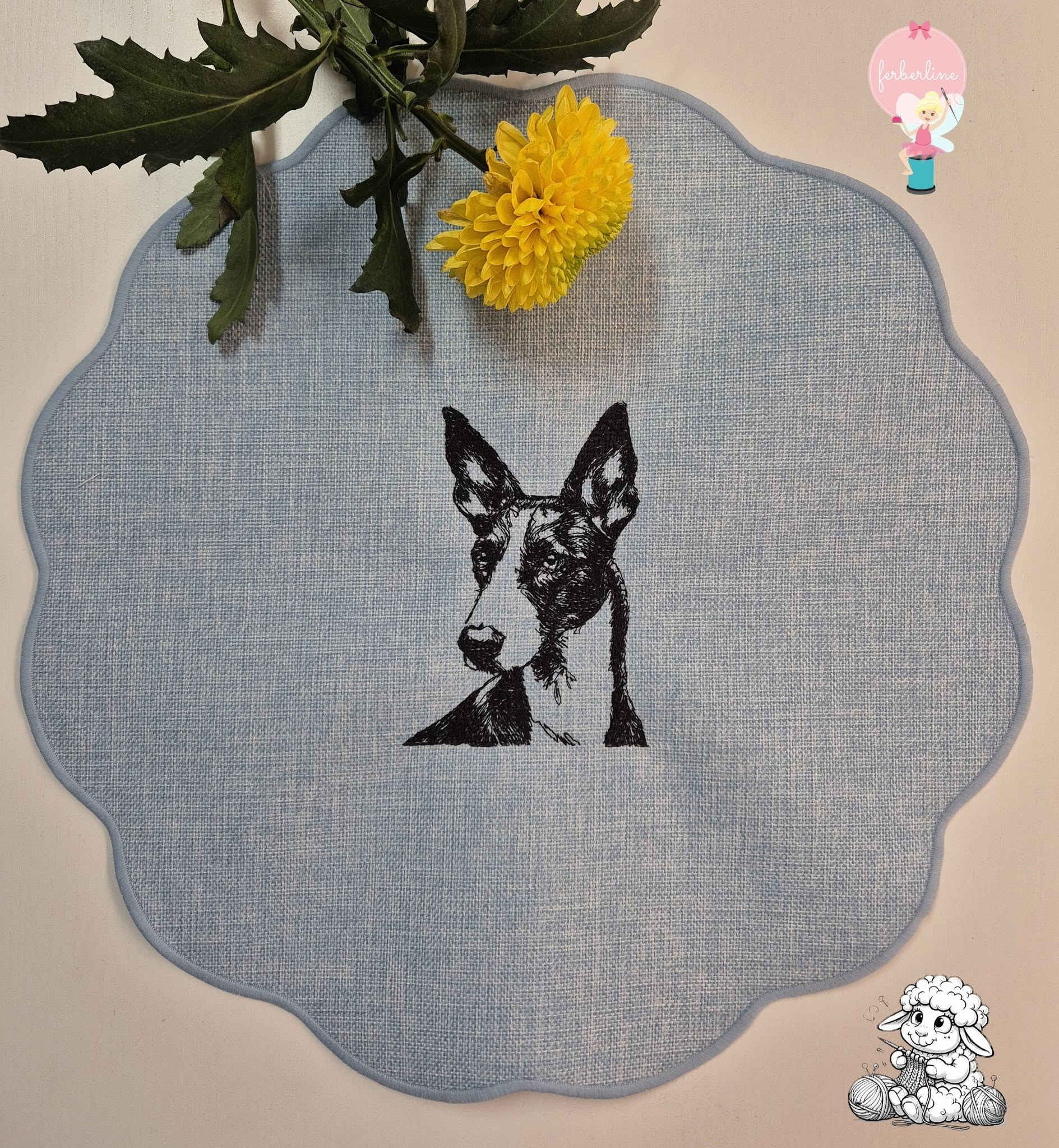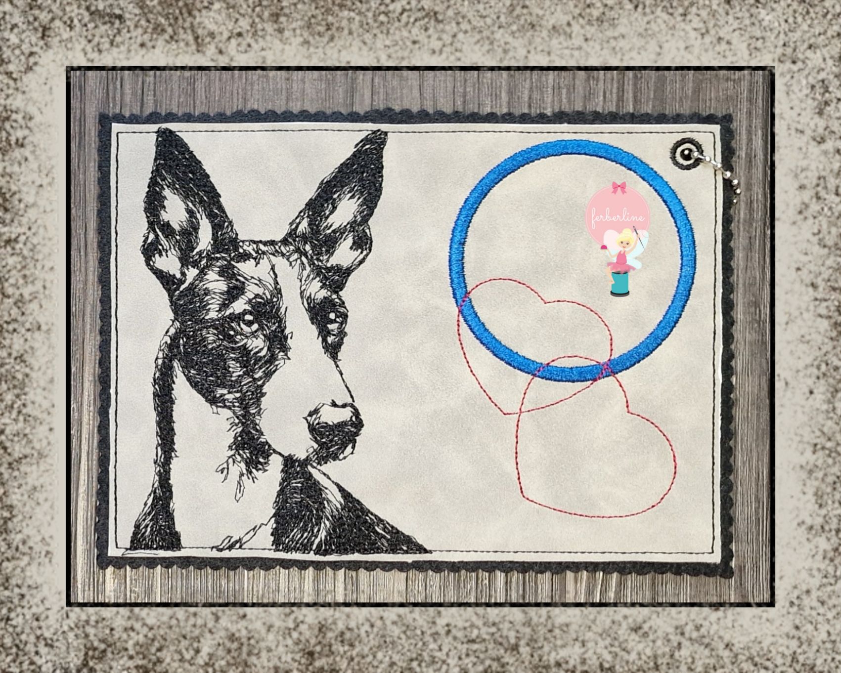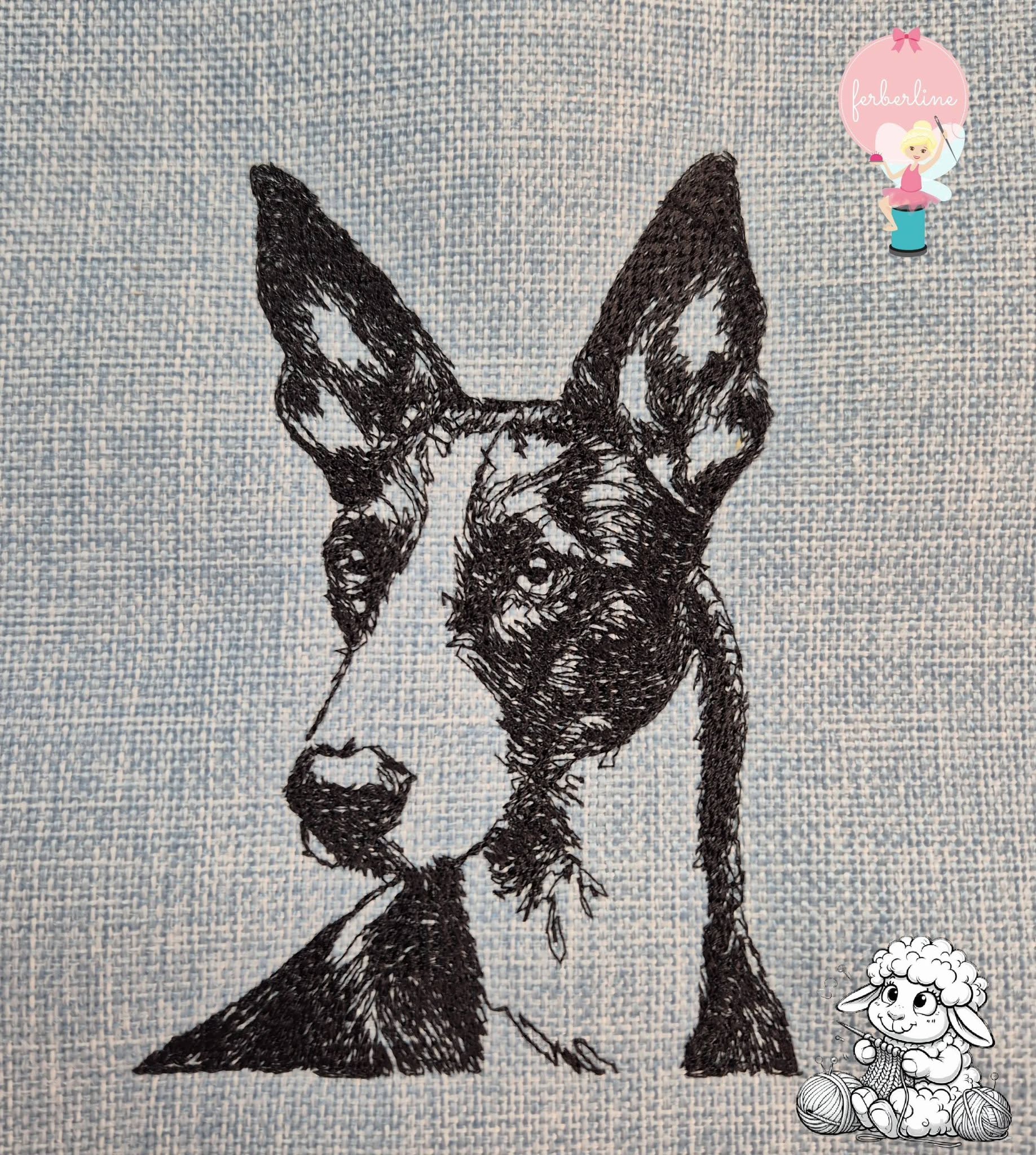 Der hübsche Podenco ist ideal für Taschen und Kleidung.