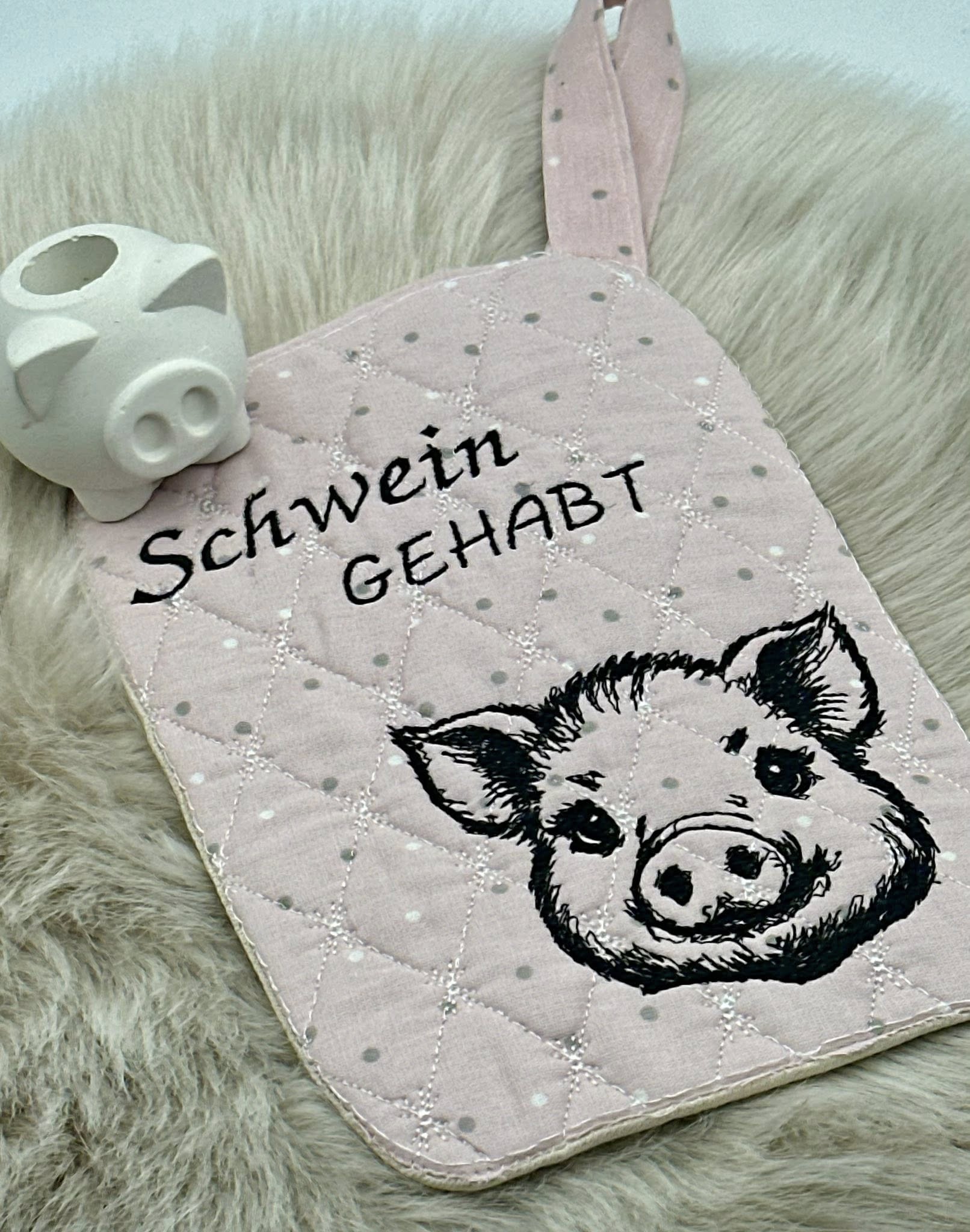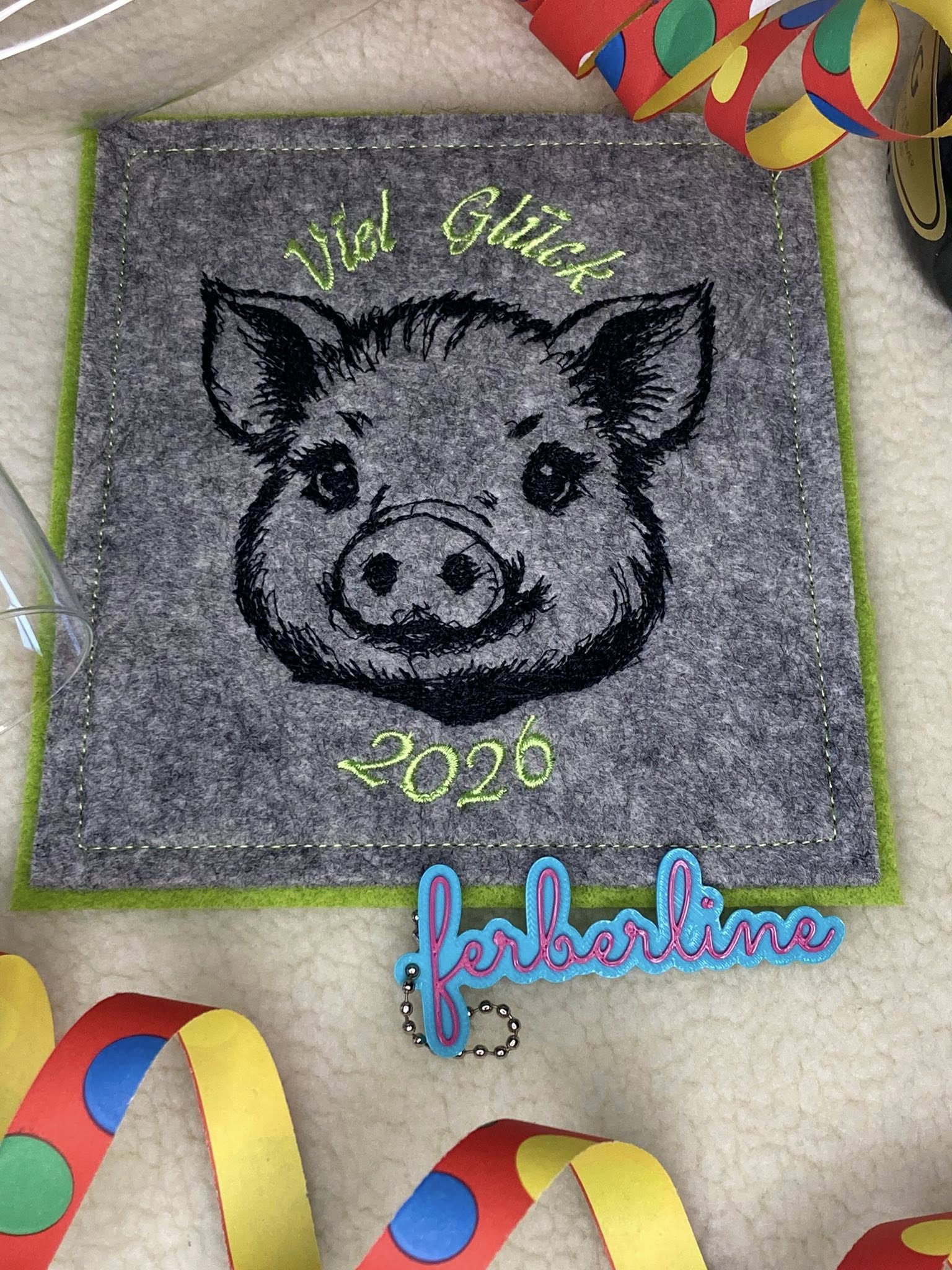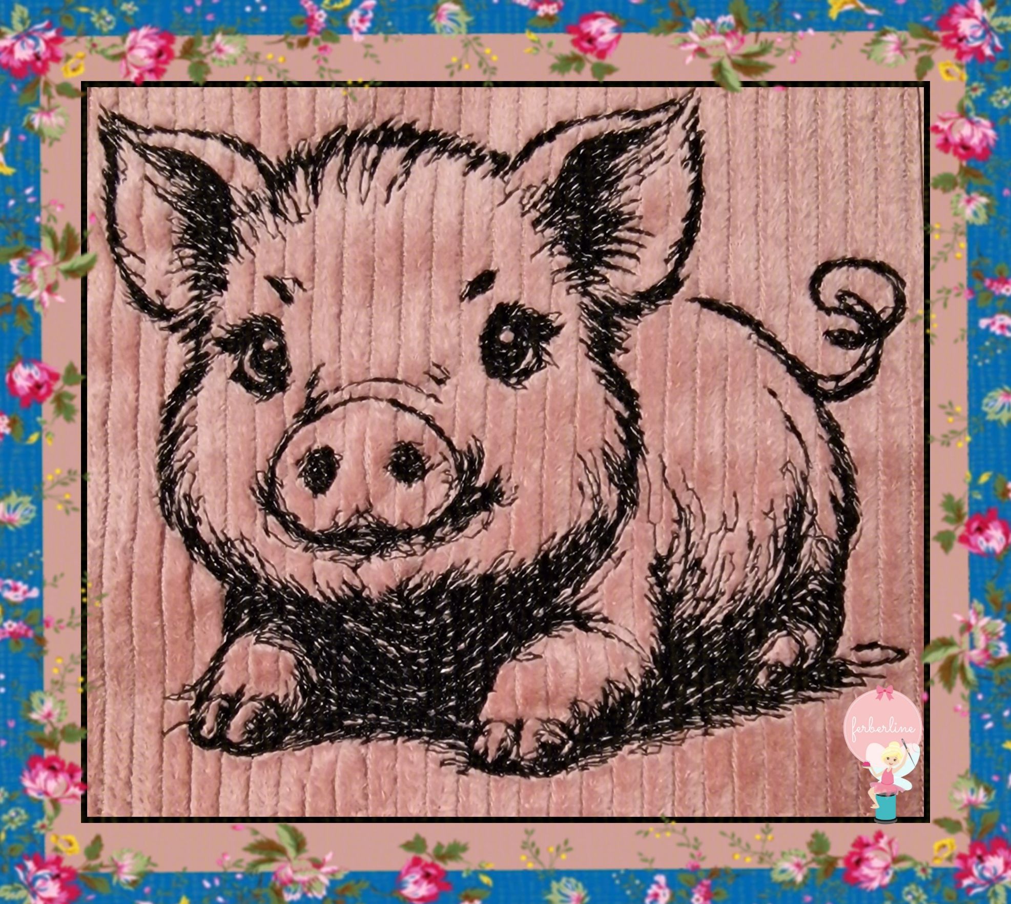 Das süße Schweinchen ist ideal für Taschen und Kleidung.