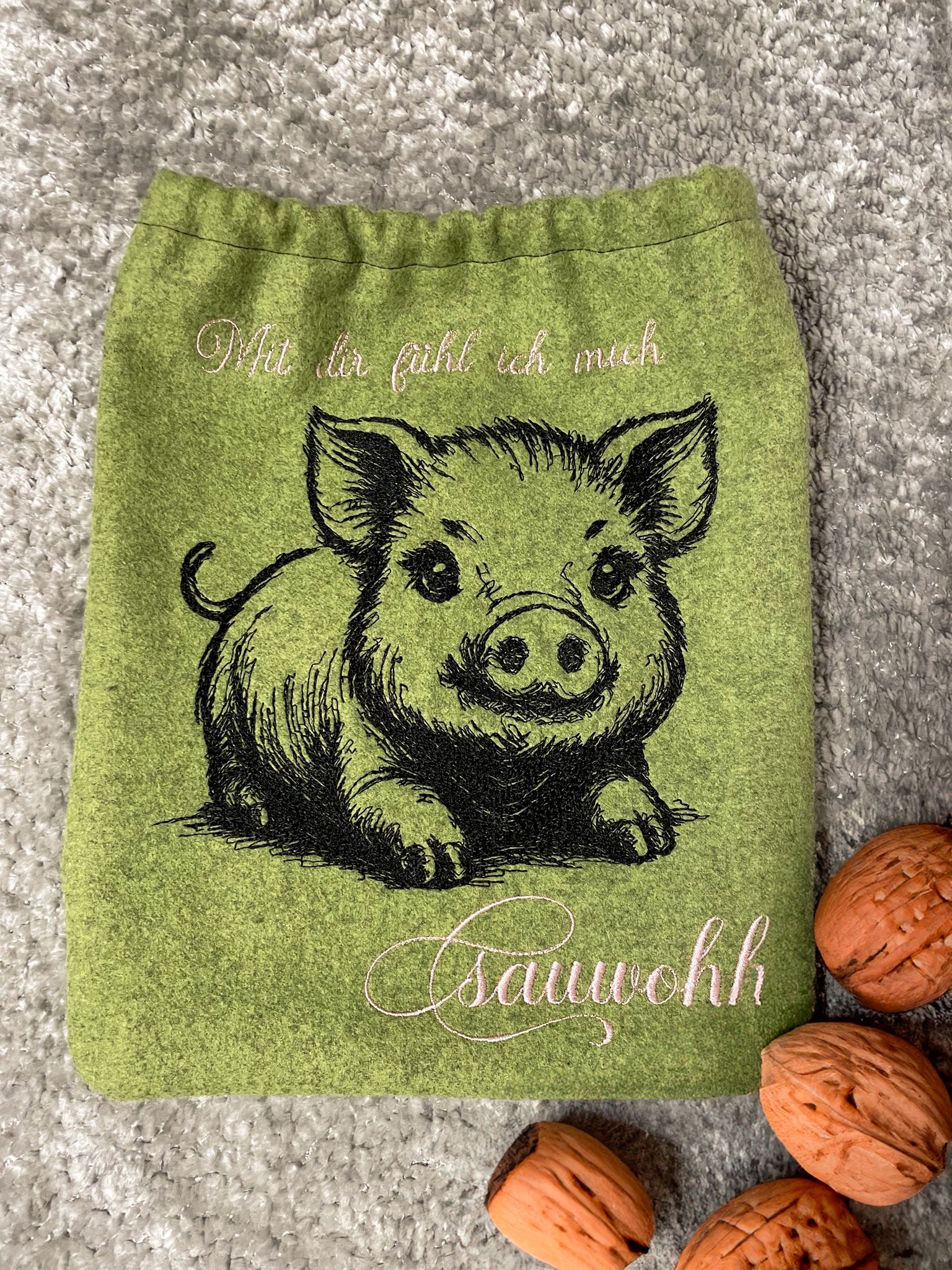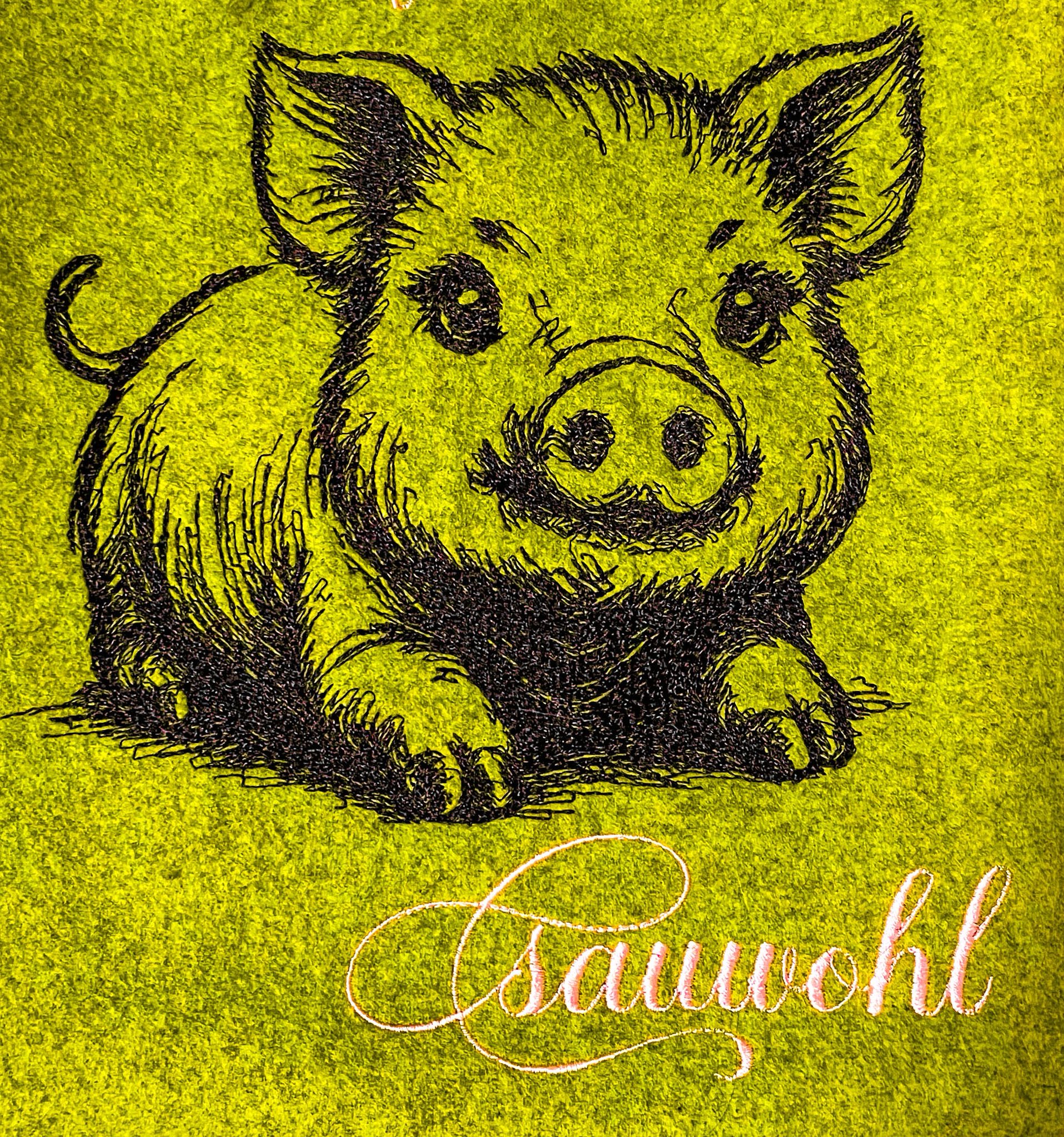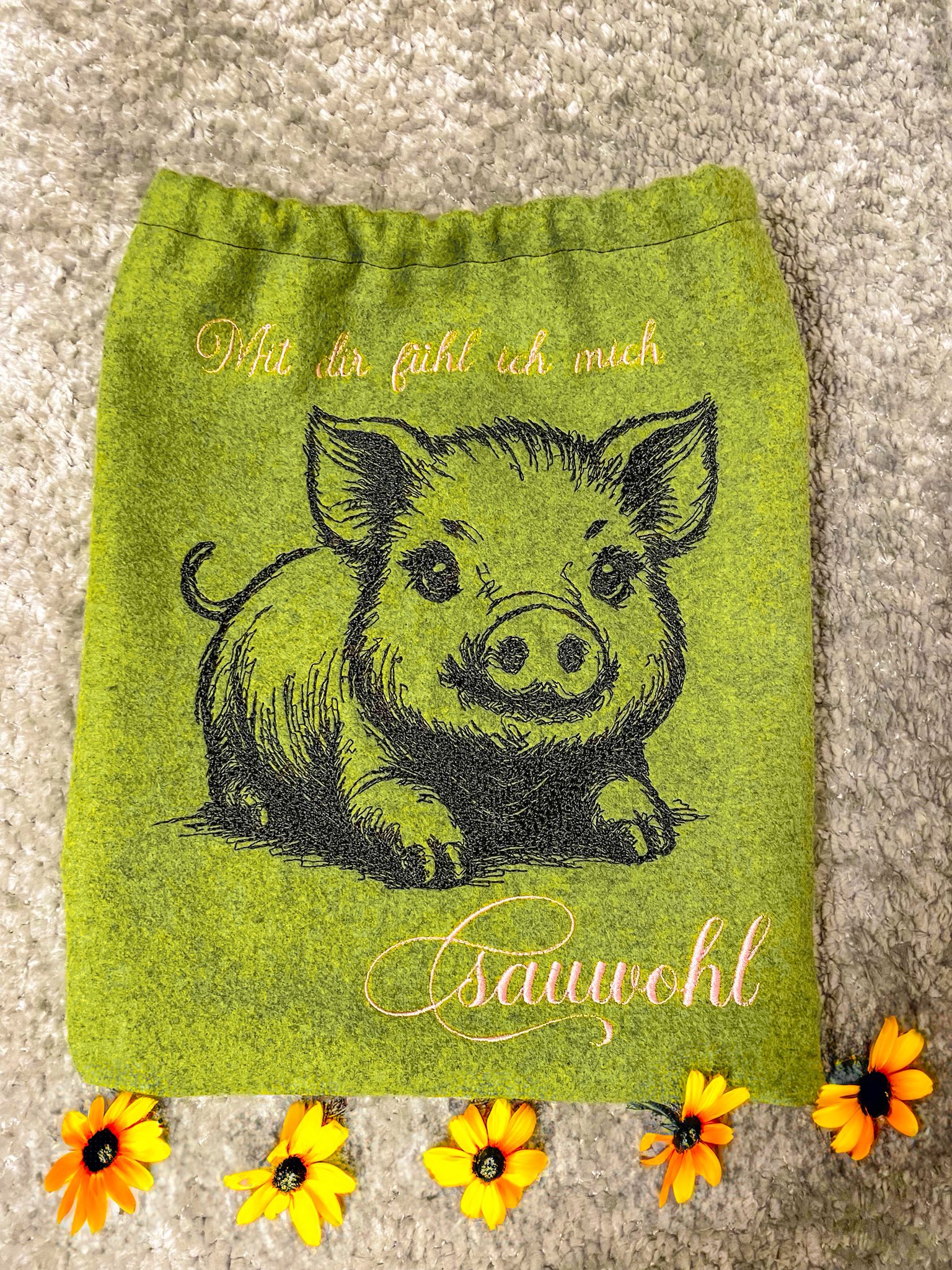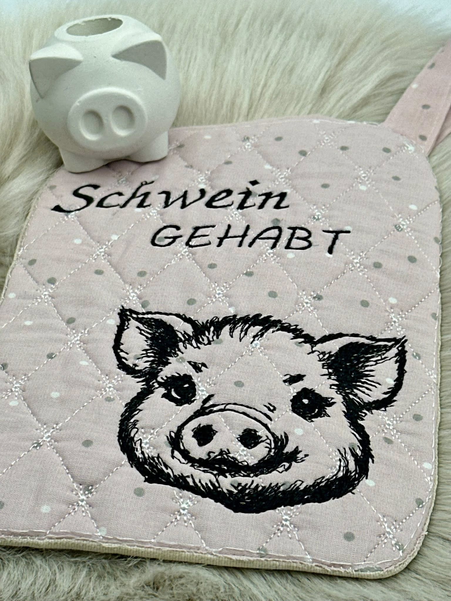 Das süße Schweinchen ist ideal für Taschen und Kleidung.
