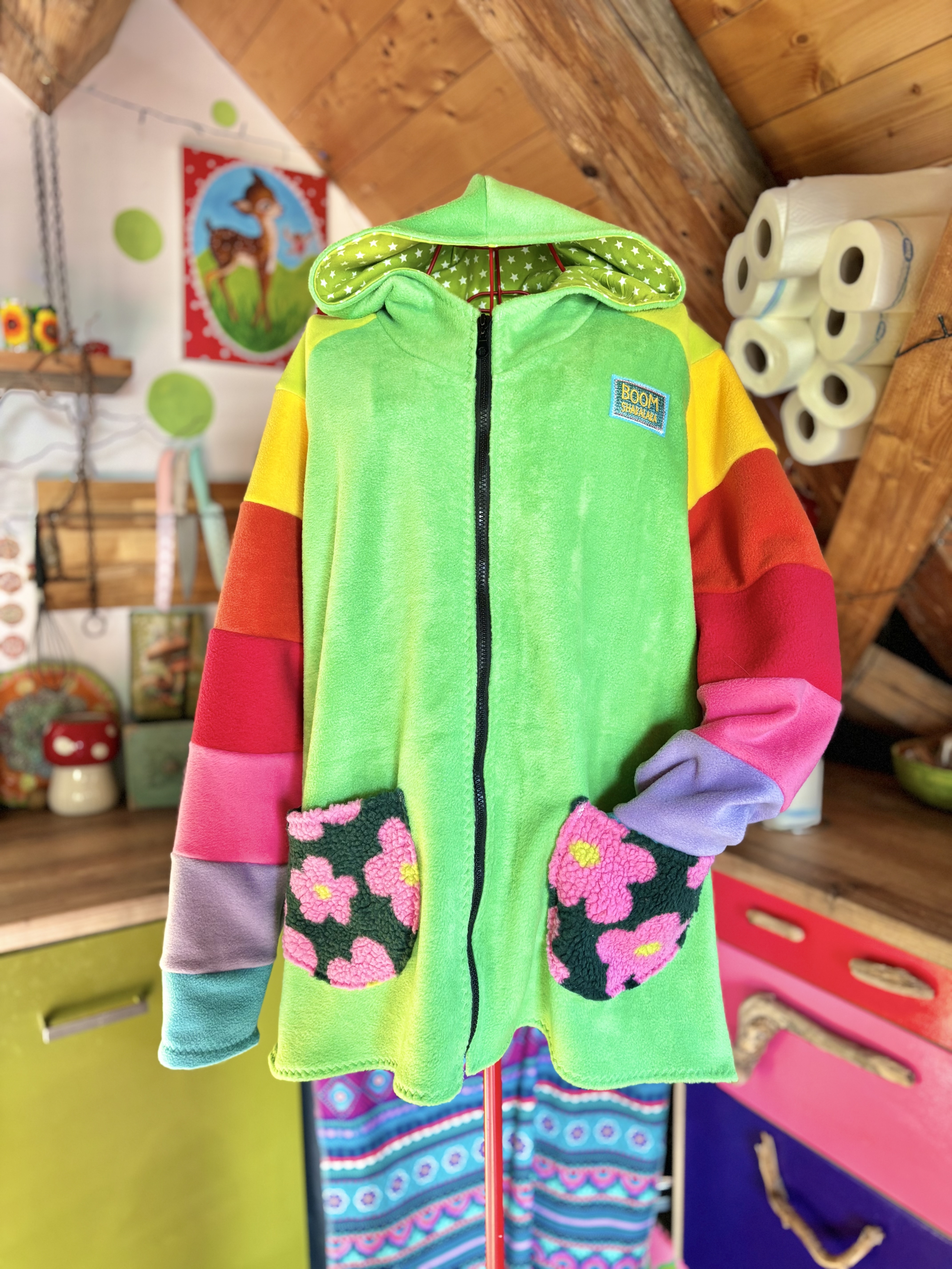 Mit viel Liebe genähte Jacke aus Fleecestoff.
