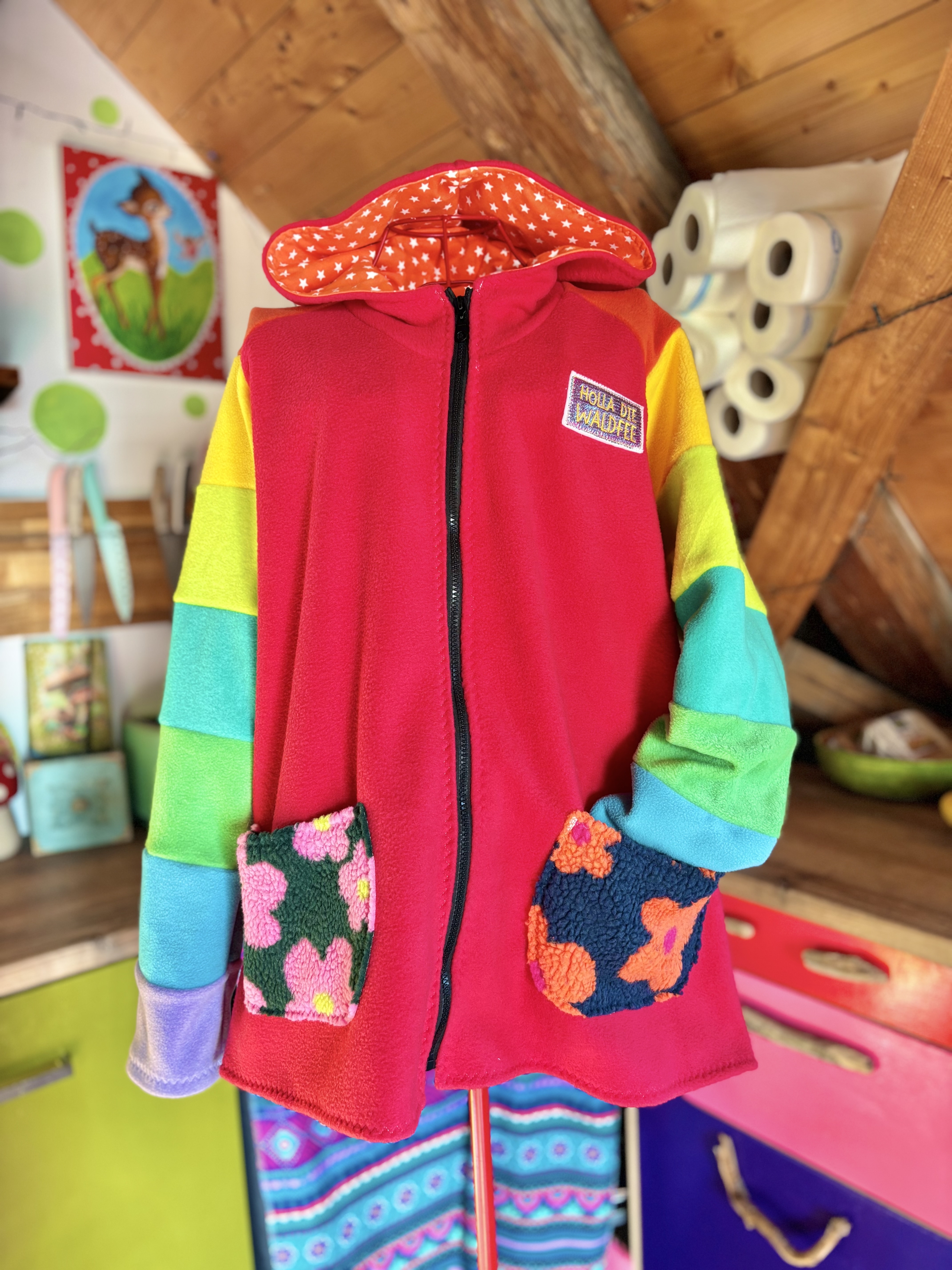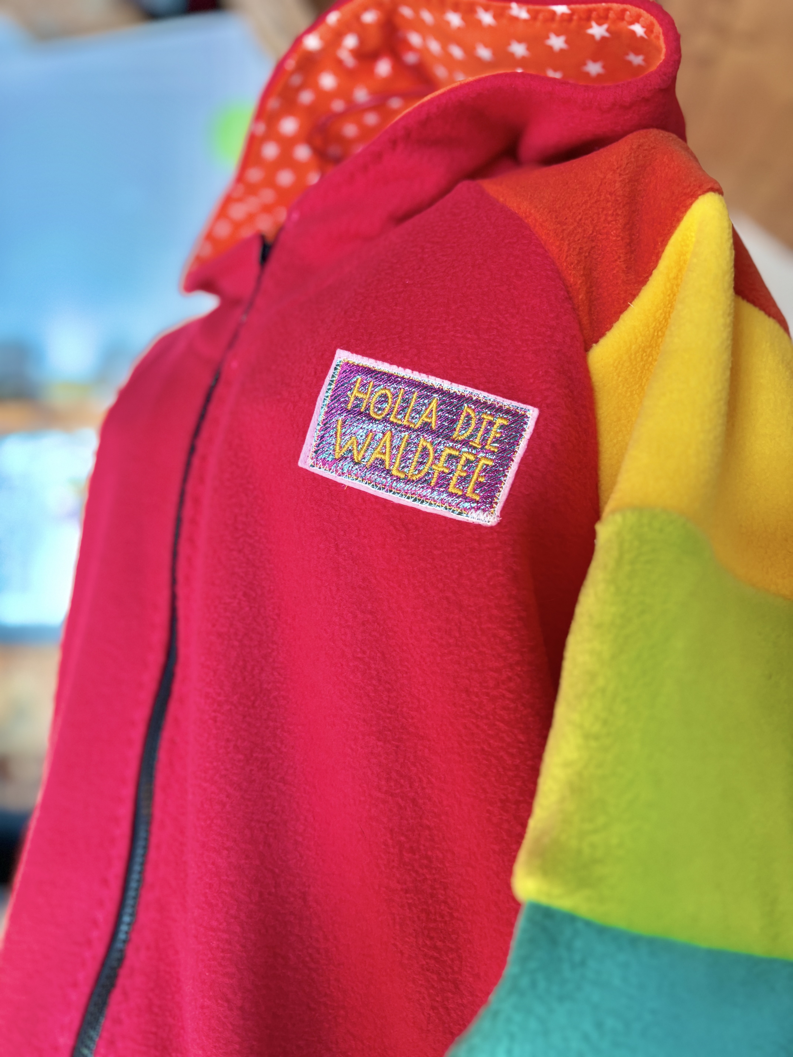 Mit viel Liebe genähte Jacke aus Fleecestoff.