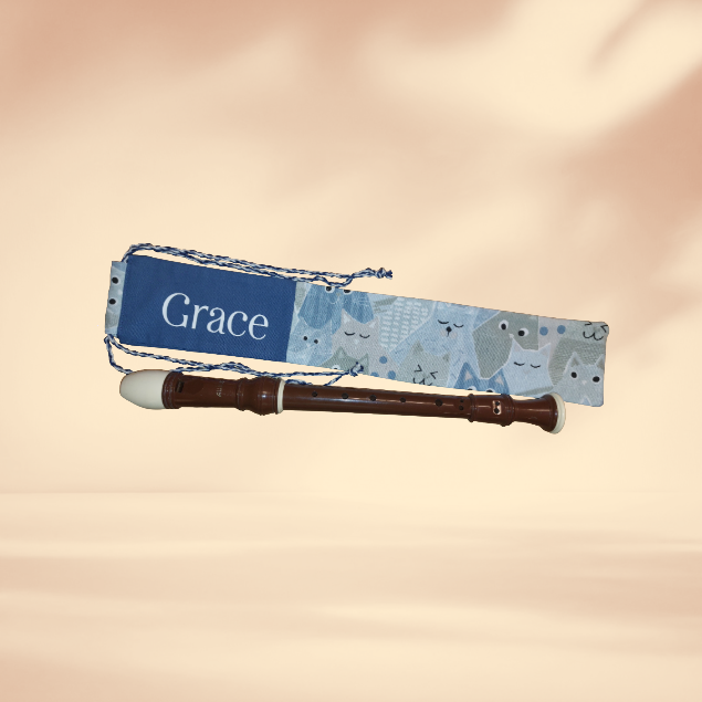 Flötentasche mit Namen, Flötenbeutel - Katzen blau braun