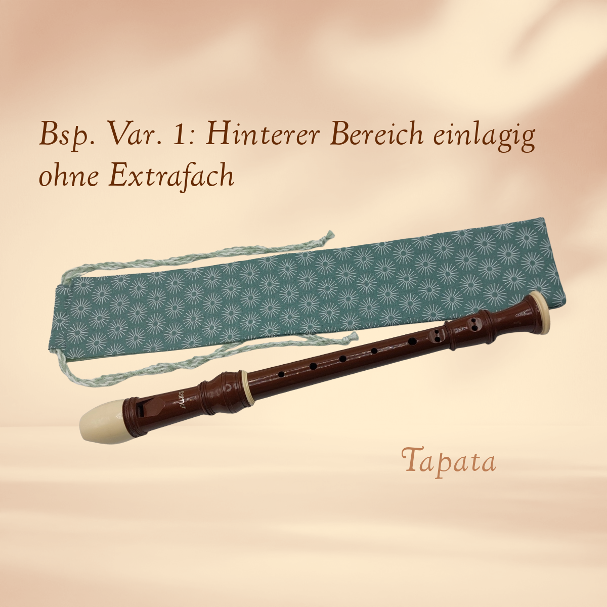 * Variante 2: Einlagige Flötentasche mit 1 Zubehörfach, Größe: Länge ca. 38 cm, Breite ca. 7 cm. Auf der Rückseite bietet ein zusätzliches Fach (ca. 24 cm lang) Platz für Zubehör wie Wischerstab, Mikrofaserwischer oder Zapfenfett.
