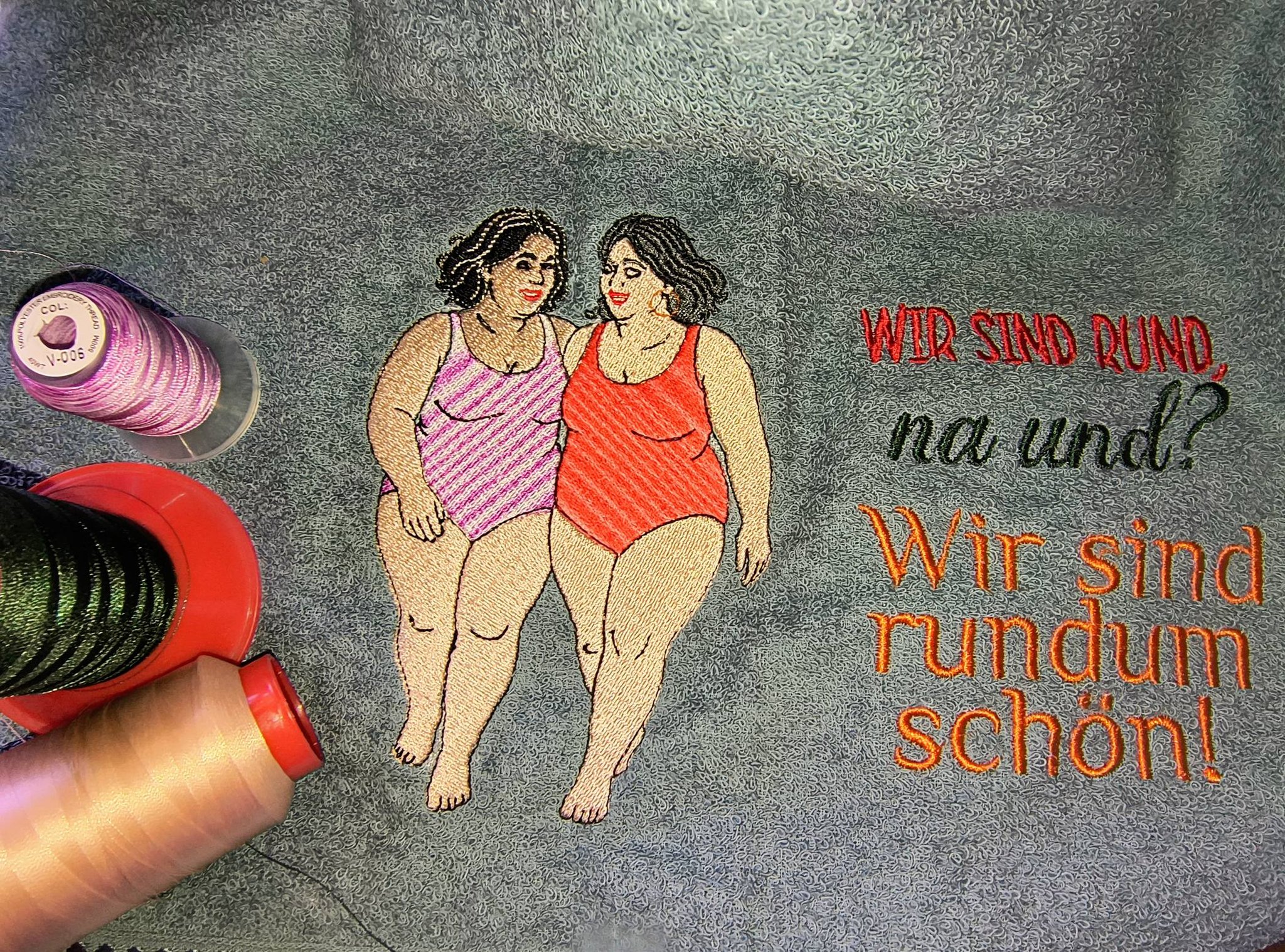 Stickdatei „Freundinnen - Wir sind rund, na und? Wir sind rundum schön“