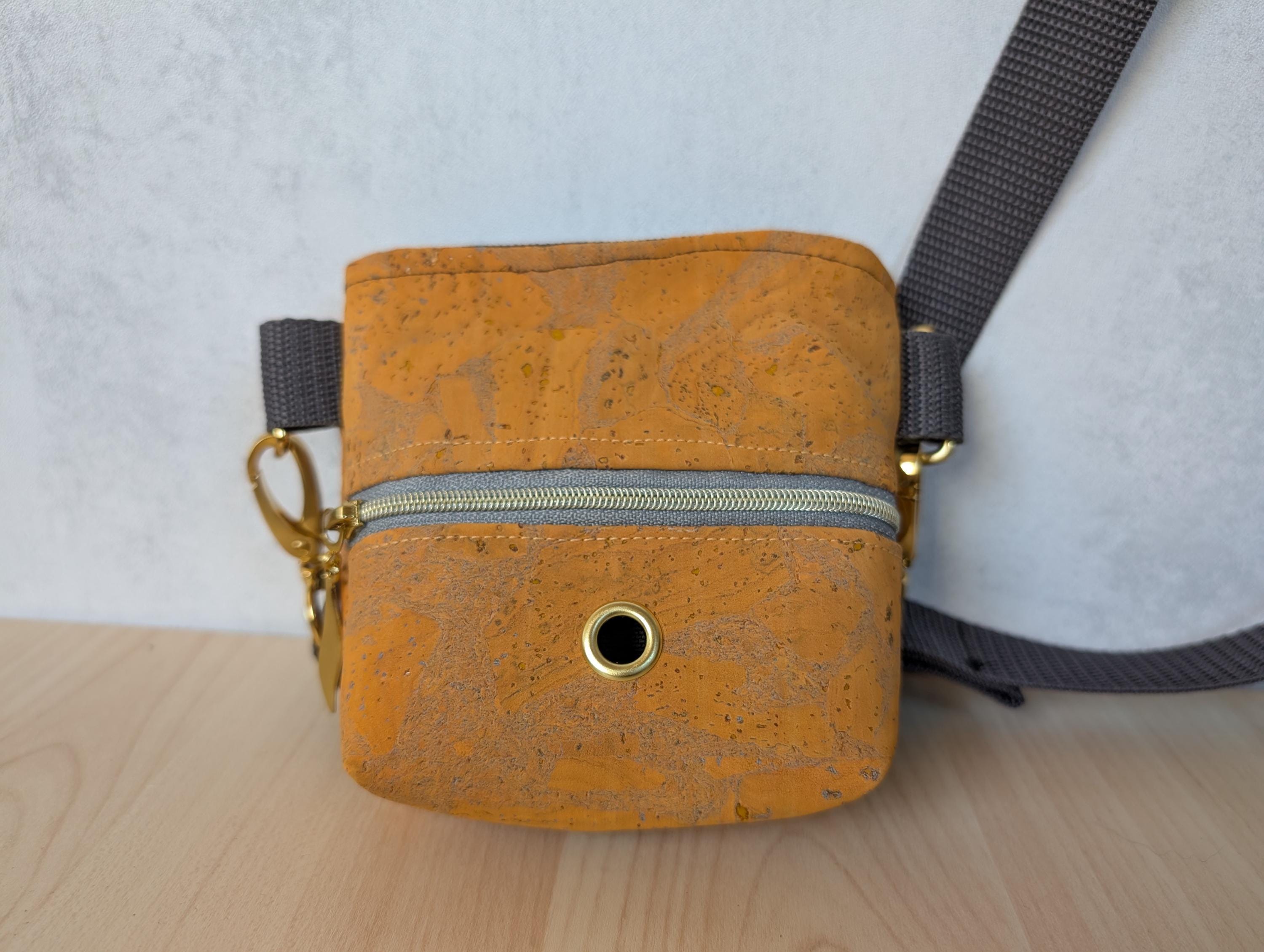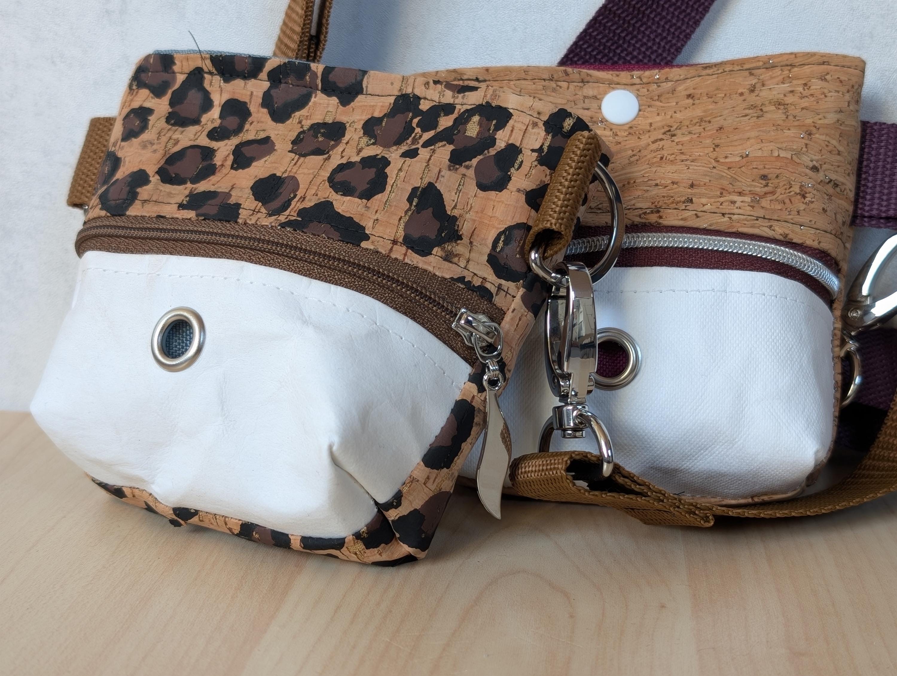 Kleine Tasche aus Kork oder Kunstleder mit einigen Varianten. Innenstoff ist ein robuster Outdoorstoff (nicht lebensmittelgeeignet für Menschen).