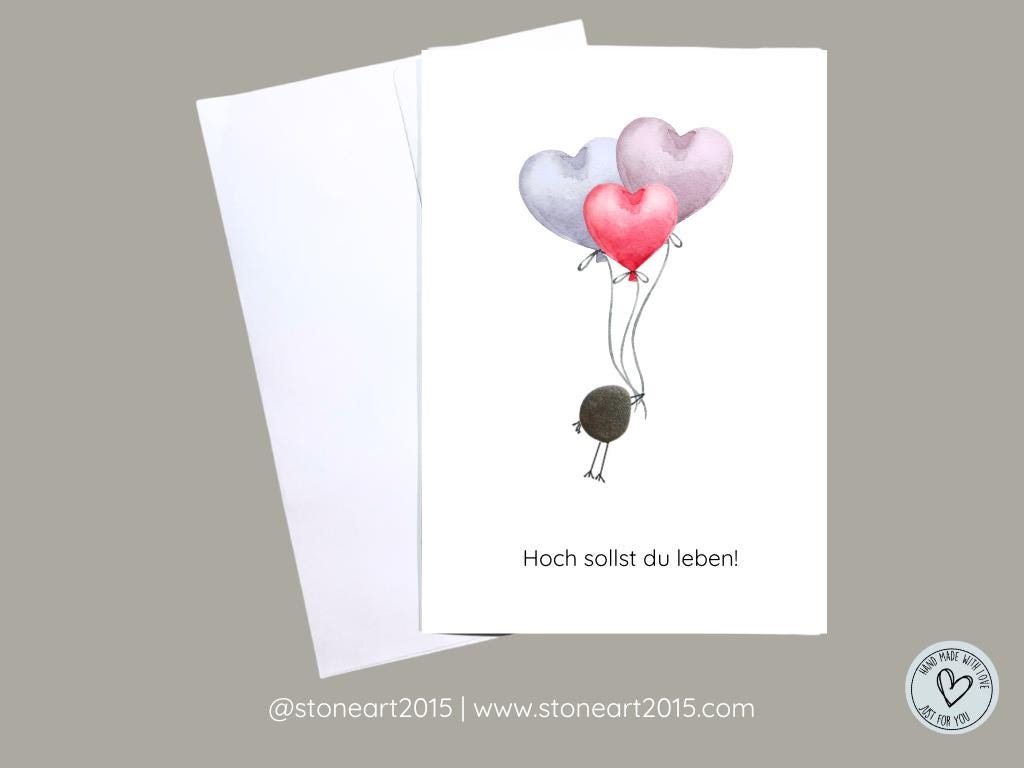 Allgemeine Informationen zur Grusskarte & Versand Ein echtes Unikat - handgefertigt nach deiner Bestellung. Echte Kieselsteine werden von Hand auf die Karte aufgebracht und bilden das Herzstueck des Motivs. Der restliche Hintergrund ist gedruckt und einzelne Details sind von Hand gezeichnet. Bei einigen Motiven ergaenzen getrocknete Blumen das Bild. Personalisierung: Teile mir deine Wuensche - z. B. Namen, Daten oder einen persoenlichen Text - beim Checkout im Nachrichtenfeld oder per Nachricht mit. Ich setze deine Vorstellungen gerne um, soweit es machbar ist.
