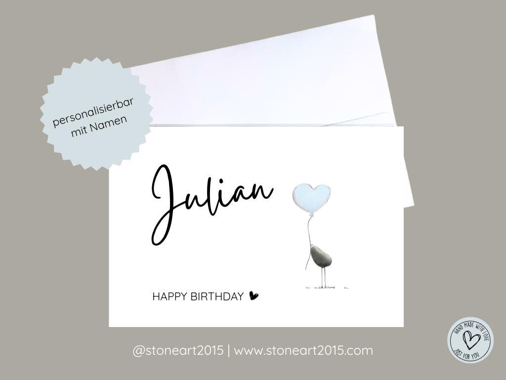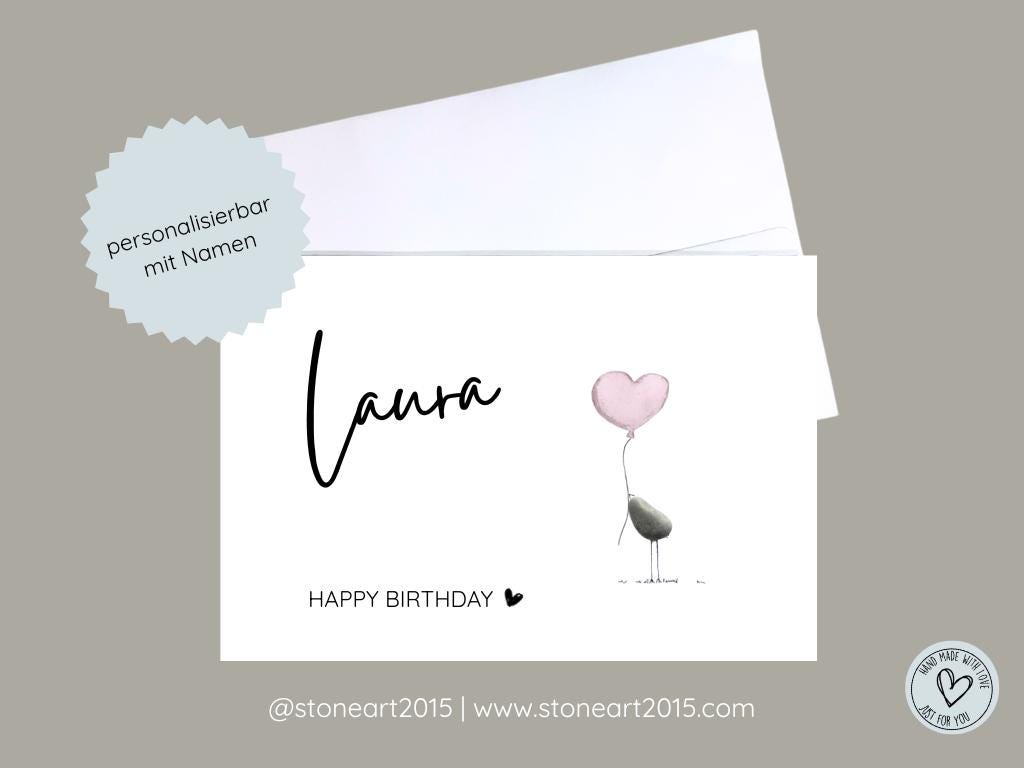 Allgemeine Informationen zur Grusskarte & Versand Ein echtes Unikat - handgefertigt nach deiner Bestellung. Echte Kieselsteine werden von Hand auf die Karte aufgebracht und bilden das Herzstueck des Motivs. Der restliche Hintergrund ist gedruckt und einzelne Details sind von Hand gezeichnet. Bei einigen Motiven ergaenzen getrocknete Blumen das Bild. Personalisierung: Teile mir deine Wuensche - z. B. Namen, Daten oder einen persoenlichen Text - beim Checkout im Nachrichtenfeld oder per Nachricht mit. Ich setze deine Vorstellungen gerne um, soweit es machbar ist.