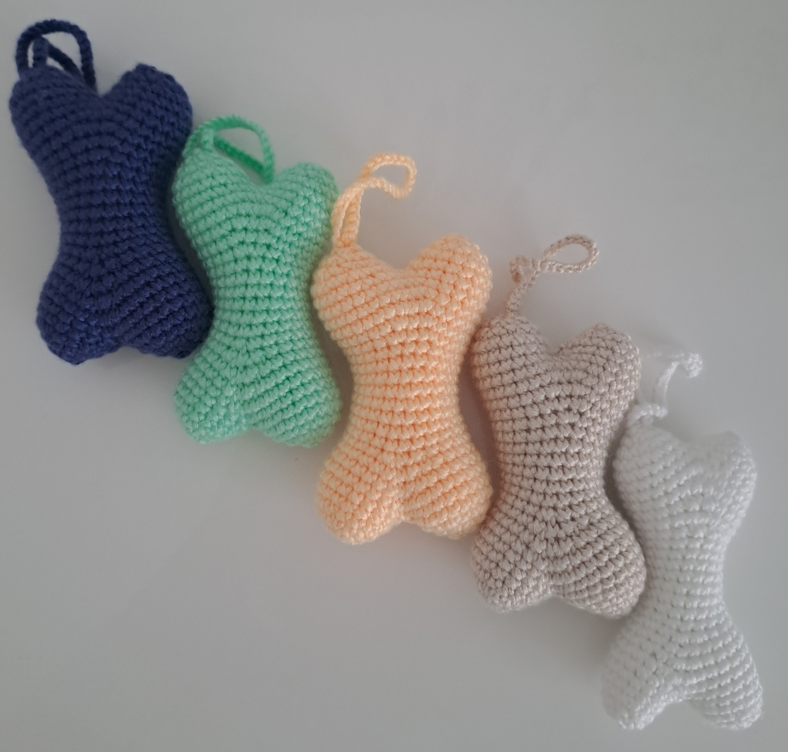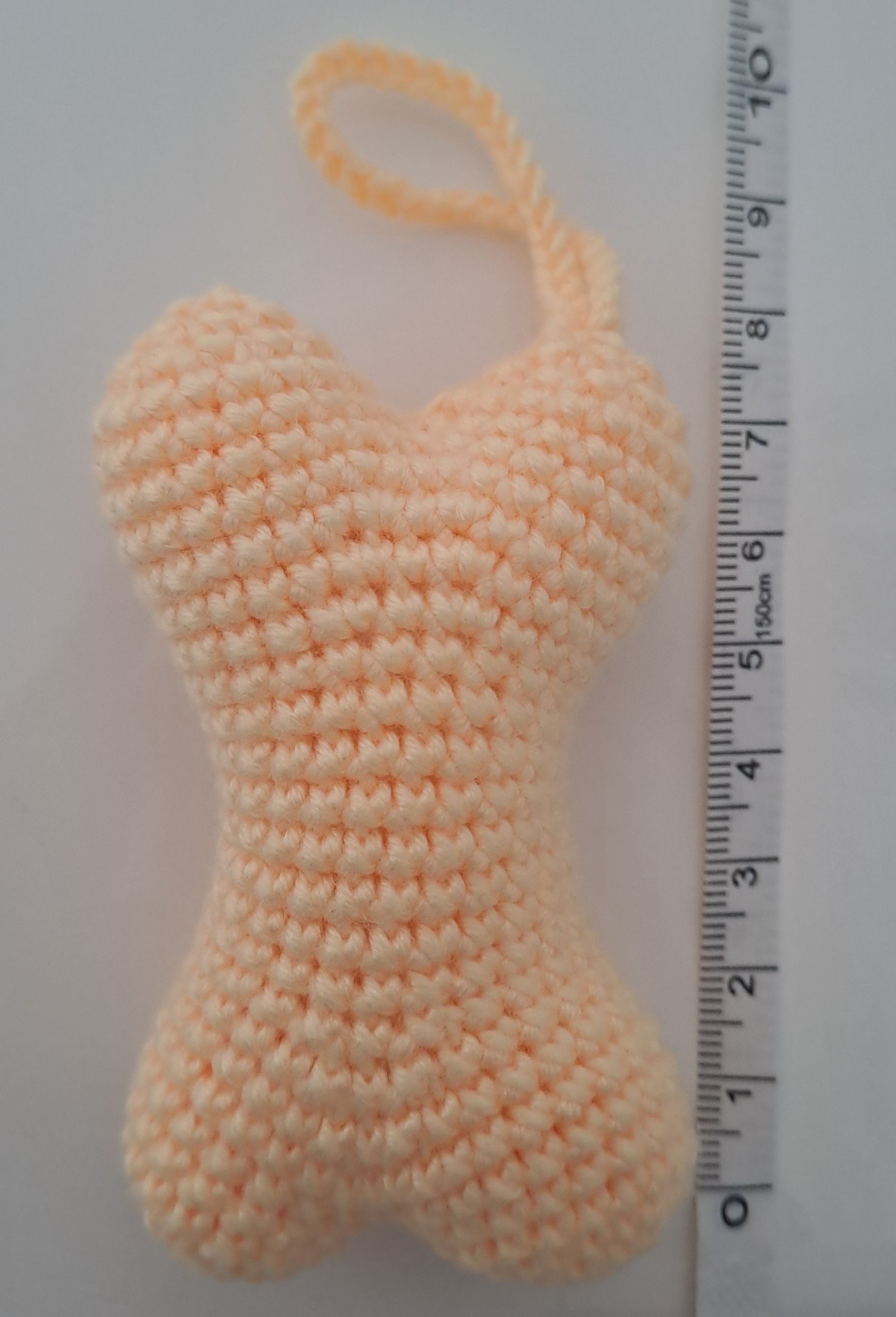 Dieser gehäkelte Schlüsselanhänger in Knochenform ist ausschließlich als dekoratives Accessoire gedacht. Es handelt sich nicht um ein Spielzeug.