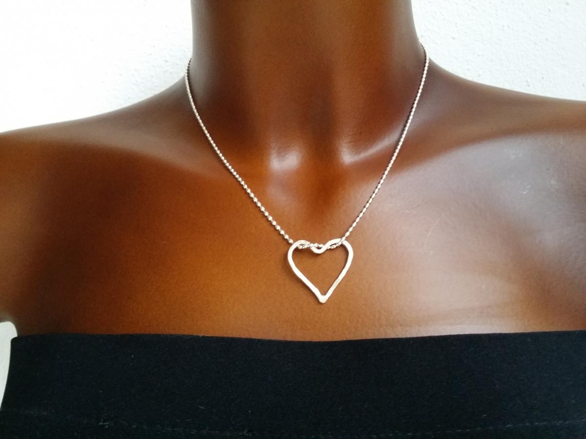 ♥♥ Gehämmertes Herz Kette seitlich 925 Silber ♥♥