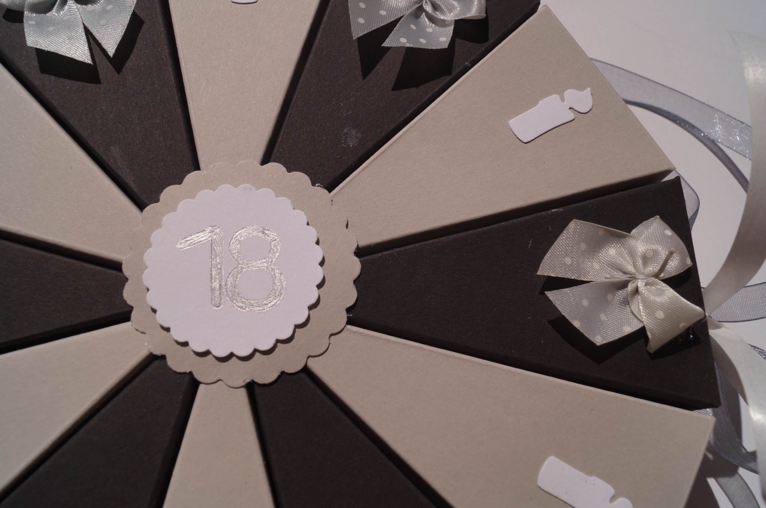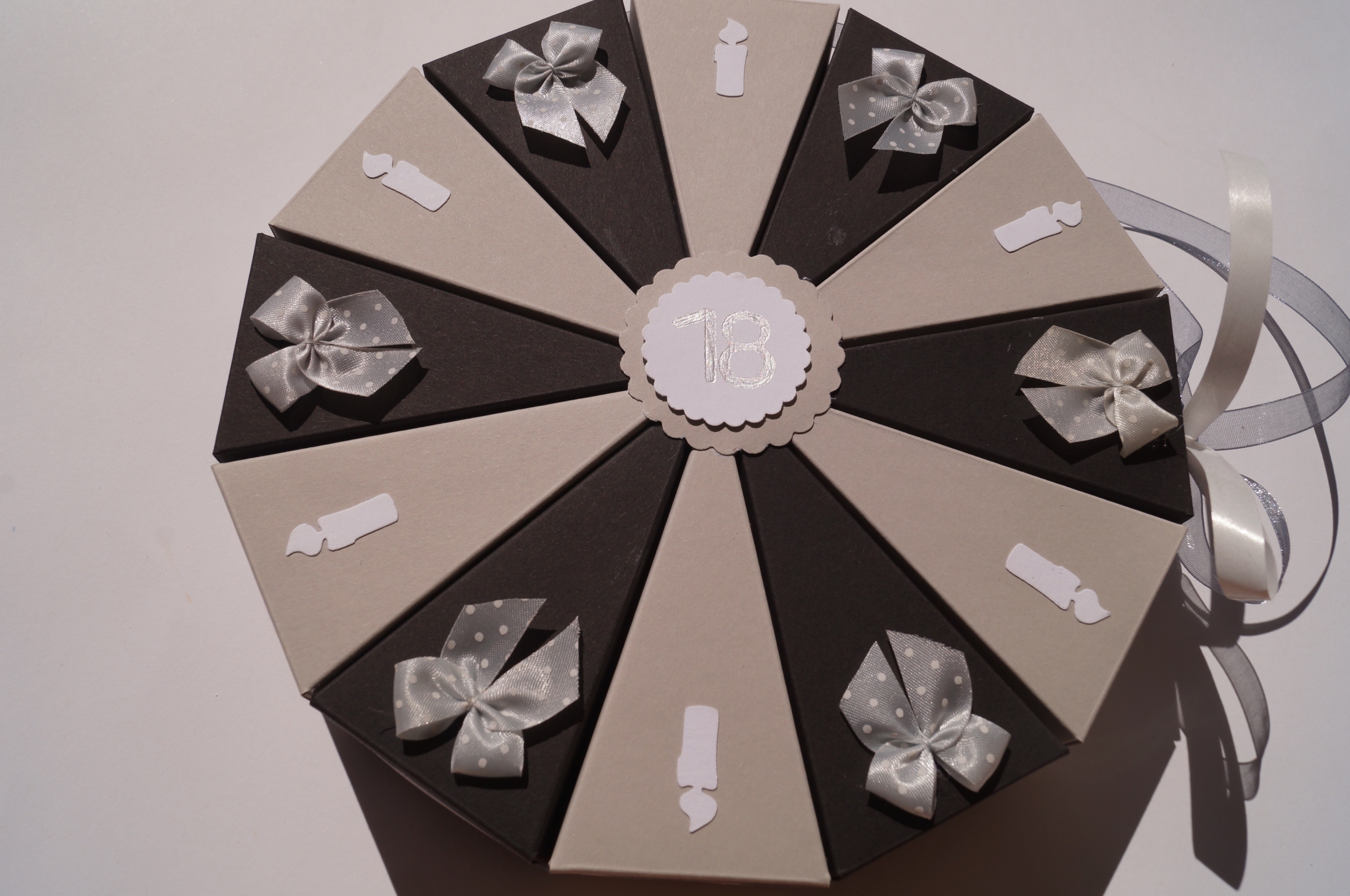 Es ist mit der Schleife zusammengebunden, einfach aufmachen und dann können die einzelnen Schachteln geöffnet werden.