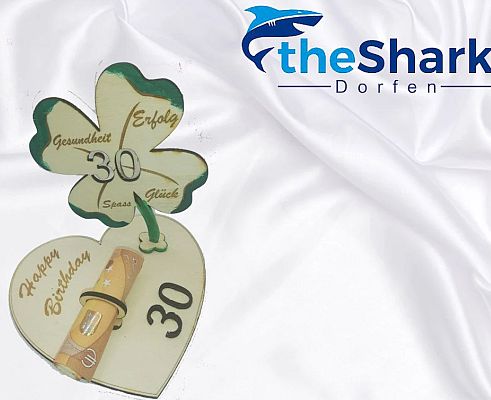Glückskleeblatt mit Geburtstagswünschen - Ausgeschnittener Jahreszahl - und Geldscheinhalter