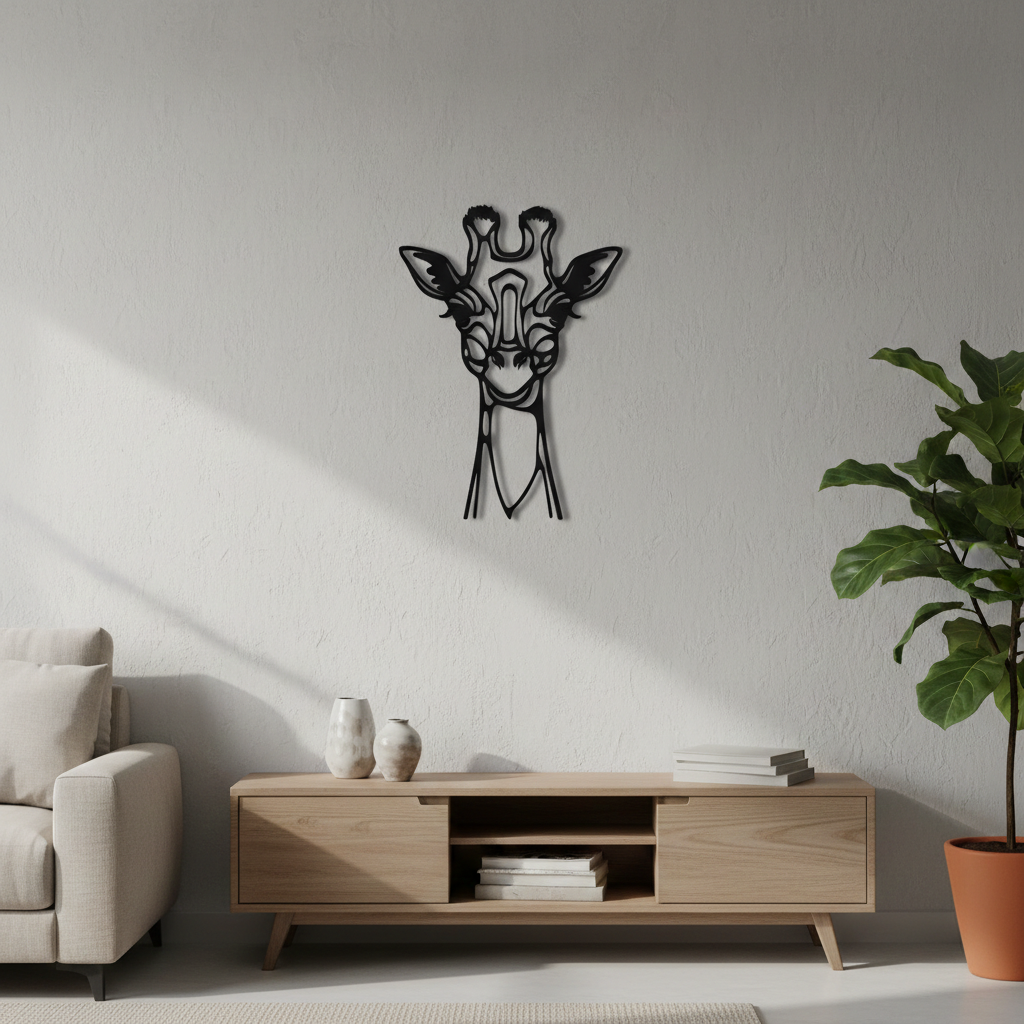 Ein markantes Wandhighlight: Das Giraffenkopf-Wandbild zieht alle Blicke auf sich und verleiht jedem Raum eine warme, stilvolle Note. Ideal für Wohnzimmer, Schlafzimmer, Kinderzimmer oder Büro.