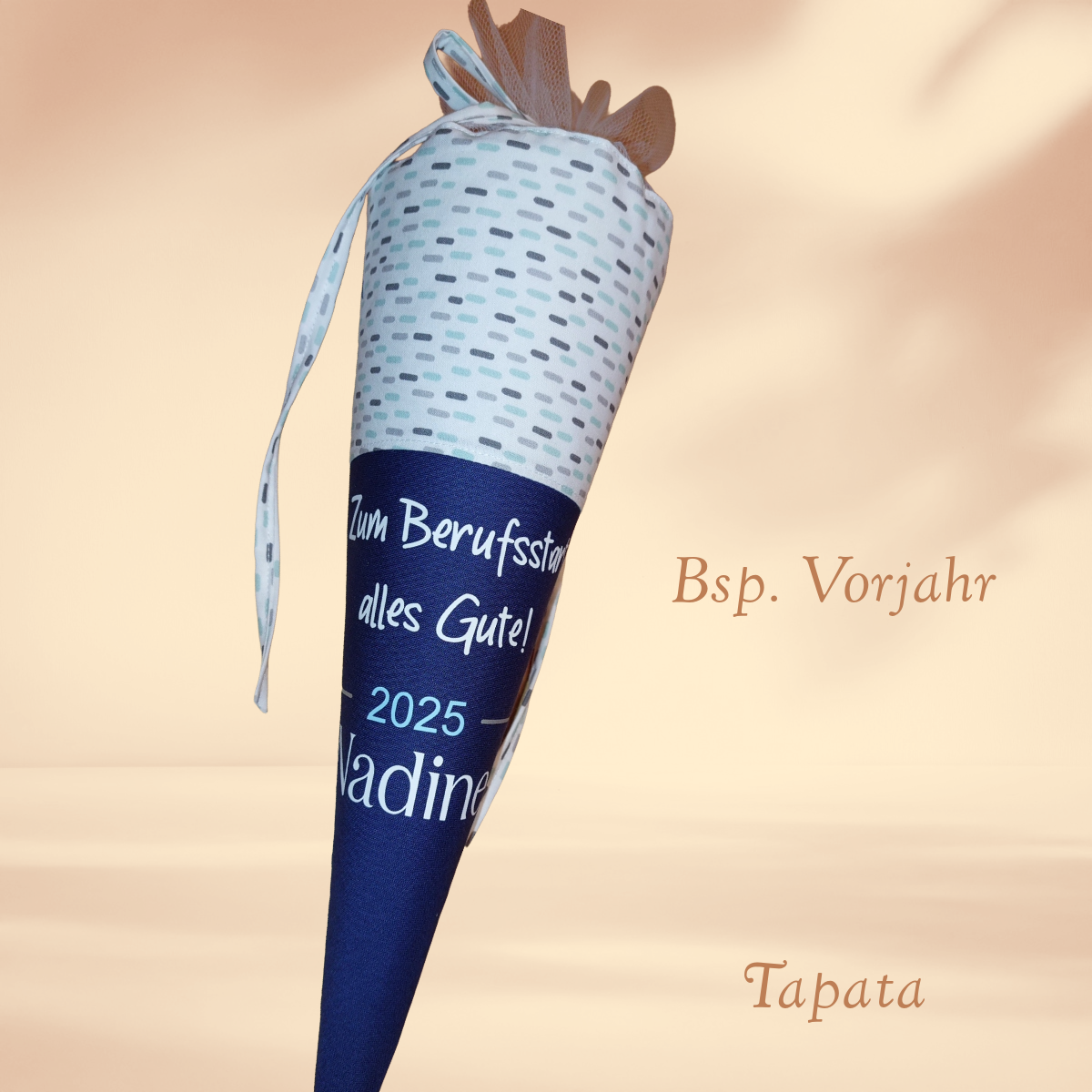 ➡ Standardmäßig wird folgender Spruch angebracht: "Zum Berufsstart alles Gute!" mit aktueller Jahreszahl. Name optional.