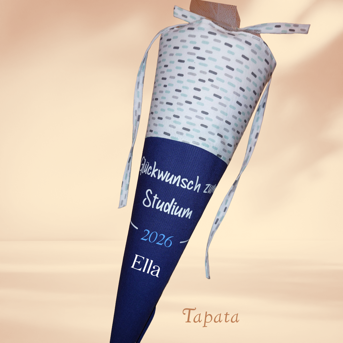 Angeboten wird eine kleine Schultüte mit einem passenden Spruch zum Studium, Studium Abschluss oder Berufsstart.
