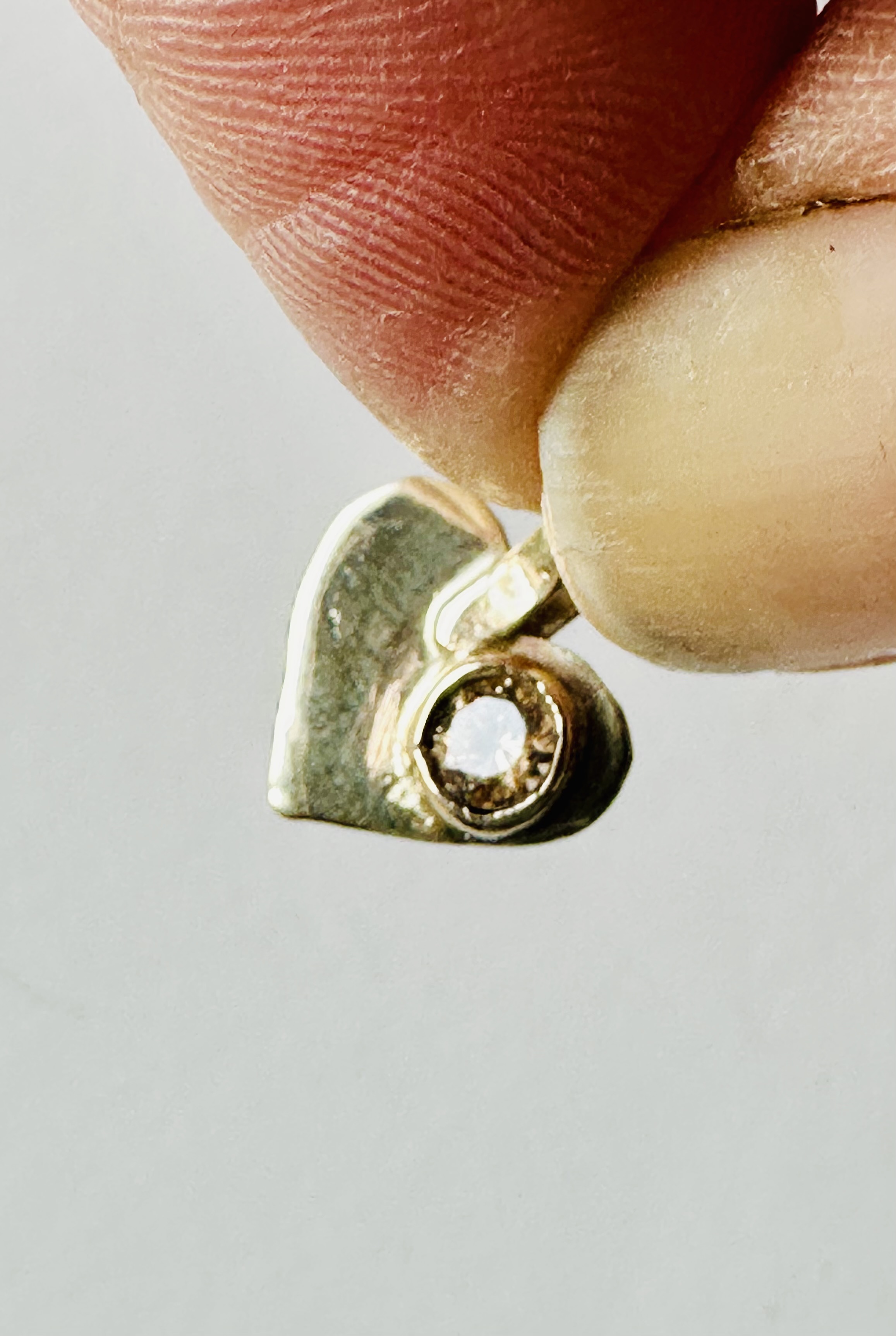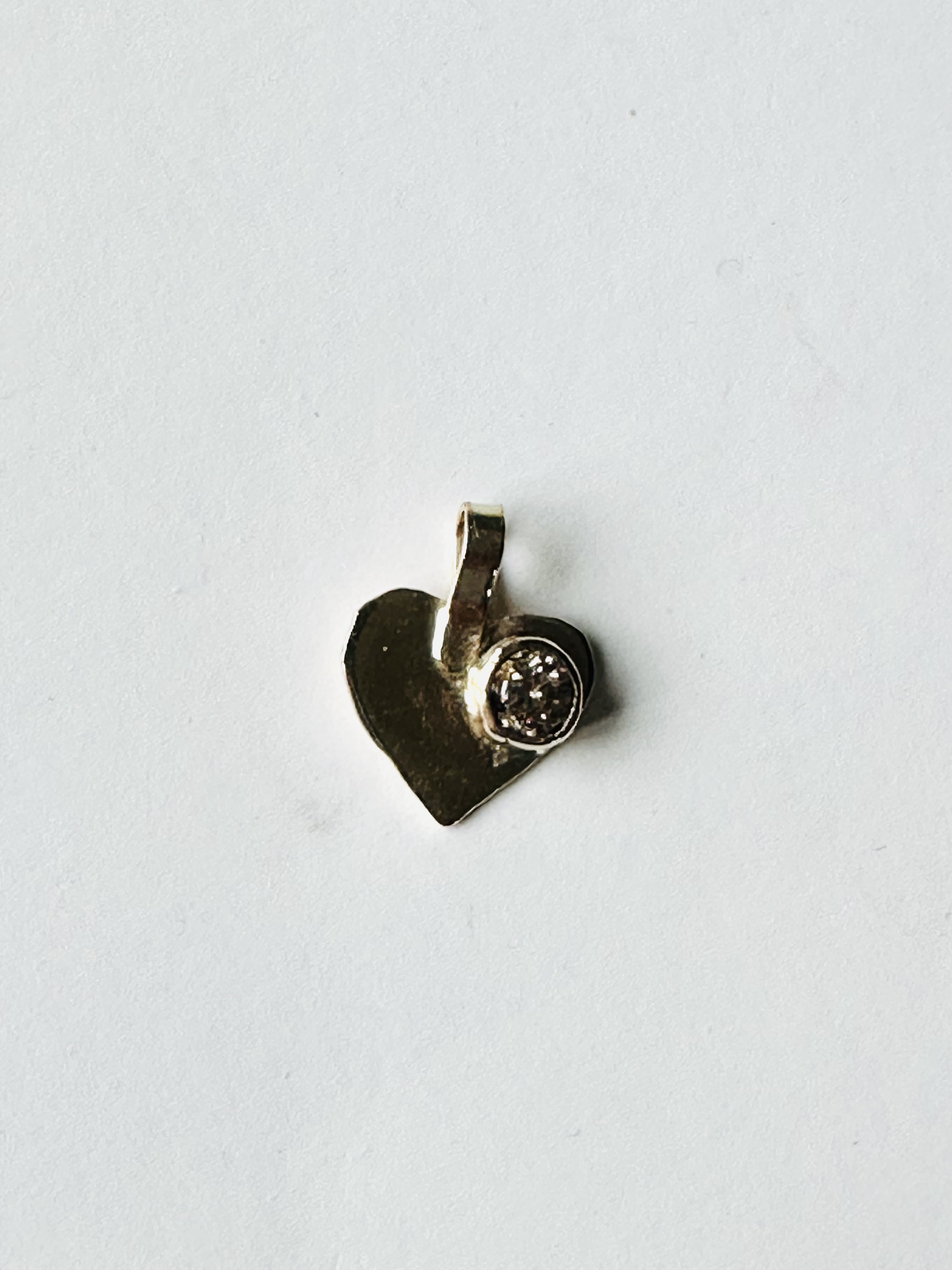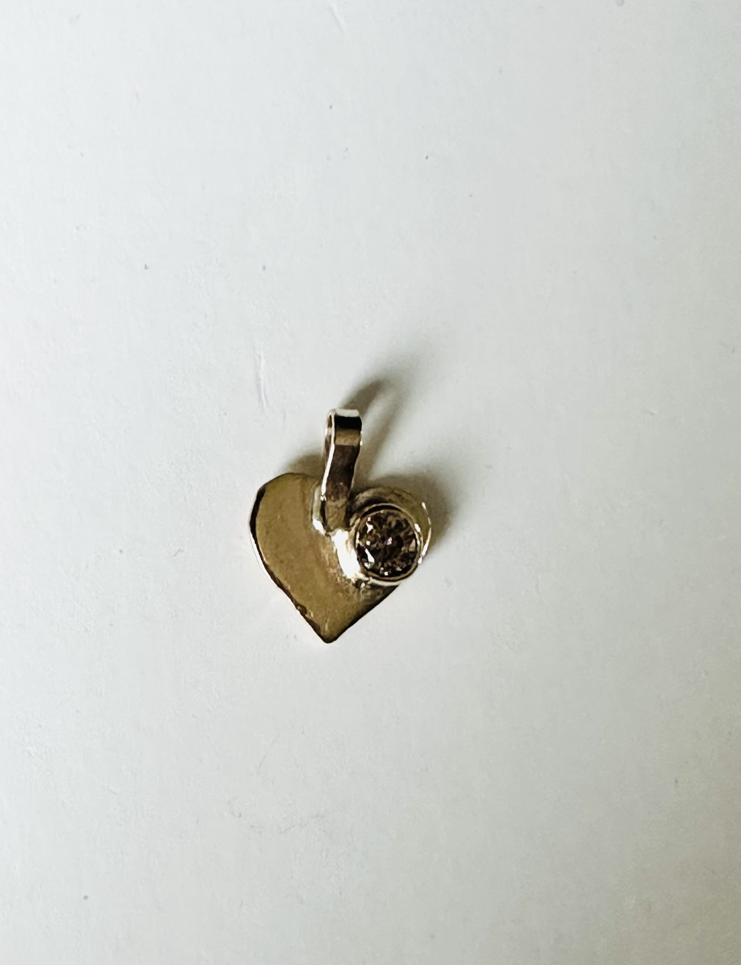 Da Herz habe ich aus einem 0,7 mm starken 333er Goldblech gesägt. Auf einer Seite ist ein 4mm großer Cubic Zirkonia, champangnerfarben, in Gold gefasst. Auch die Anhängerschlaufe ist aus Gold. Die Oberfläche des Herzchens ist glänzend poliert. Auf Wunsch kann eine Lasergravur (schwarz) auf der Vorder-oder Rückseite angebracht werden, max. 2 Initialen.