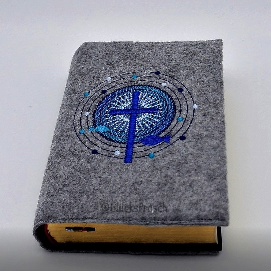 Die Gotteslobhülle habe ich aus grauem Filz gearbeitet.