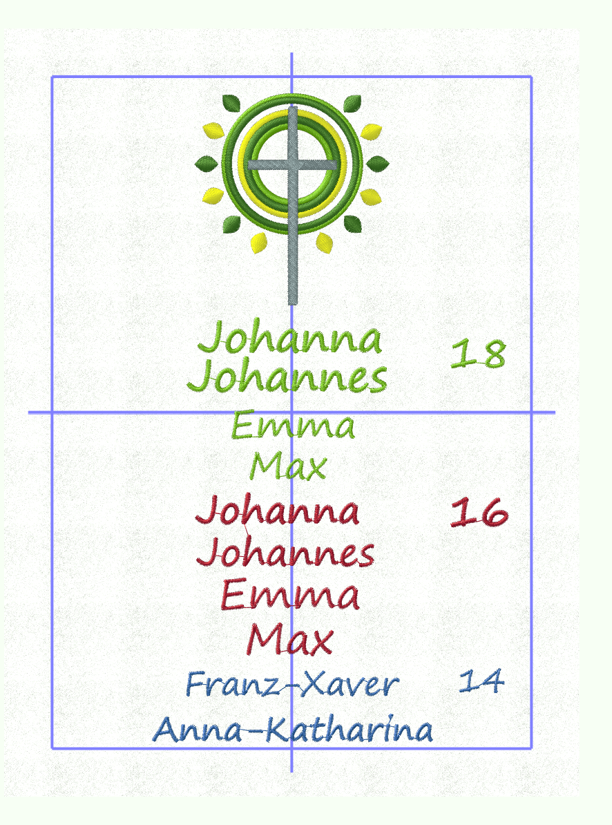 Es gibt die Möglichkeit, unter das Bild einen Namen zu sticken.