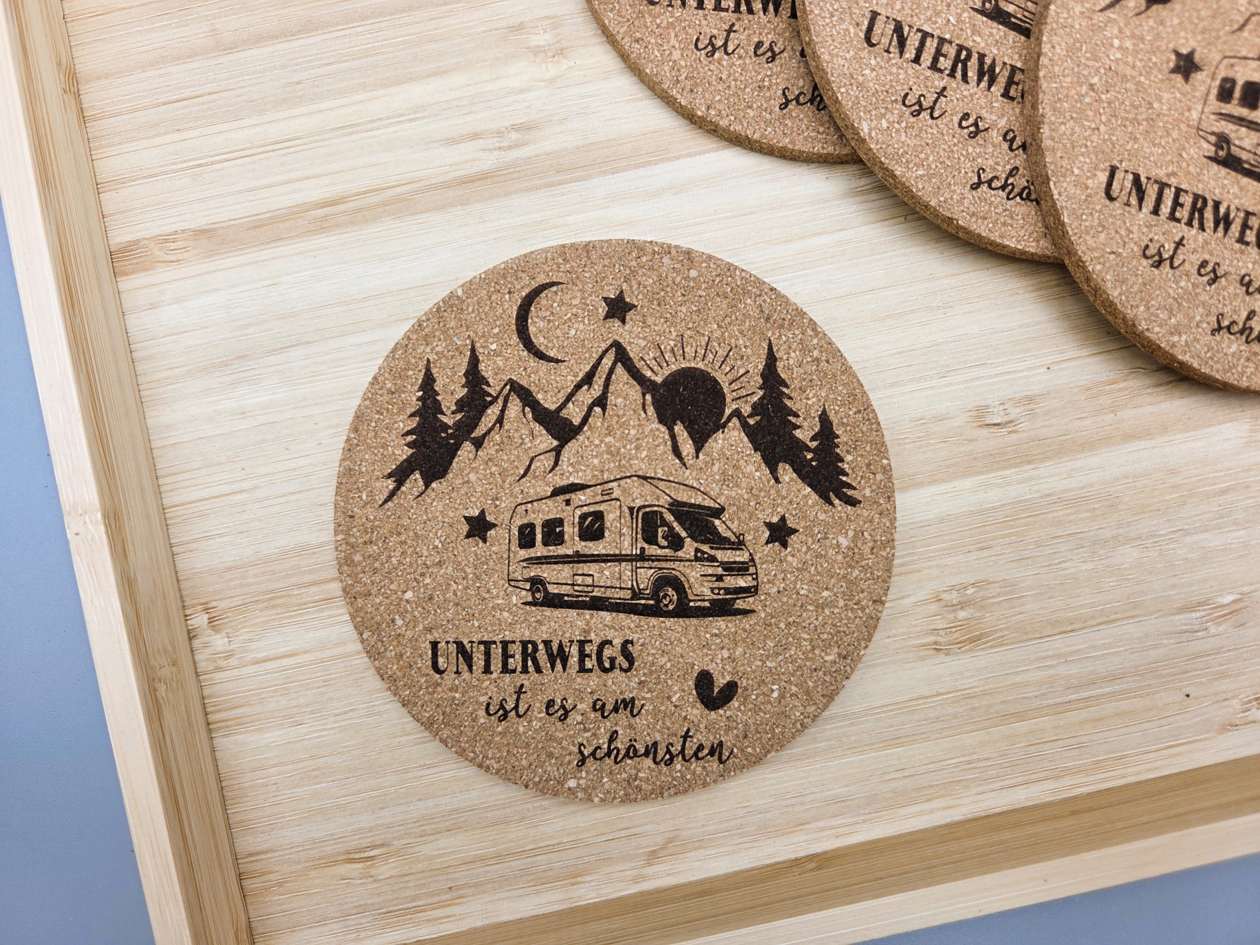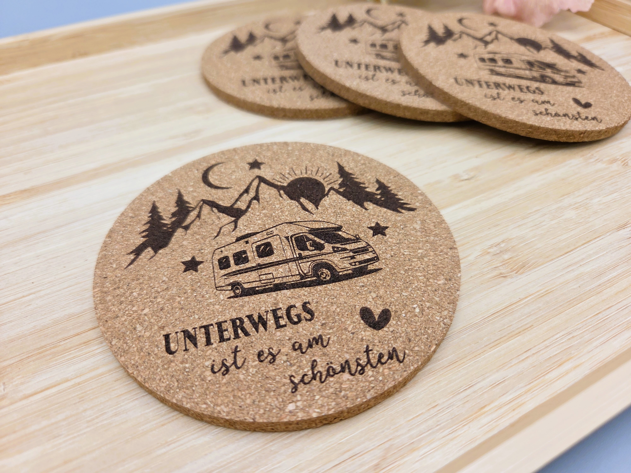 ~ Korkuntersetzer in der ausgewählten Menge inkl. Gravur - Motiv "CAMPER Wohnmobil"