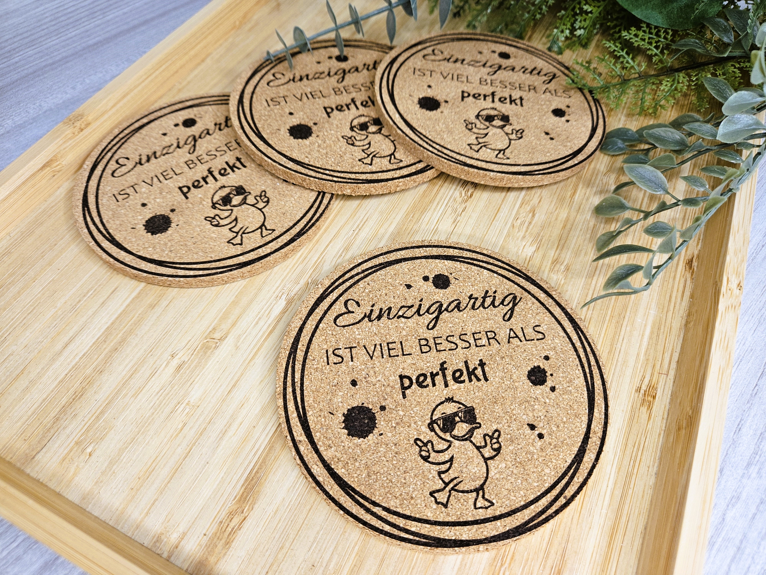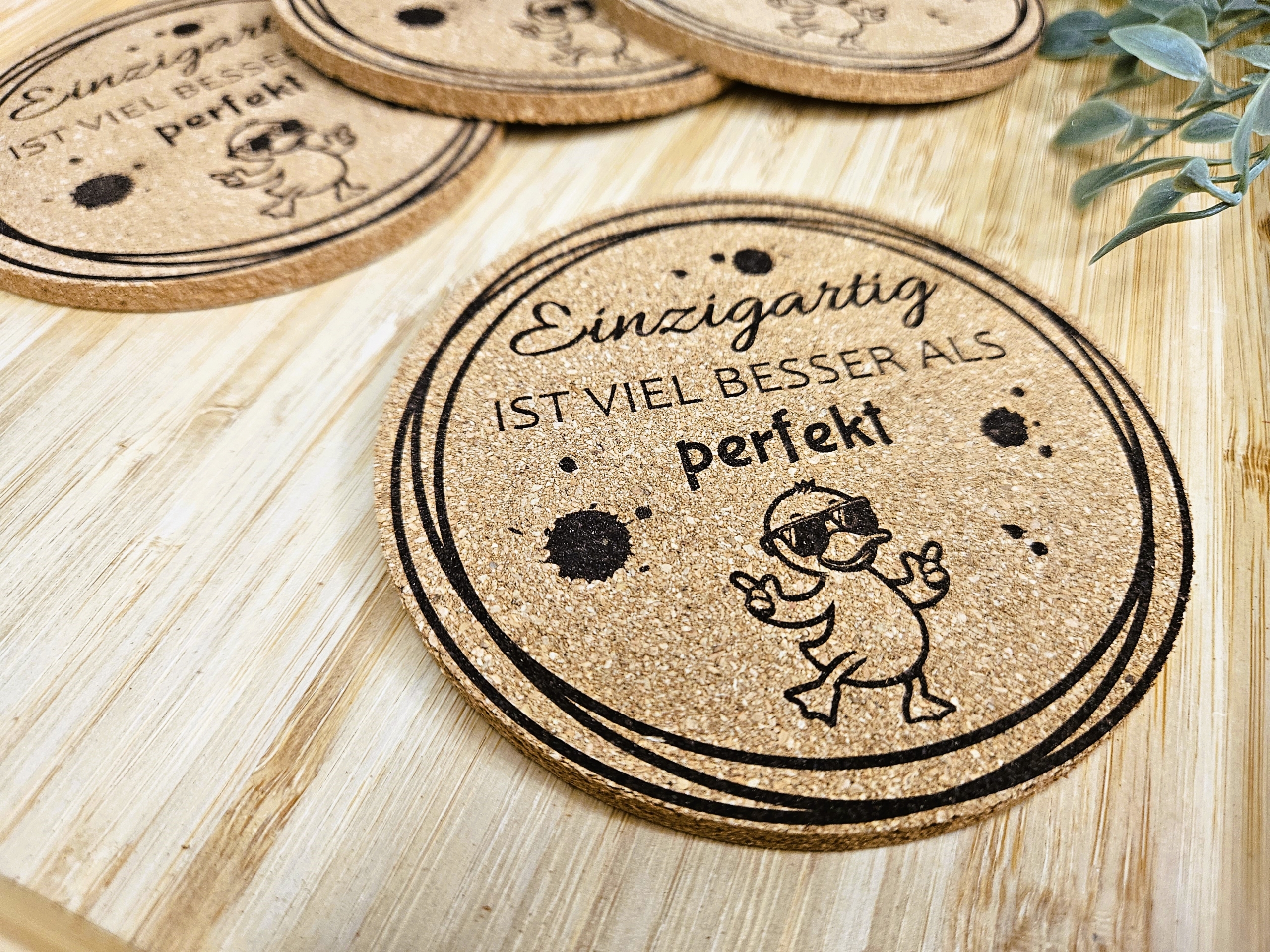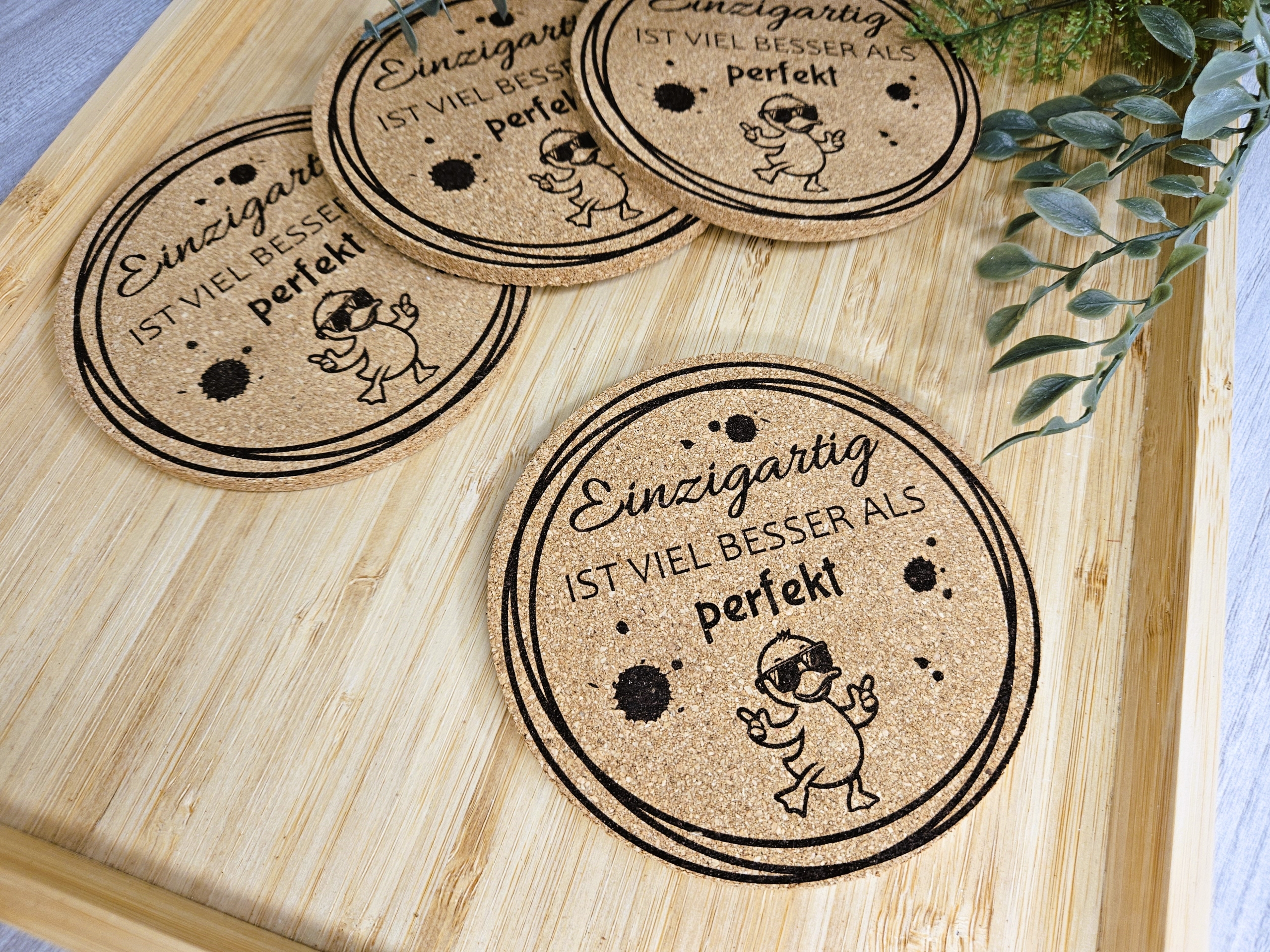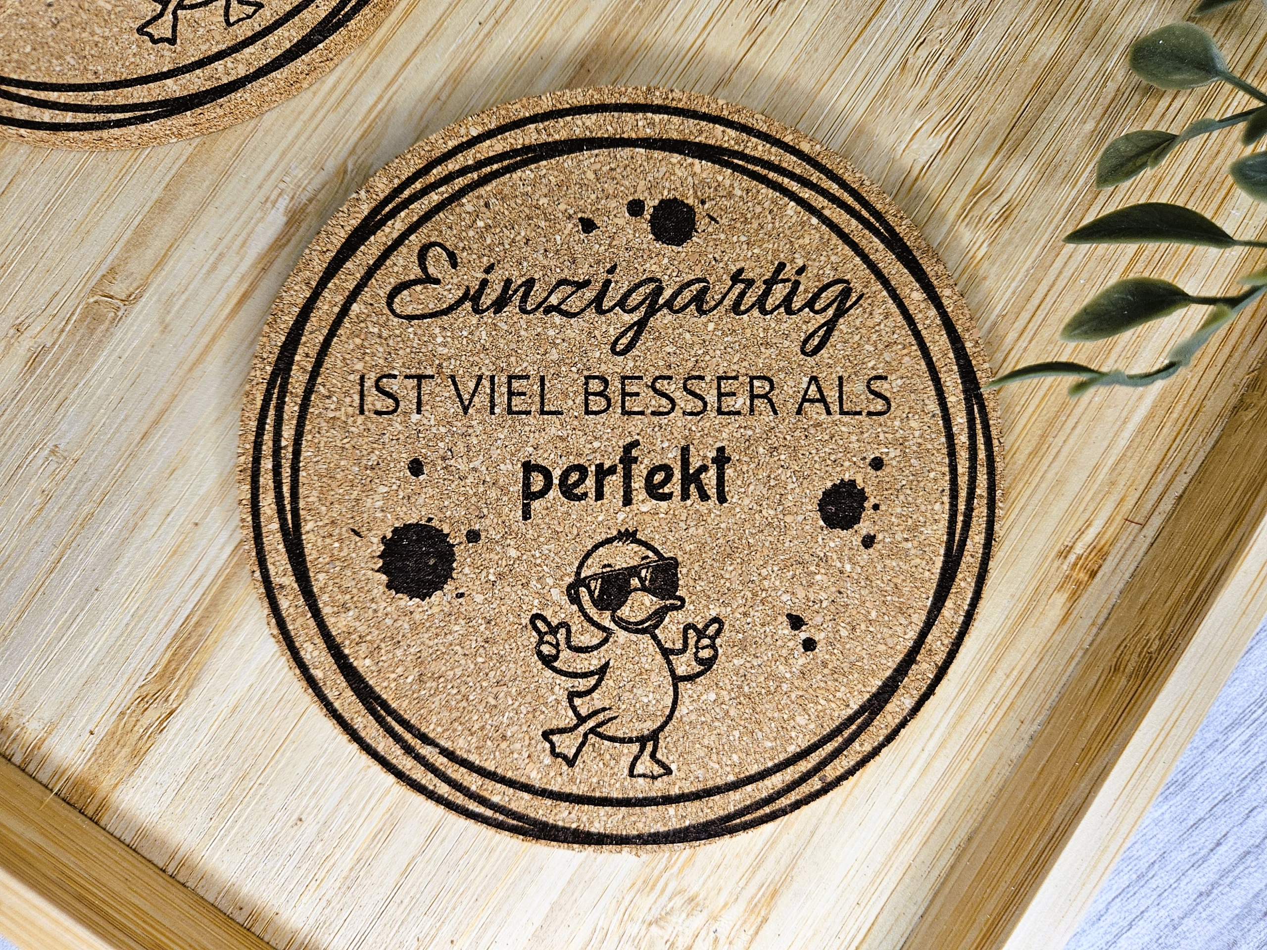 ~ ein Korkuntersetzer inkl. Gravur "Einzigartig ist besser als perfekt!"