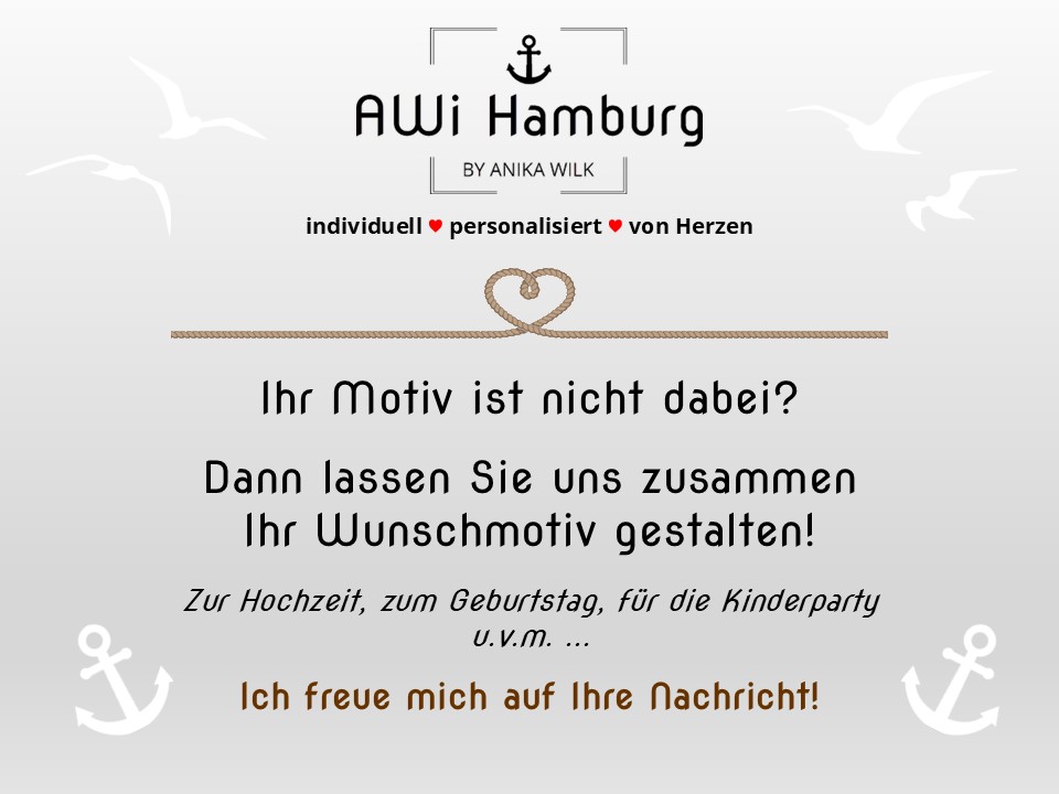 Du wünschst ein anderes Motiv? Zögere nicht mir zu schreiben und wir gestalten zusammen dein Wunschmotiv.