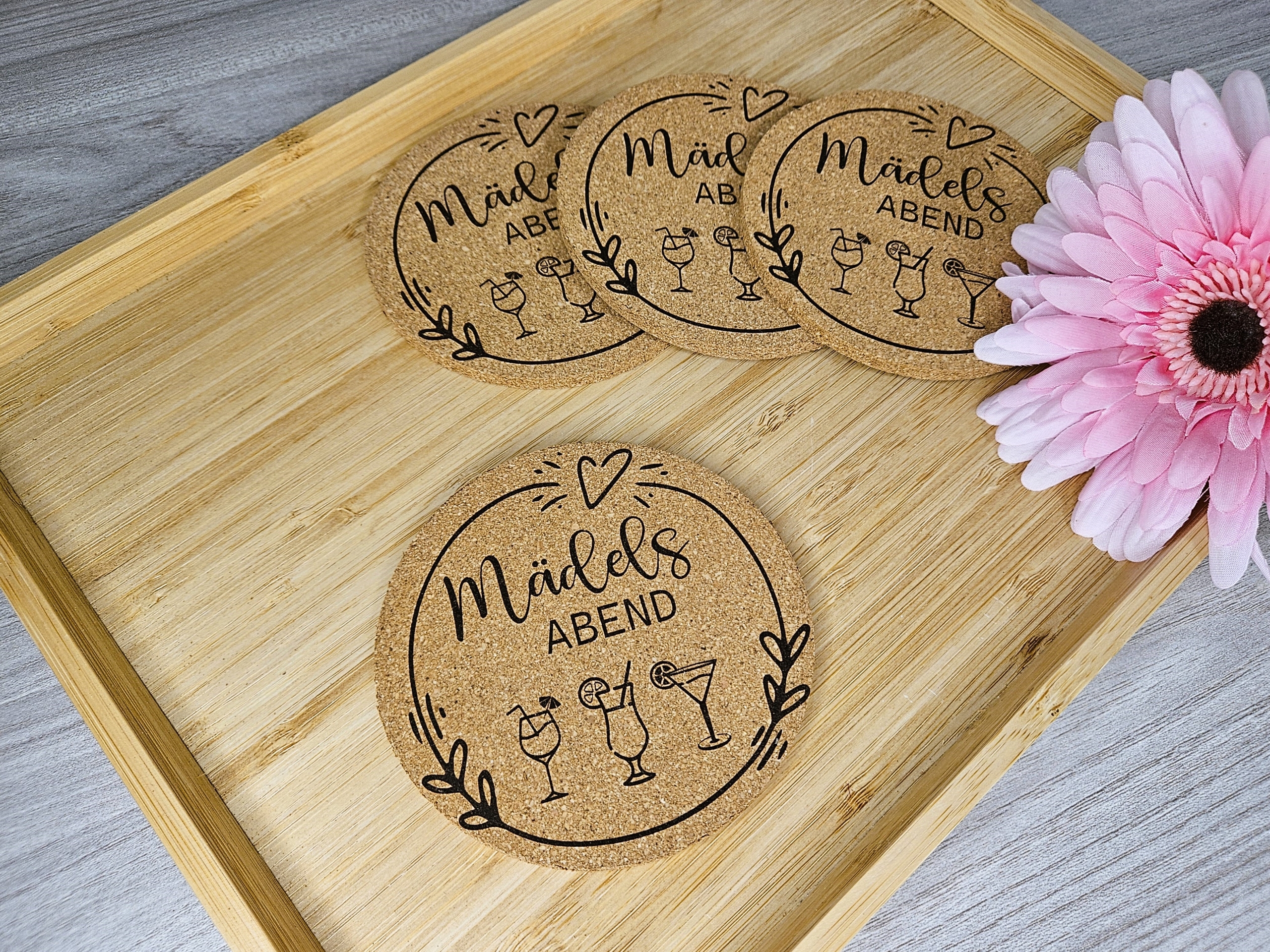 Gravierter Korkuntersetzer - Motiv "MädelsABEND"