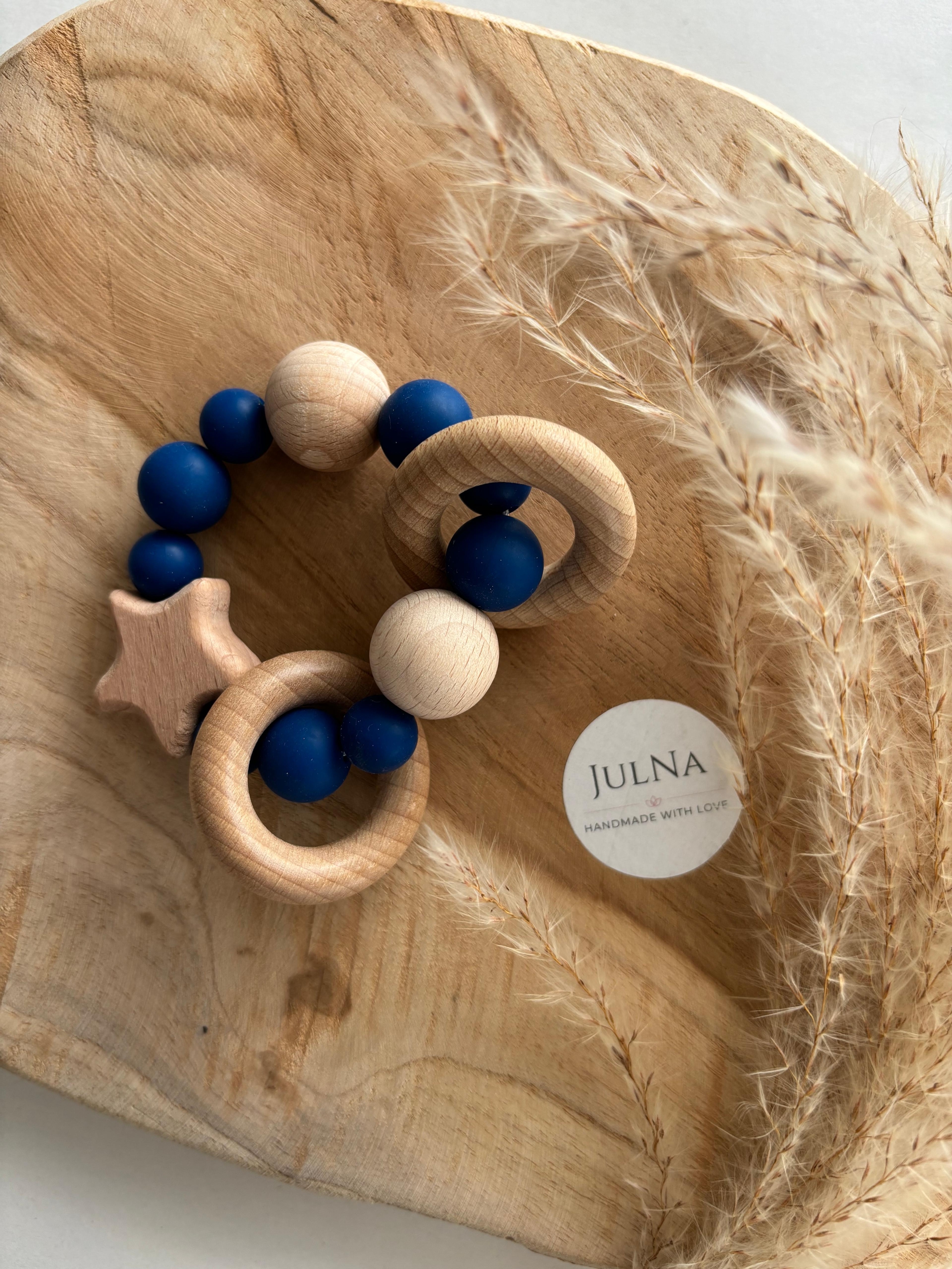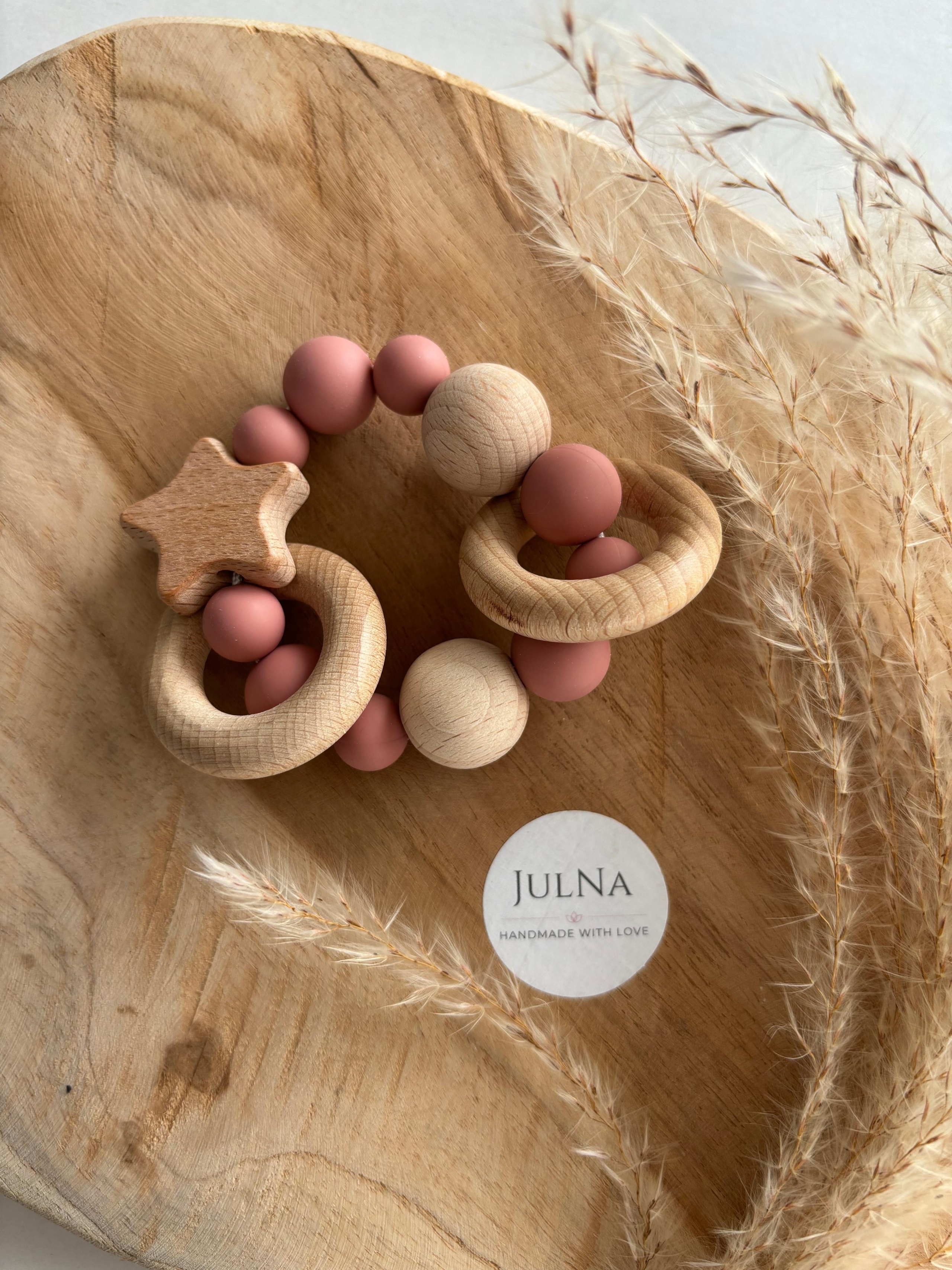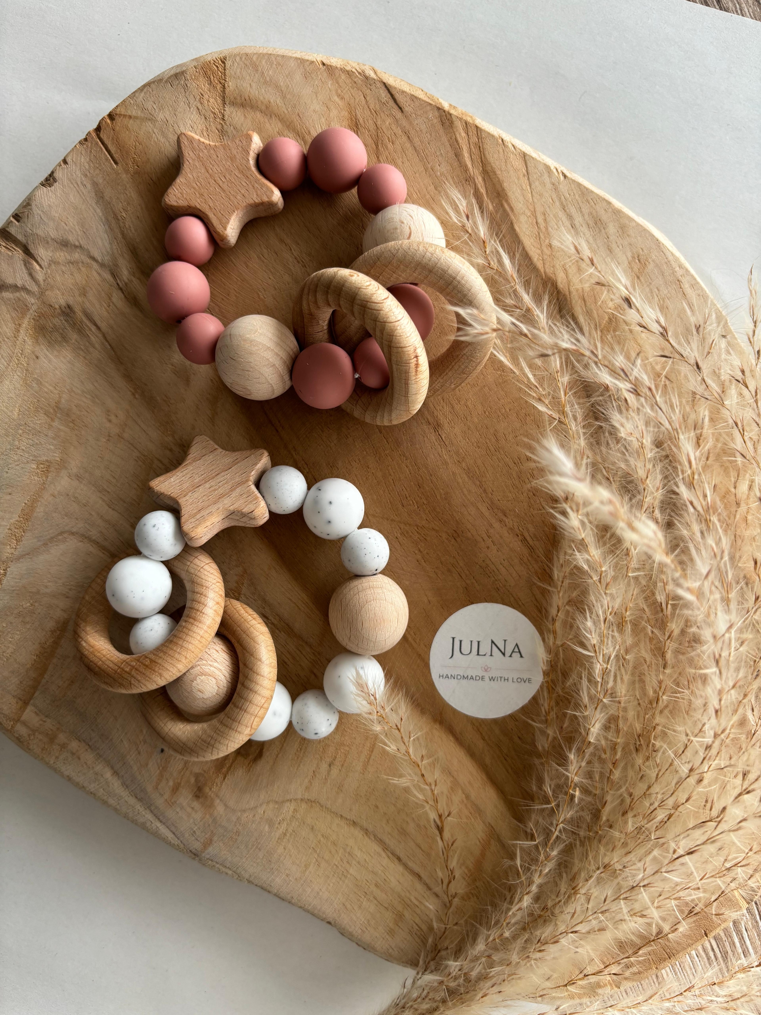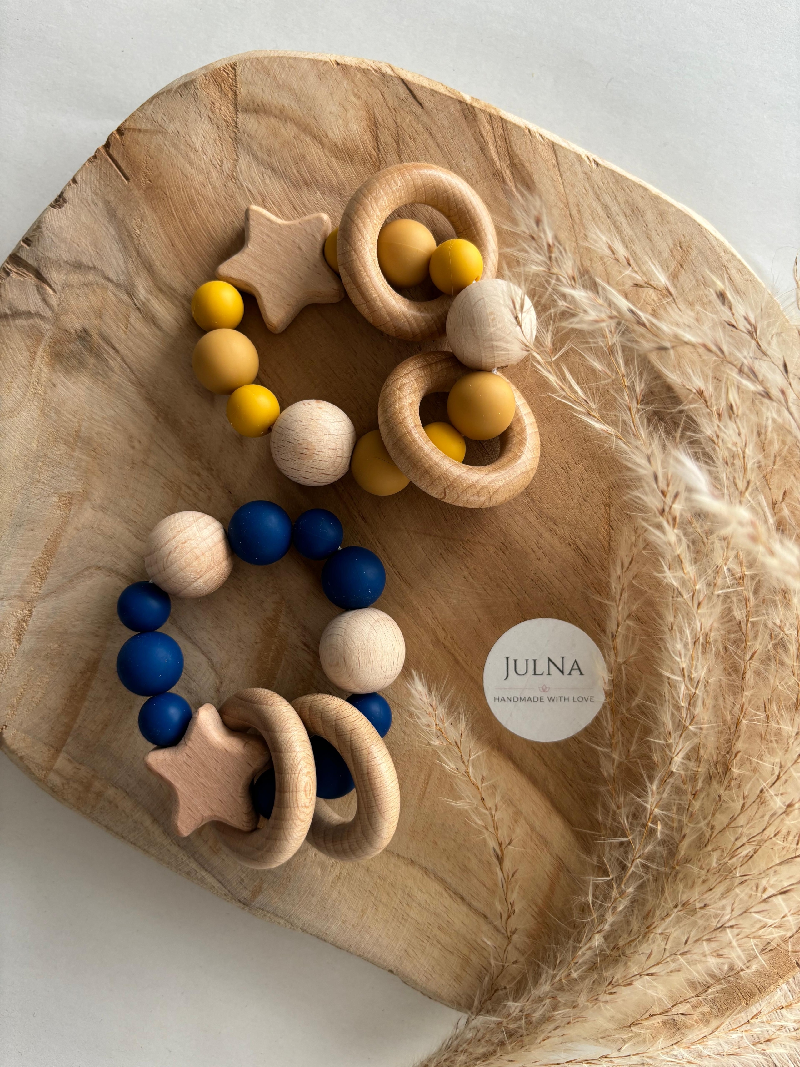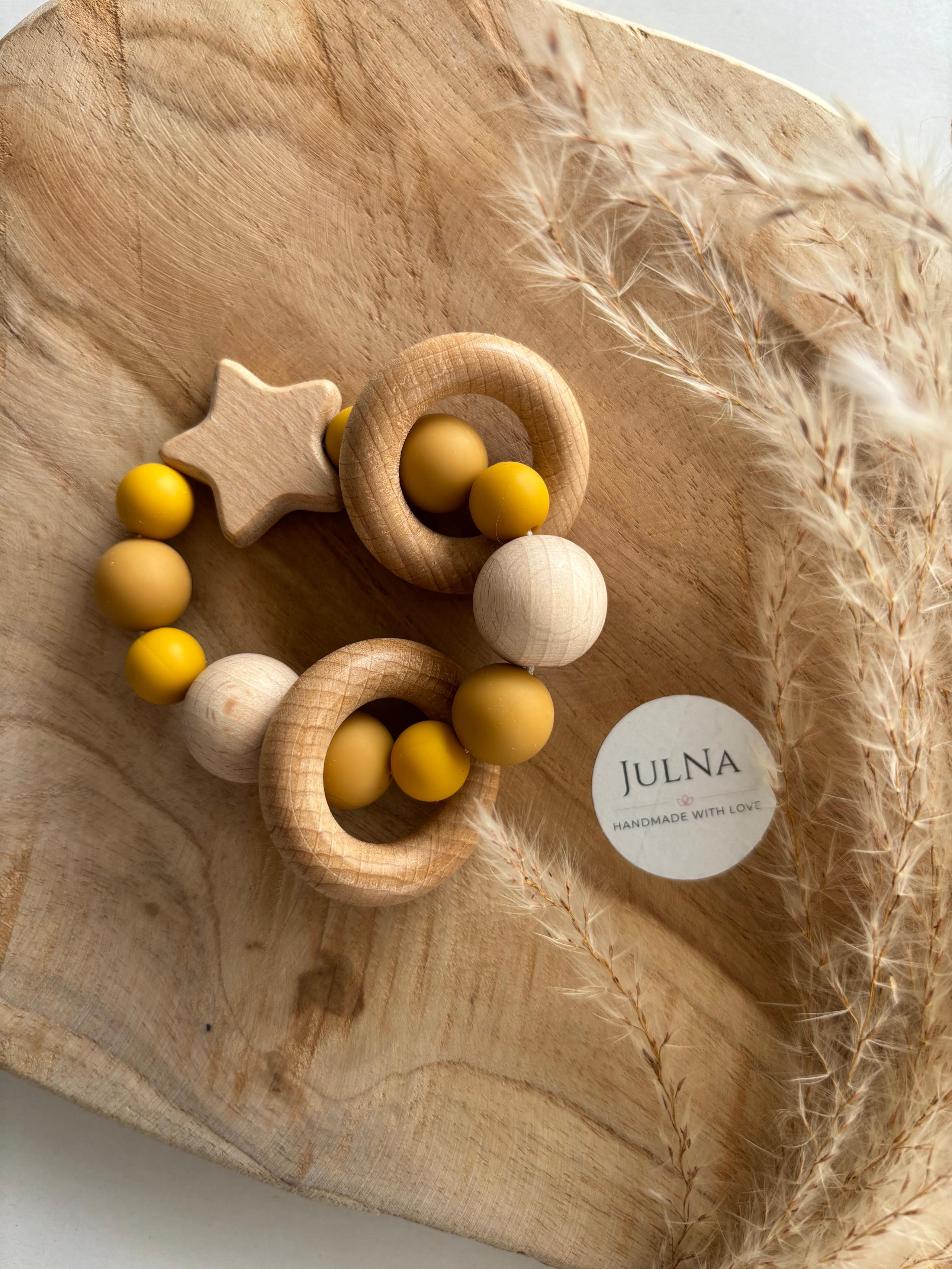 Liebevoll von uns gefertigtes Motorikspielzeug, bestehend aus Holz und Silikon. Das Motorikspielzeug "Stern" | Motorikspielzeug personalisiert | Motorikspielzeug mit Name | Motorikspielzeug aus Holz- und Silikonperlen eignet sich hervorragend als Geschenk zur Geburt oder als Geschenk zur Babyparty. Durch die Möglichkeit der Personalisierung machst Du diesem zu einem Unikat.