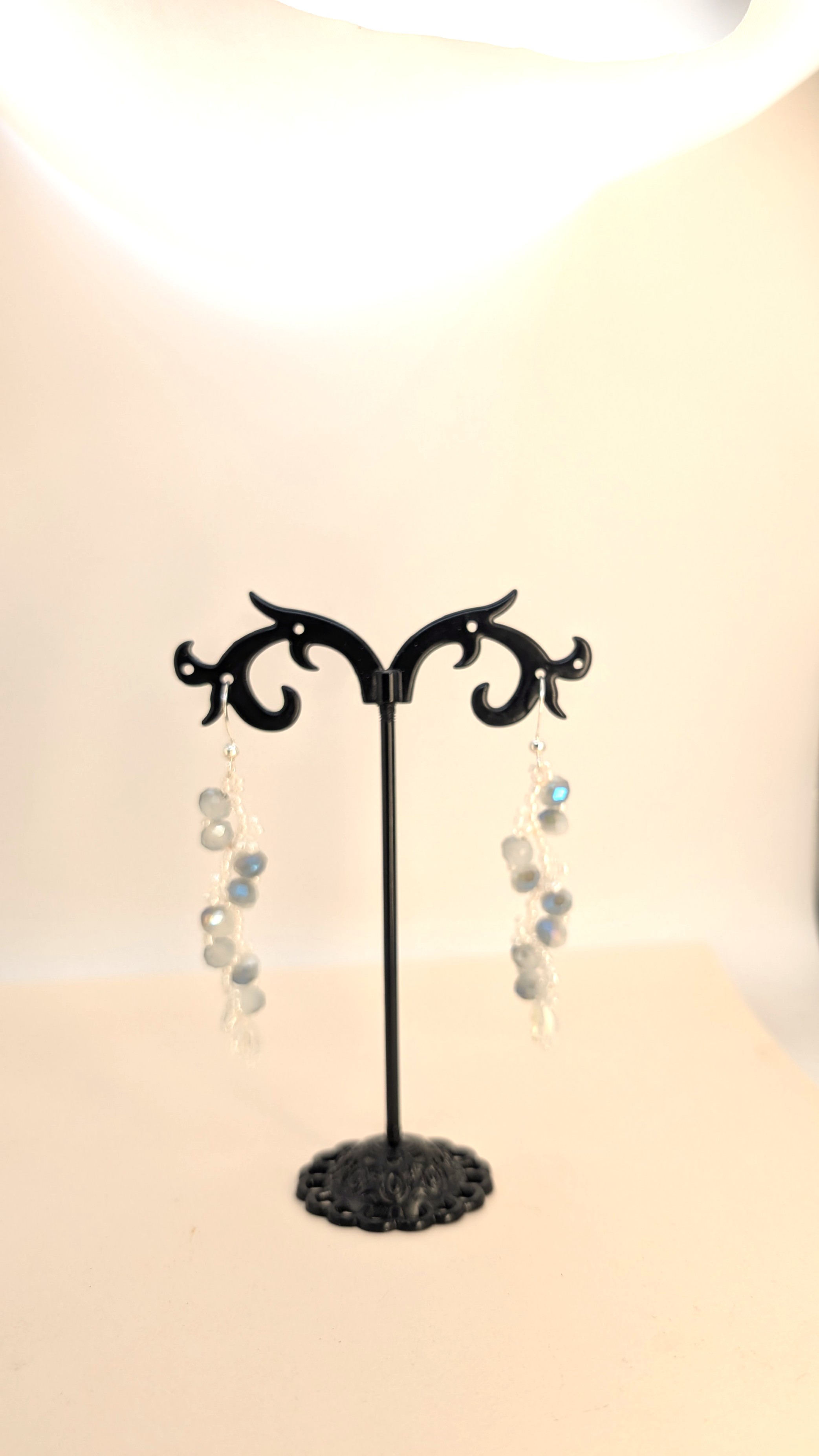 Boho Hängeohrringe aus Glasperlen in Silber/Blau, handmade