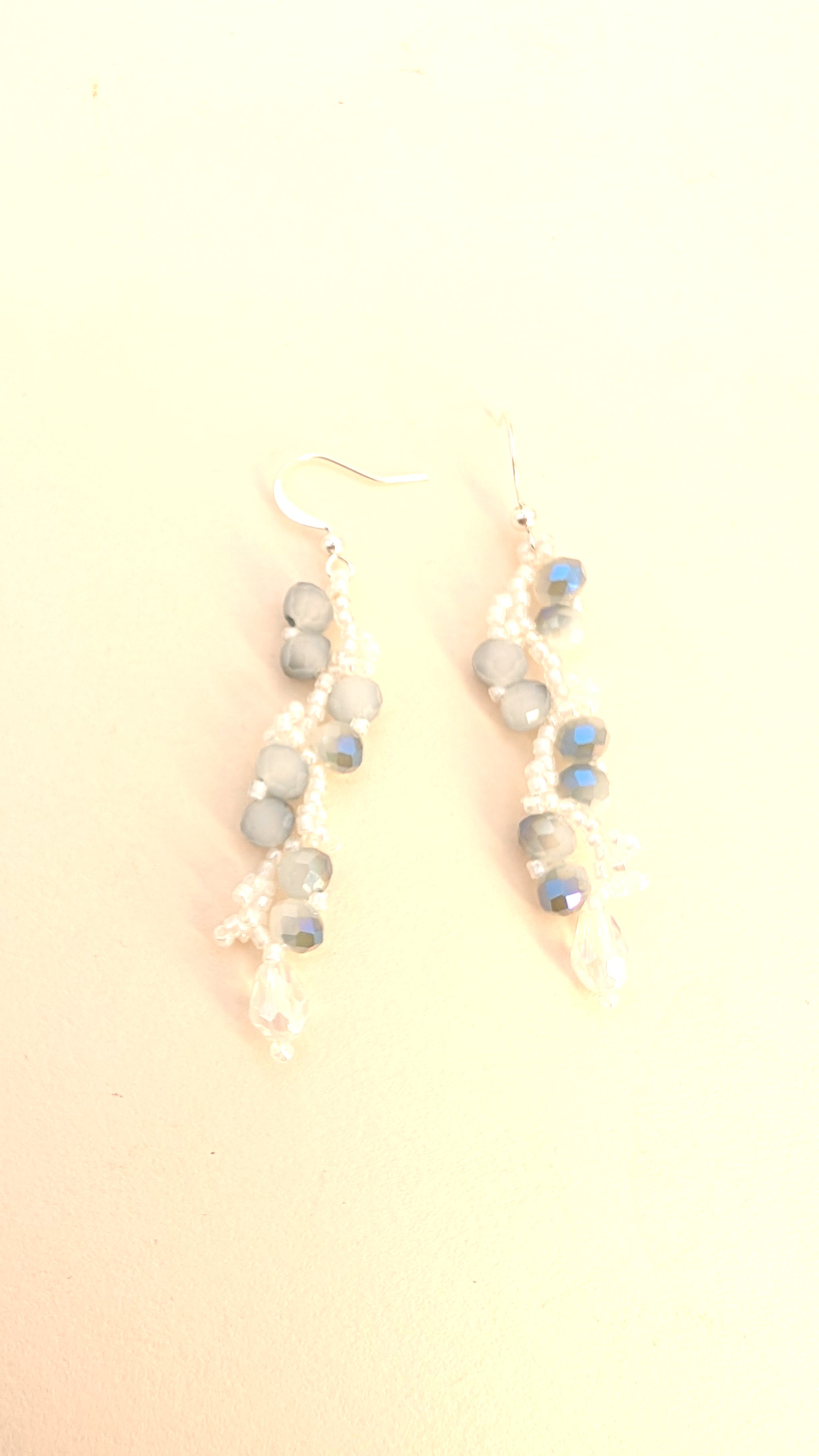 Diese handgefertigten Ohrringe aus Weiß, facettierten Glasperlen vereinen zeitlose Eleganz mit einem Hauch von Boho-Charme. Die Perlen sind kunstvoll miteinander verflochten und bilden eine filigrane, leicht bewegliche Struktur, die bei jedem Schritt sanft schimmert und das Licht wunderschön reflektiert.