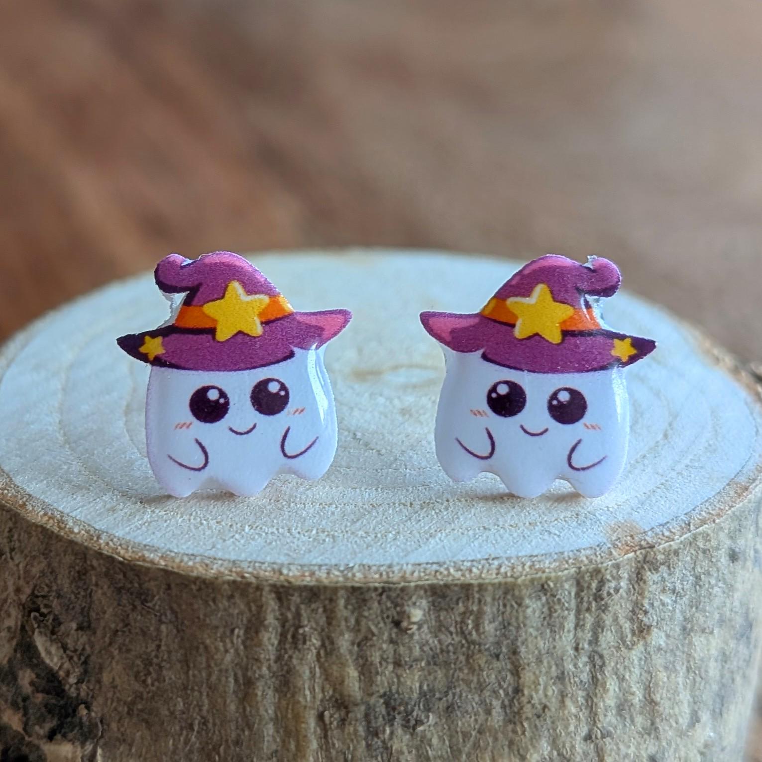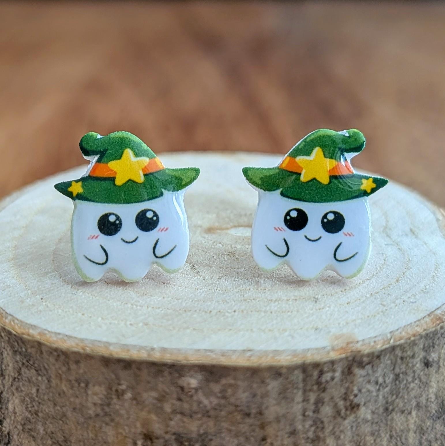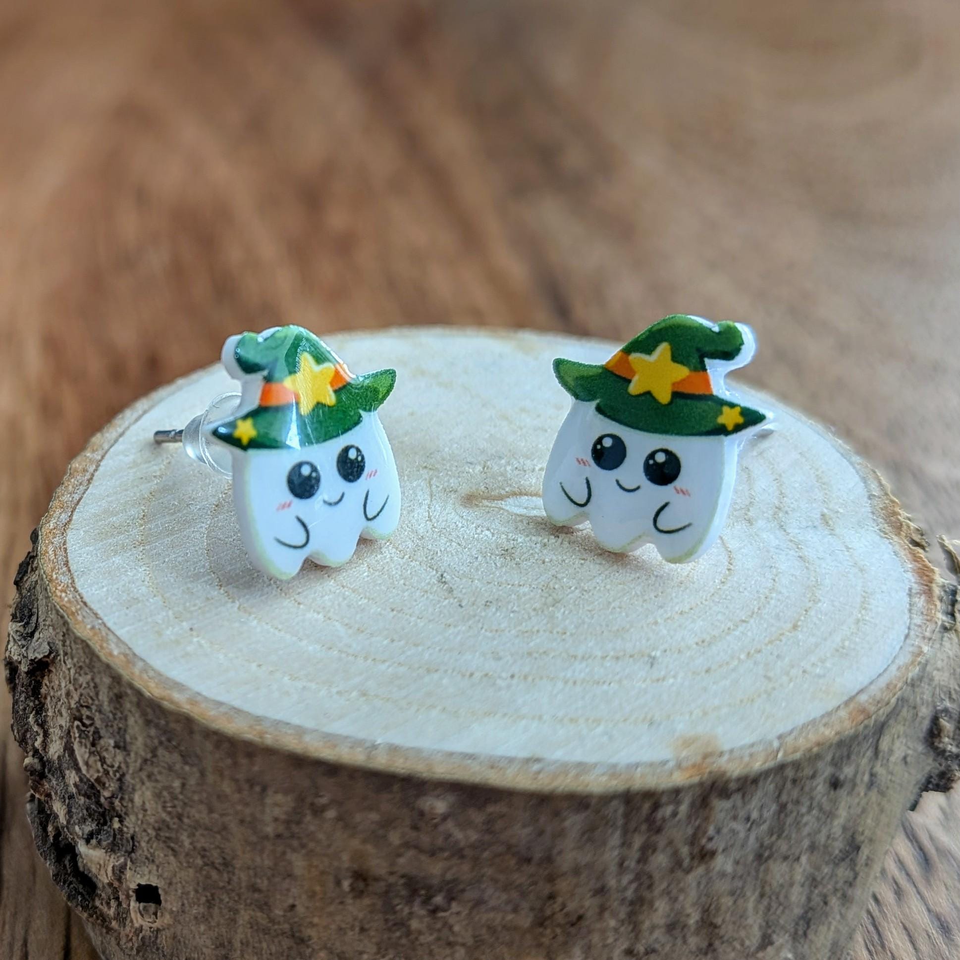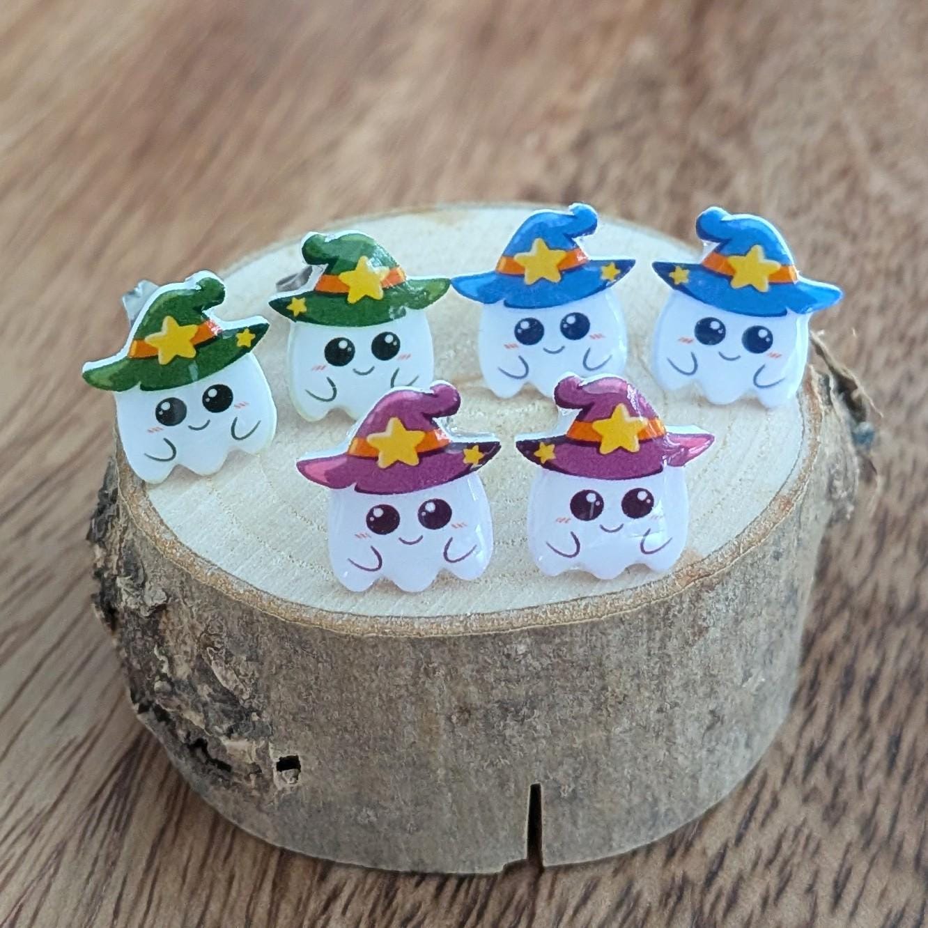Begeistere auf der nächsten Halloweenparty alle mit deinen süßen Geister Ohrringen mit Hexenhut! Gefertigt in Handarbeit mit Edelstahlkomponenten sind diese Ohrringe ein Hingucker und auch prima als Geschenk geeignet für alle Spuk Fans!