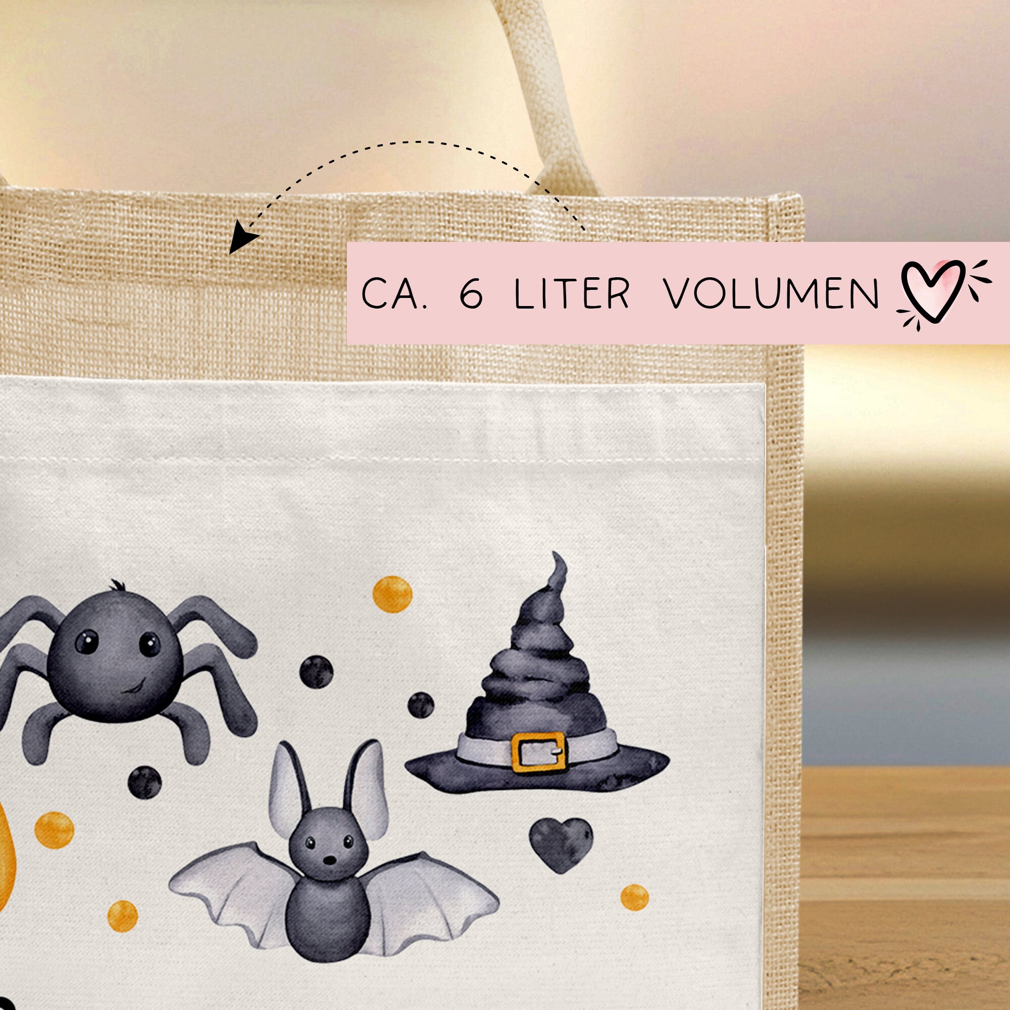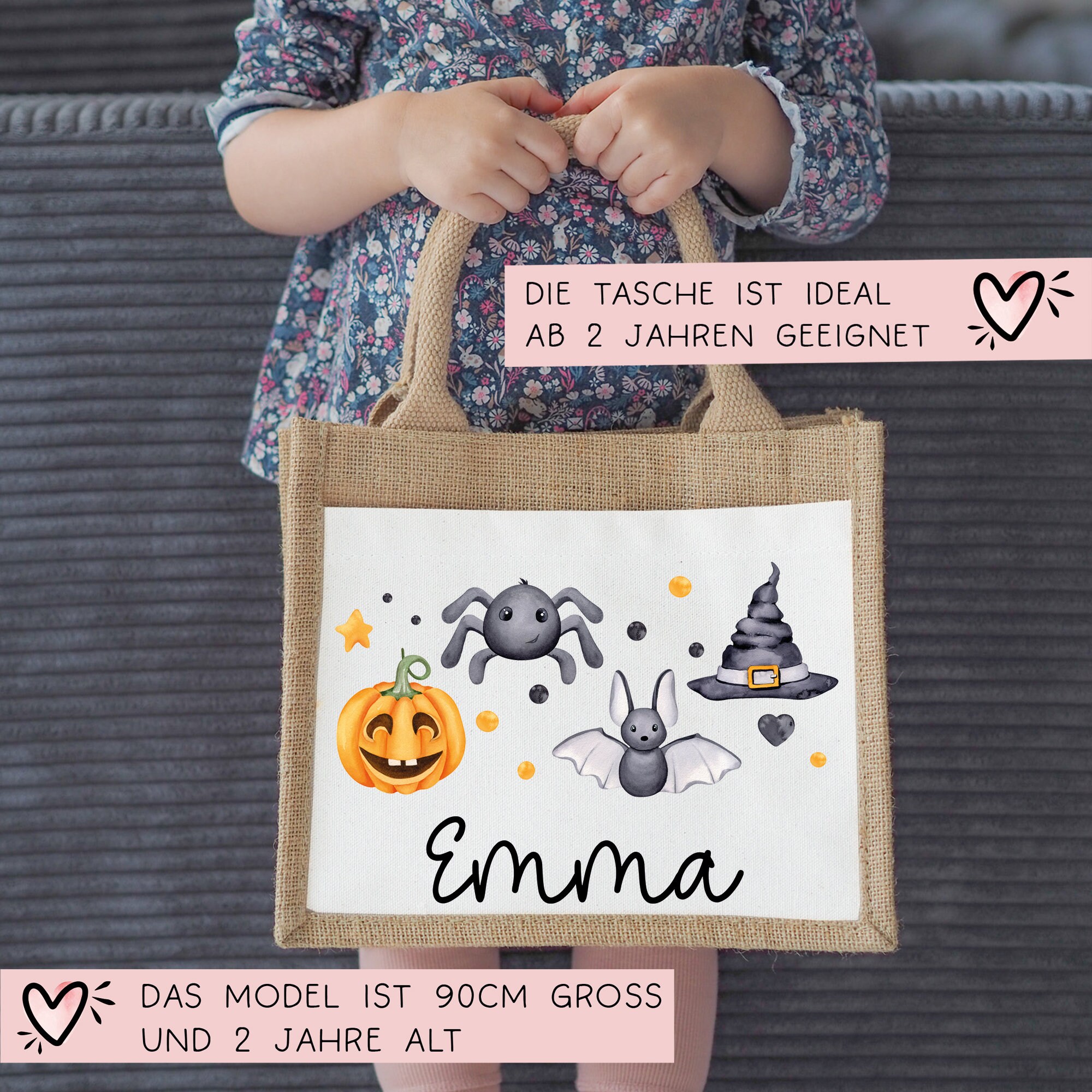 Diese personalisierte Halloween-Tasche ist ideal für kleine Süßigkeitenjäger. Dank der kindgerechten Größe und den dicken, weichen Tragegriffen können Kinder ab 2 Jahren mit ihrer eigenen Tasche auf Süßigkeitenjagd gehen und viele Leckereien sammeln. Die Tasche ist perfekt für kleine Kinderhände und fasst nur 6 Liter, sodass sie beim Sammeln nicht zu schwer wird. Sollte die Tasche doch einmal zu voll sein, können Mama, Papa, Oma oder Opa die Süßigkeiten in eine andere Tasche umpacken und der Sammelspaß kann von vorne beginnen.