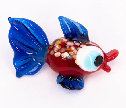 Sie kaufen 1 handgearbeiteten Kristallglas-Magnet "Motiv Fisch", blaue Flossen, Größe 4 cm, neu, Unikat