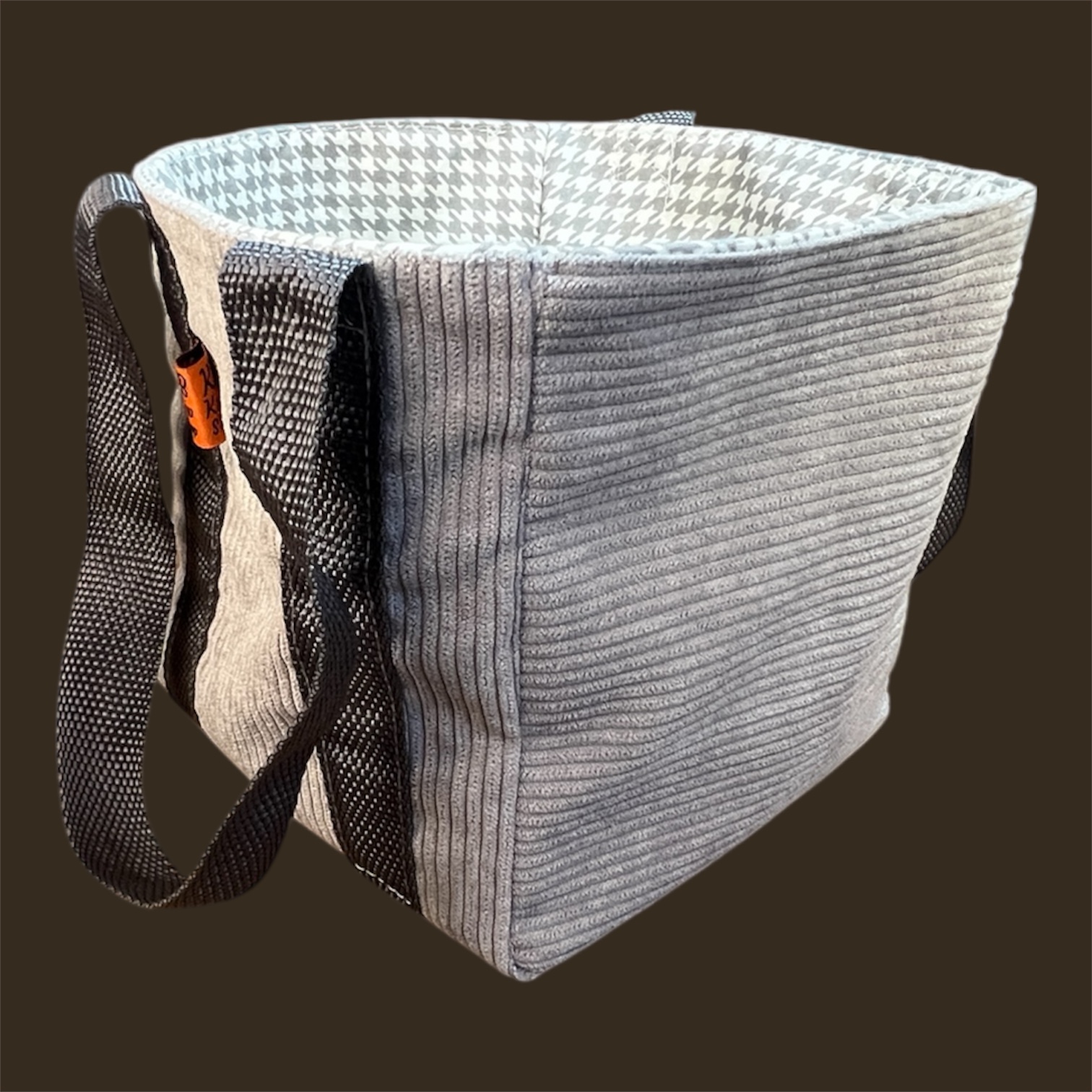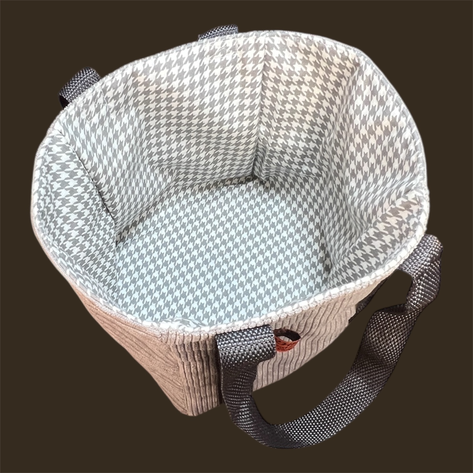 Der edle graue Baumwollcord außen verleiht ihr eine natürliche, zeitlose Optik, während das passende Baumwollfutter innen für Stabilität und Langlebigkeit sorgt. Dank des praktischen Henkels kannst du die Tasche jederzeit bequem transportieren – ob von Raum zu Raum oder zum Aufräumen unterwegs.